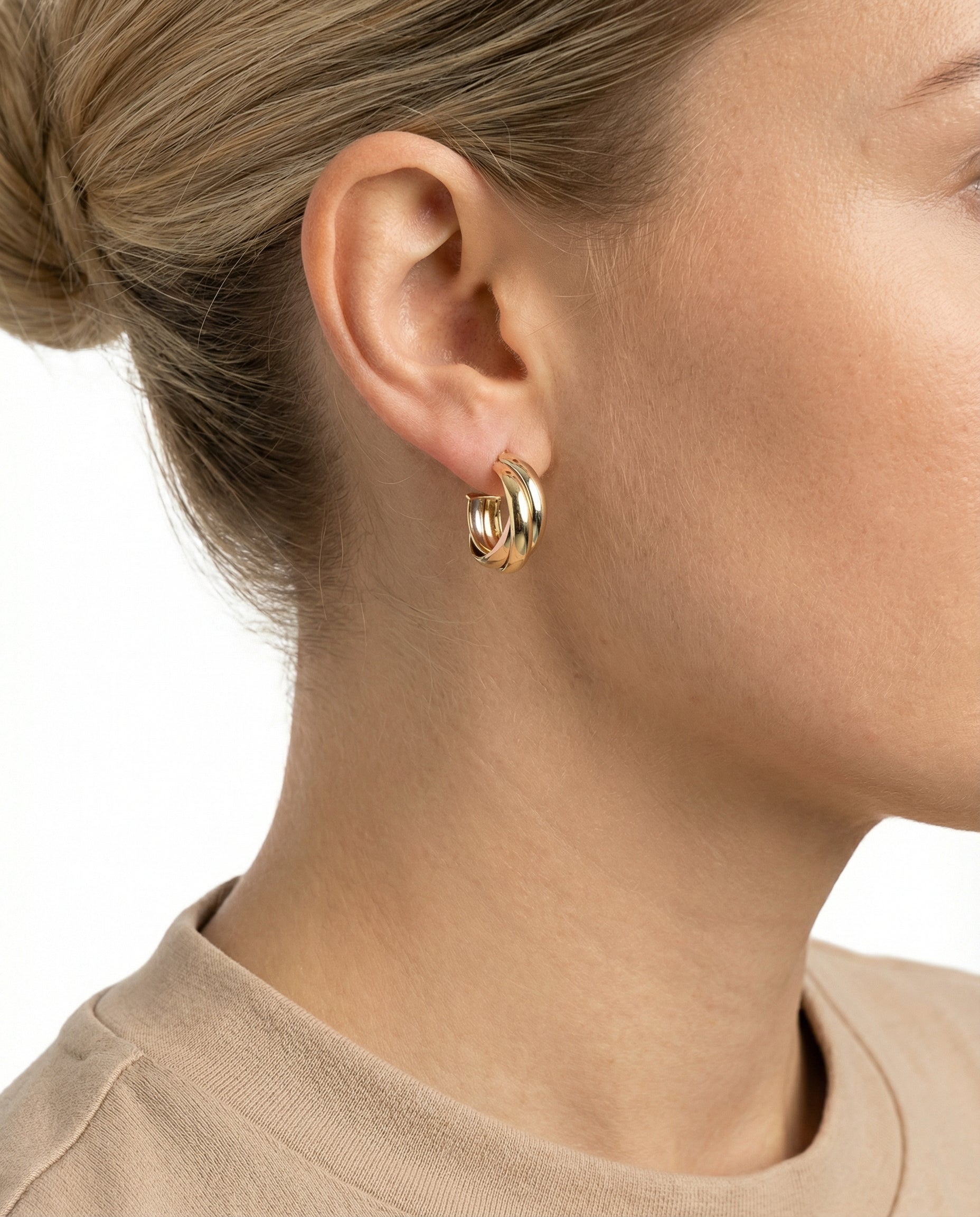 Huggies i 14K guld, hvidguld og rosaguld, 1.2 cm,