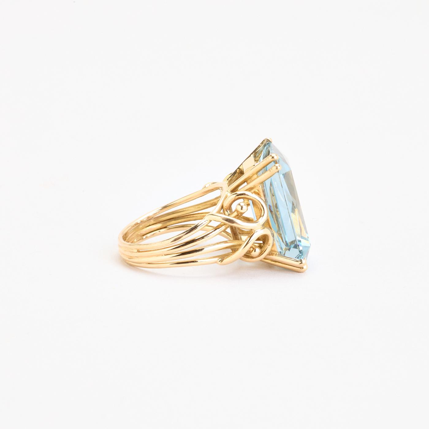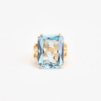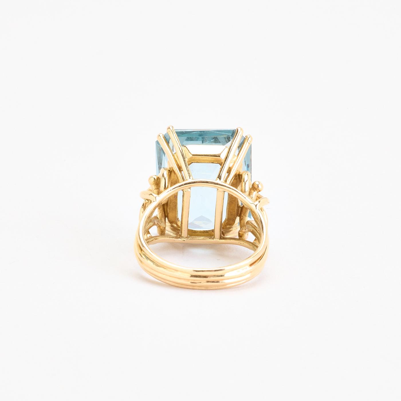 Cocktail ring i 18K guld med lyseblå sten, str. 48