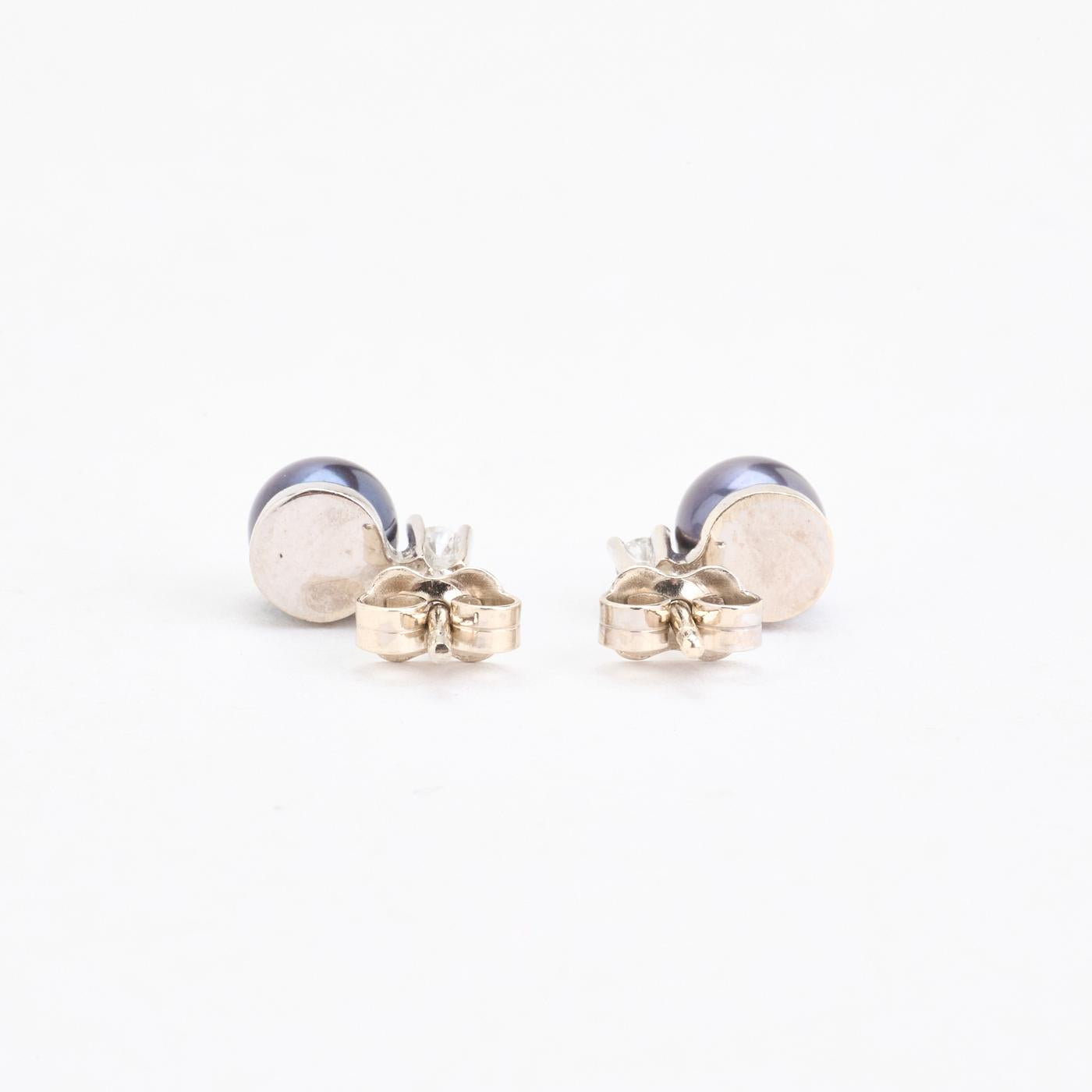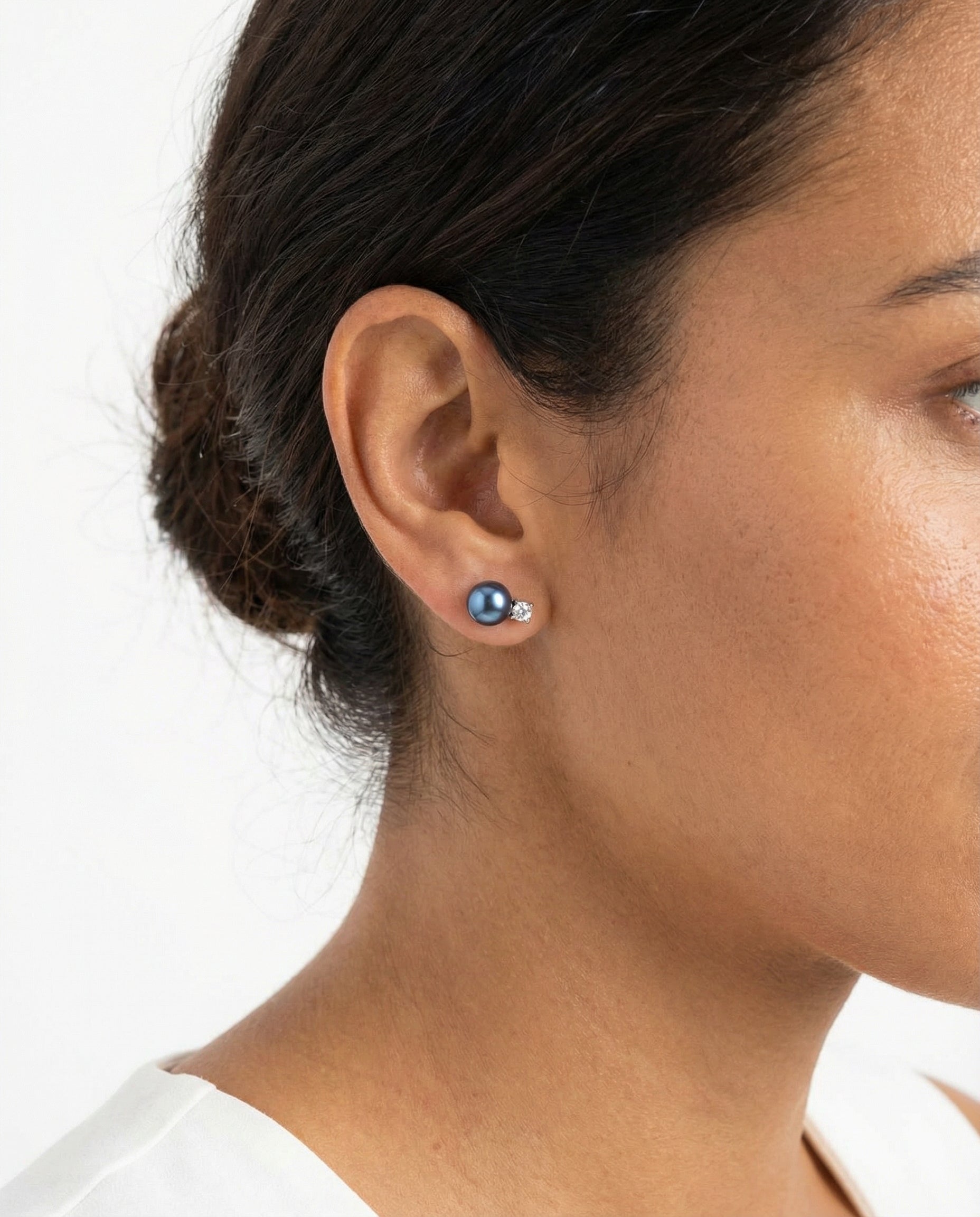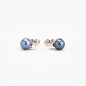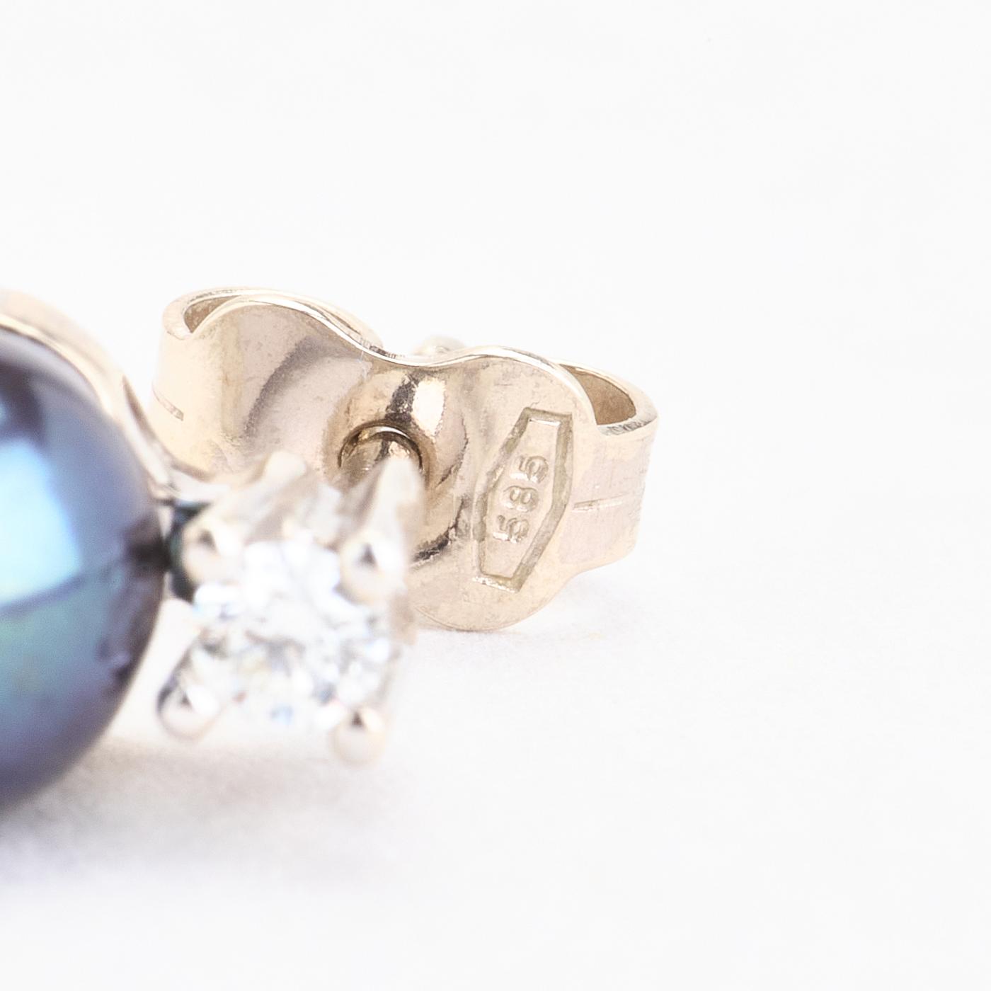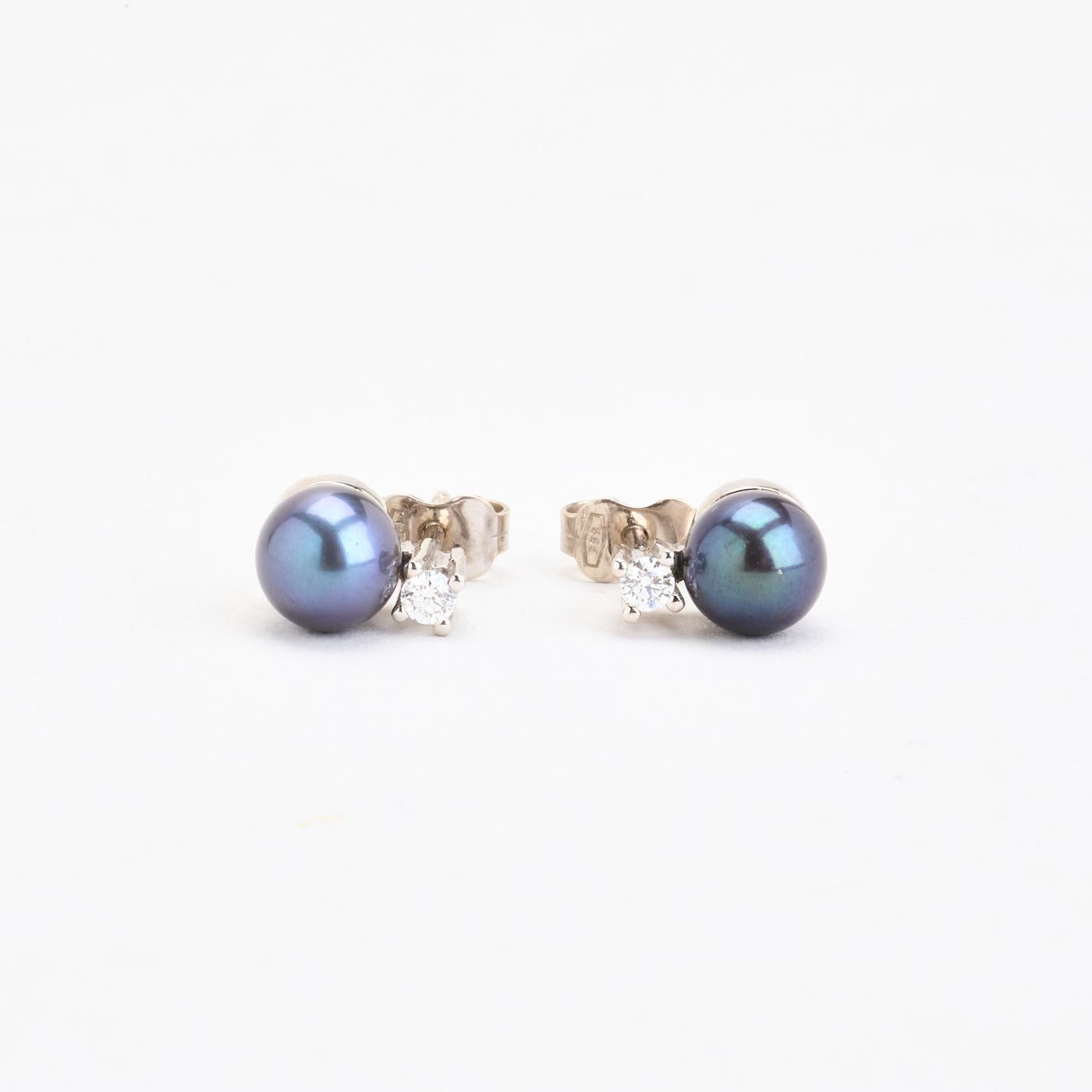 Perle øreringe i 14K hvidguld med diamanter (0.22 ct), 0.9 cm
