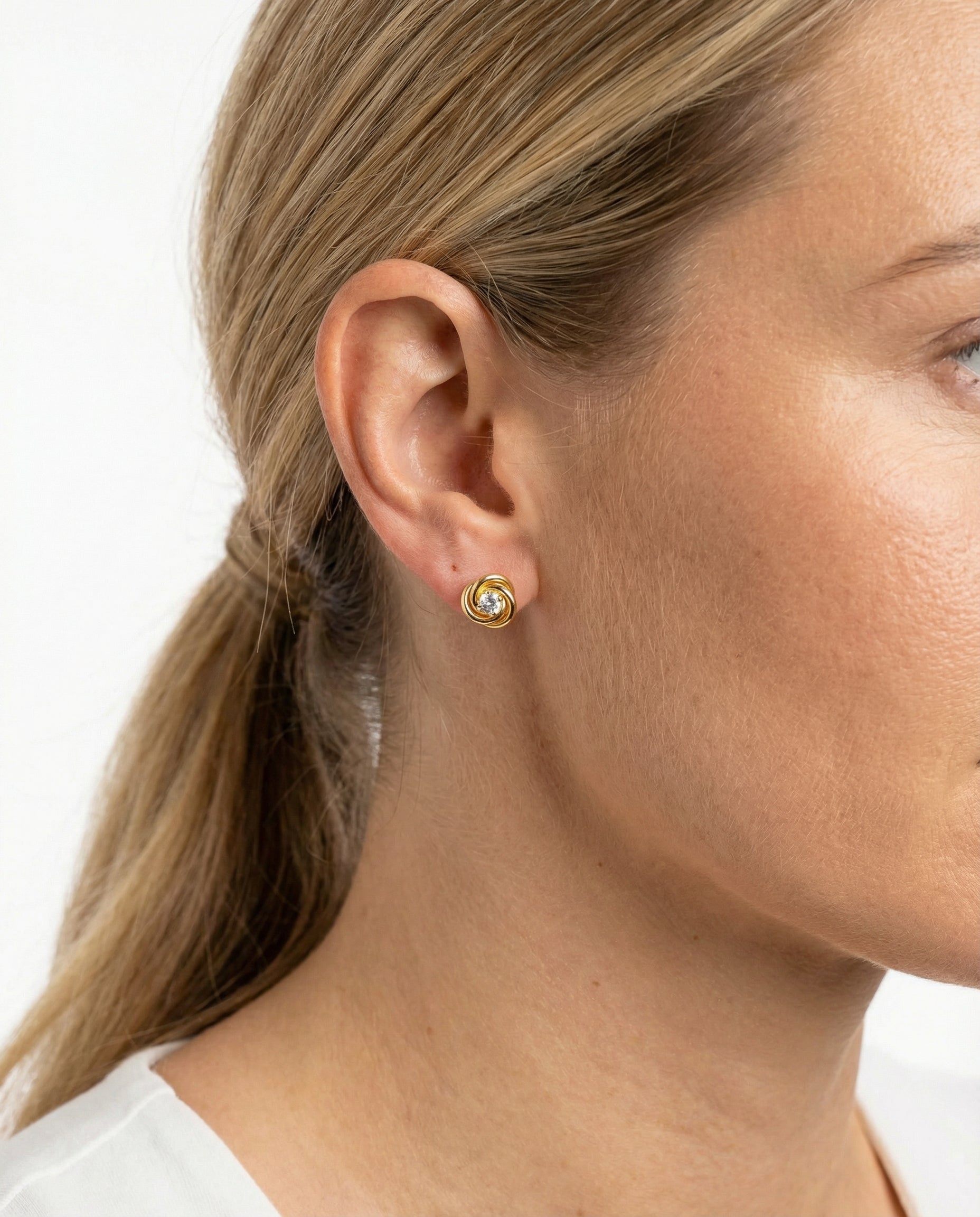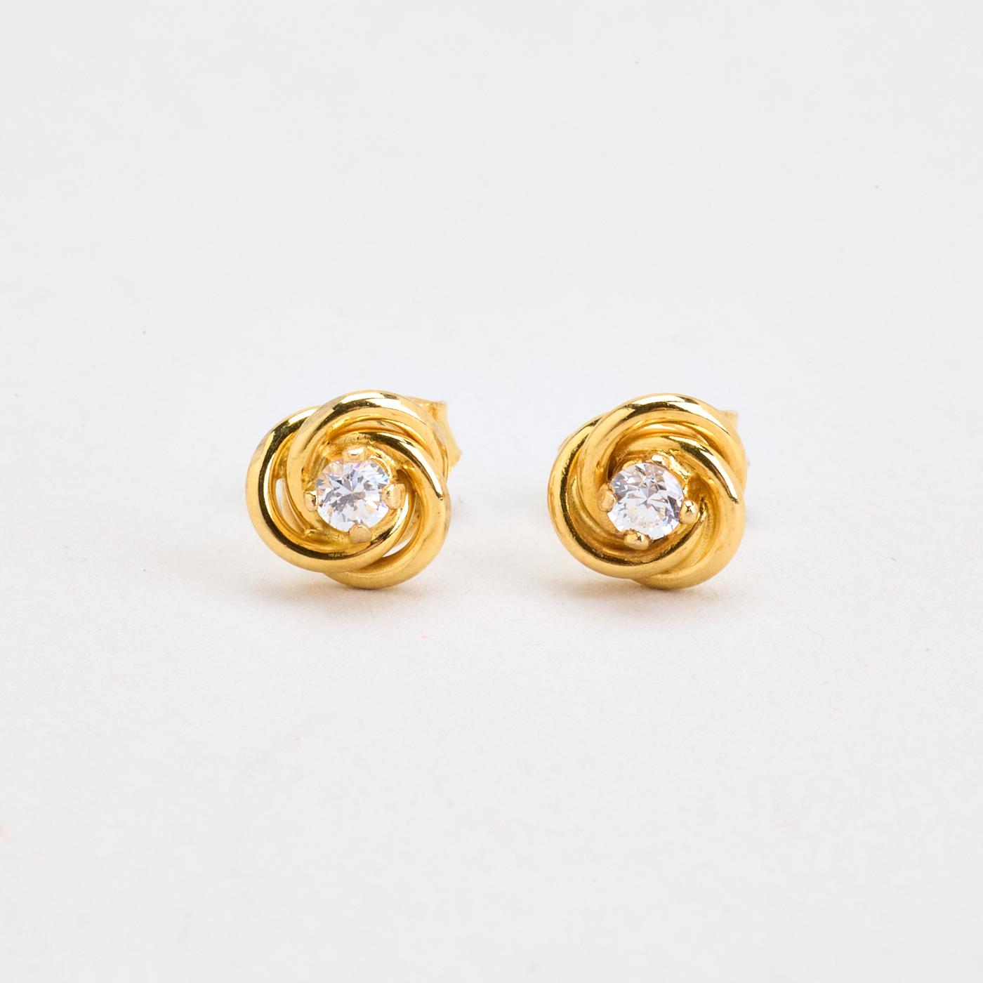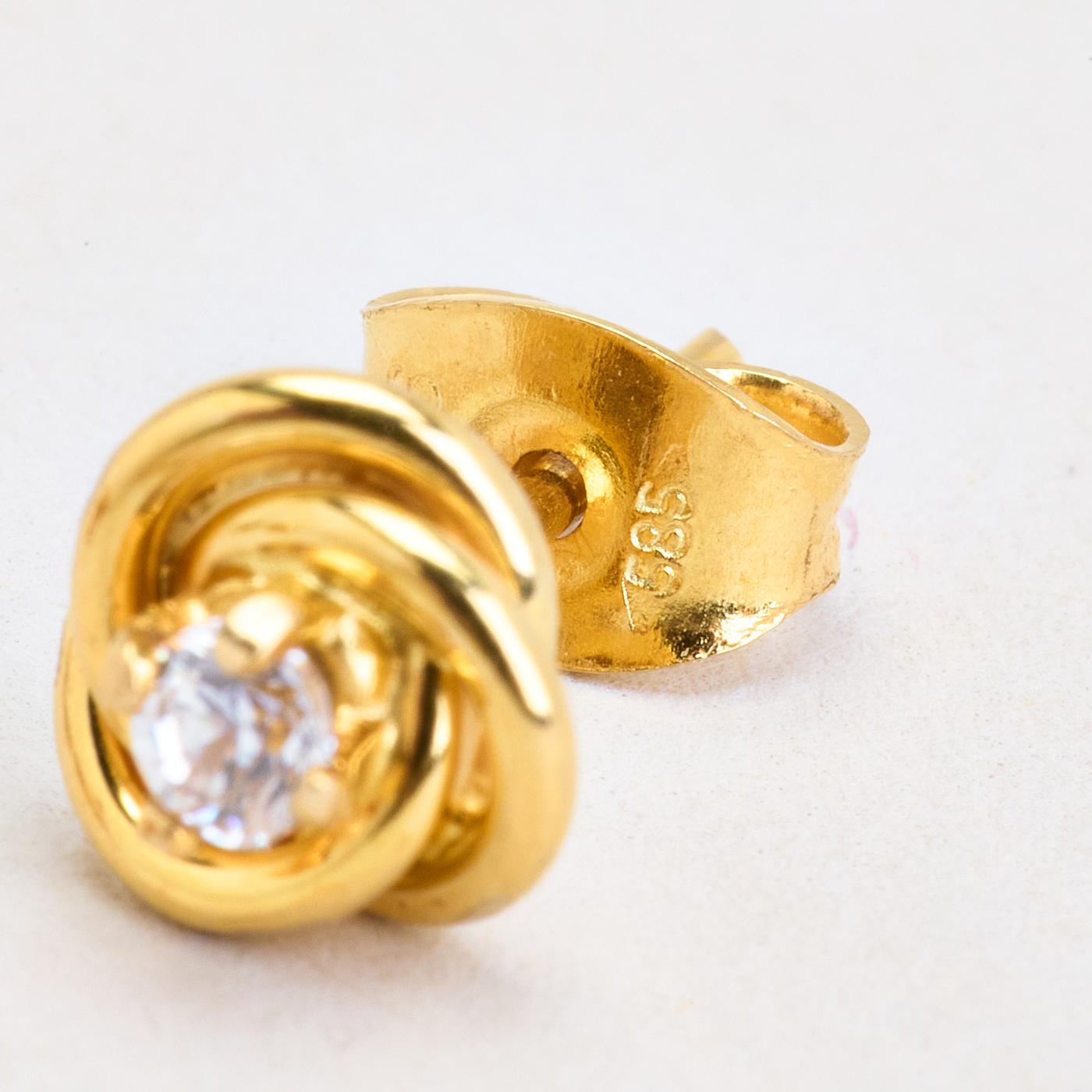 Knude Øreringe med stik i 14K guld med en zirkonia, 0.6 cm,