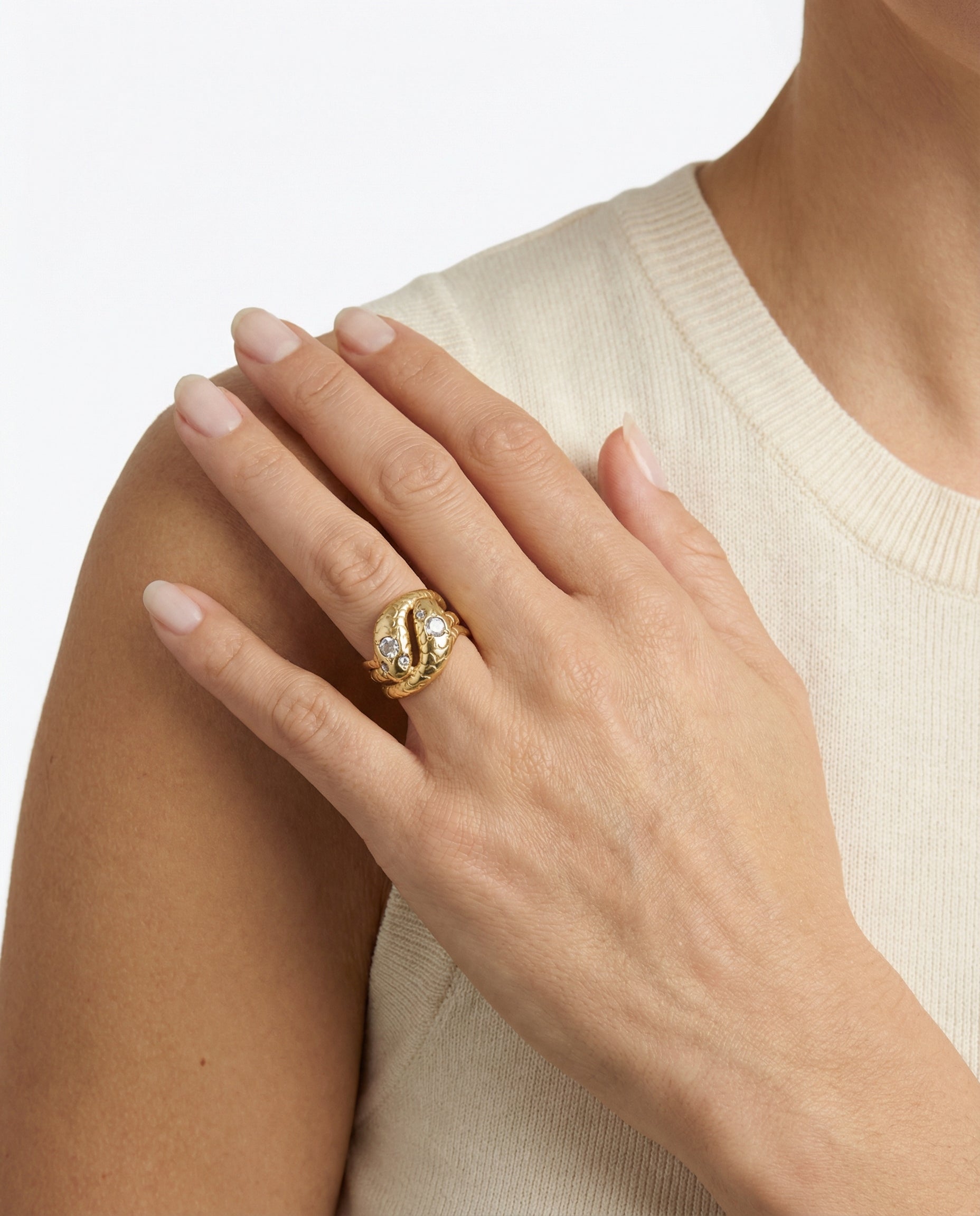 Slangering i 14K guld med flere zirkoniaer, Str. 55