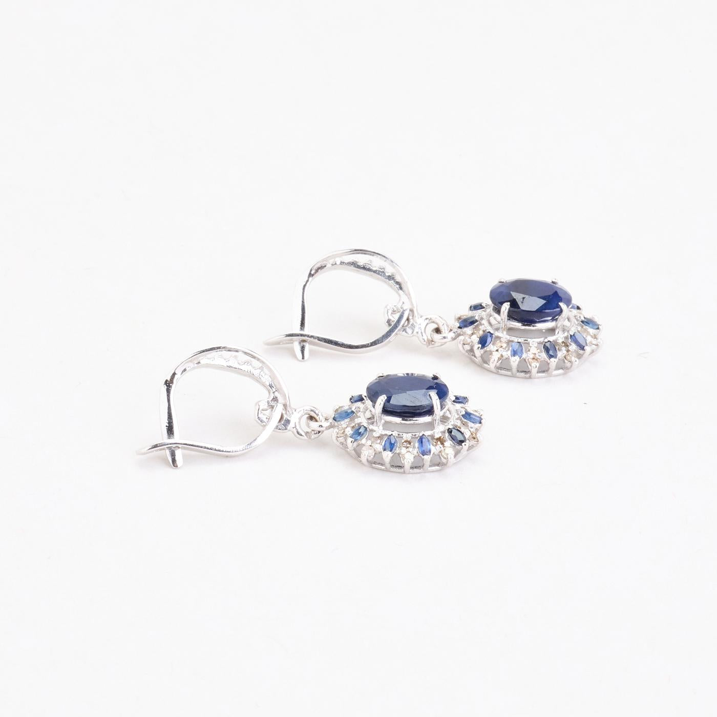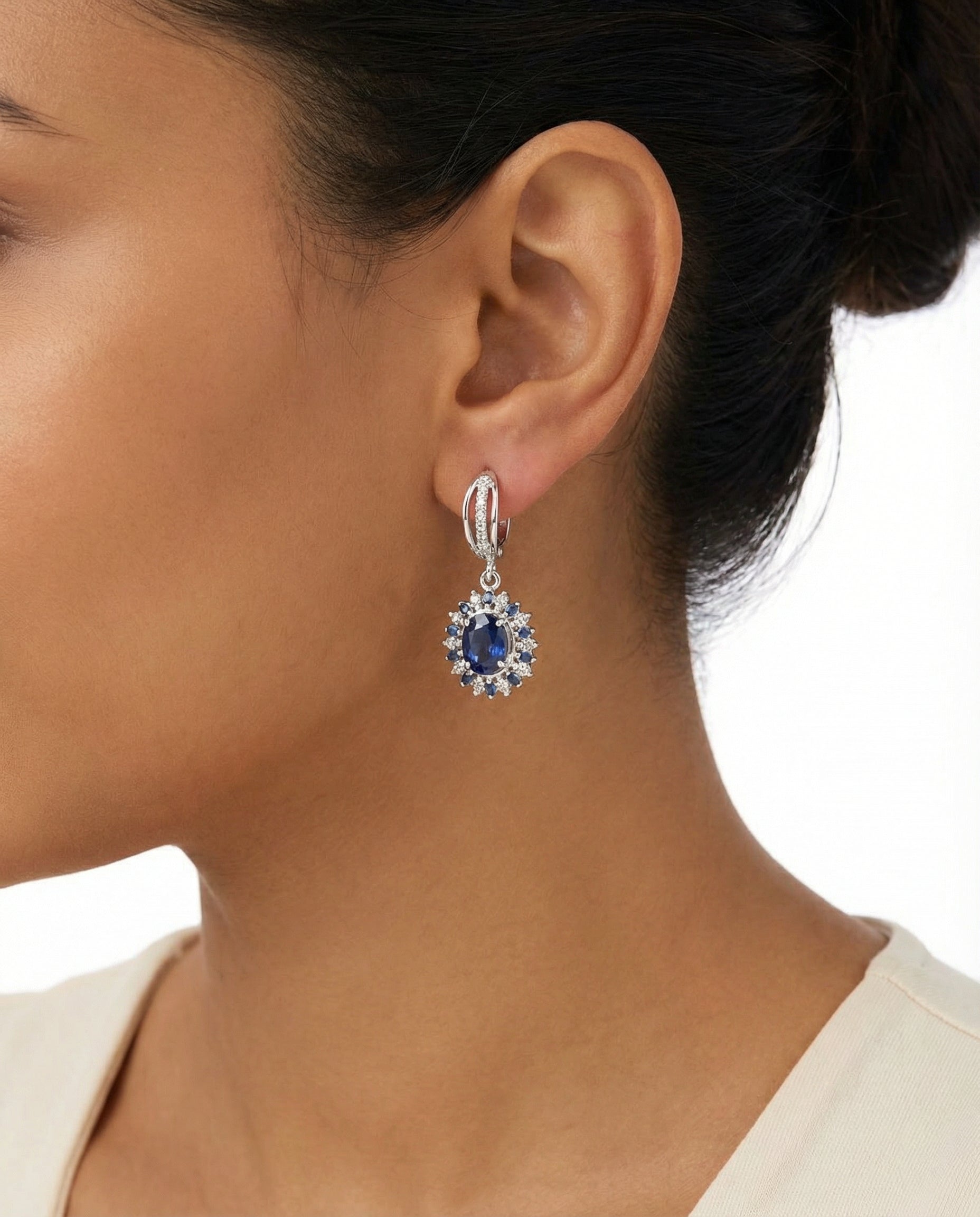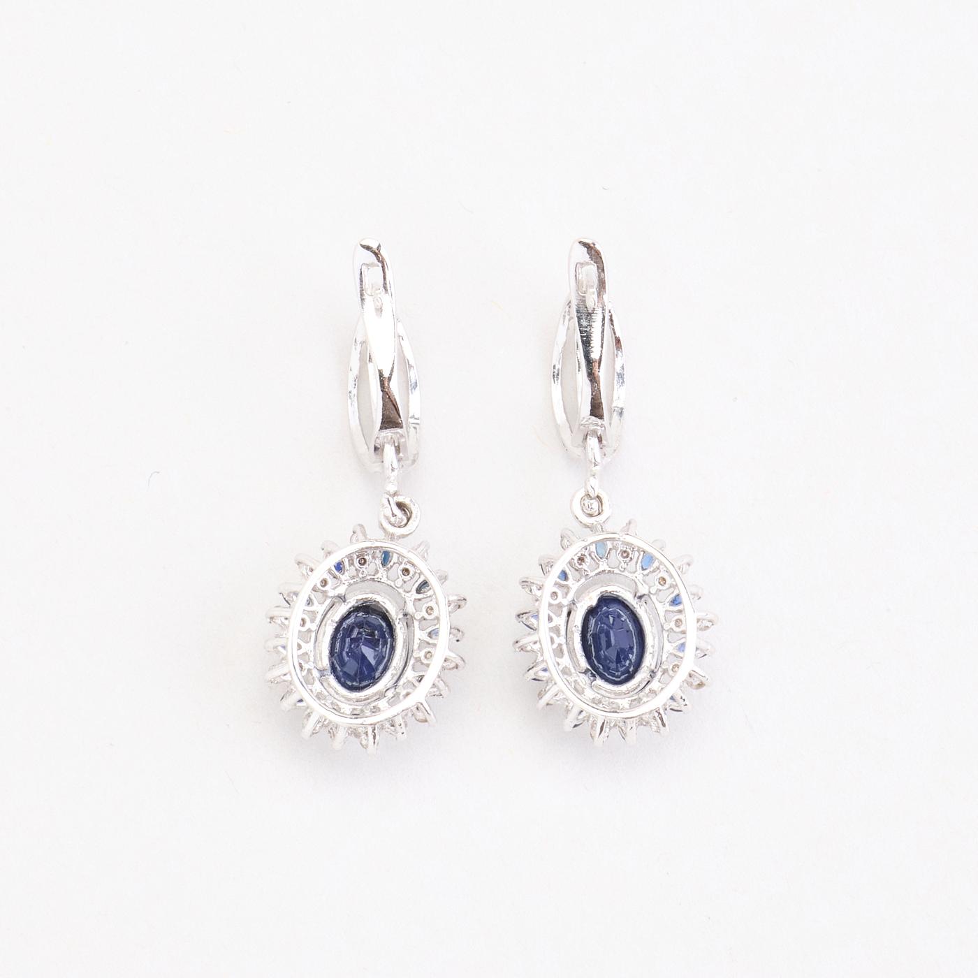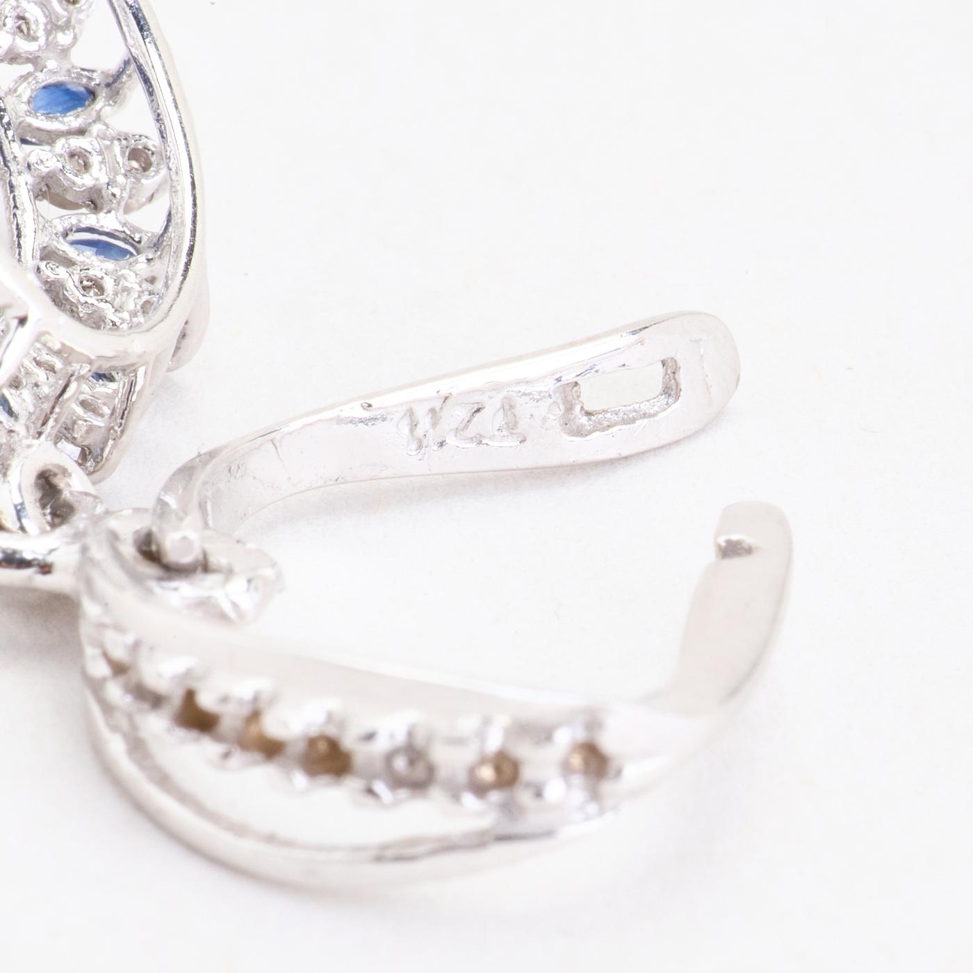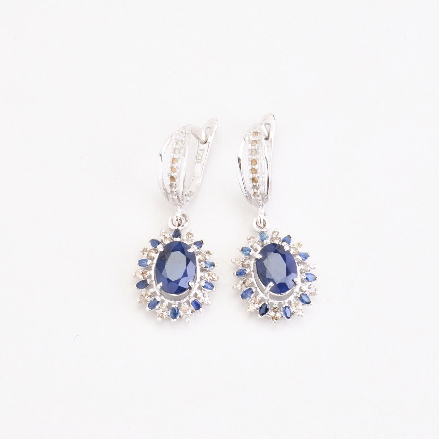 Roset øreringe i 18K hvidguld med flere diamanter (0.18 ct) og safirer, 3 cm