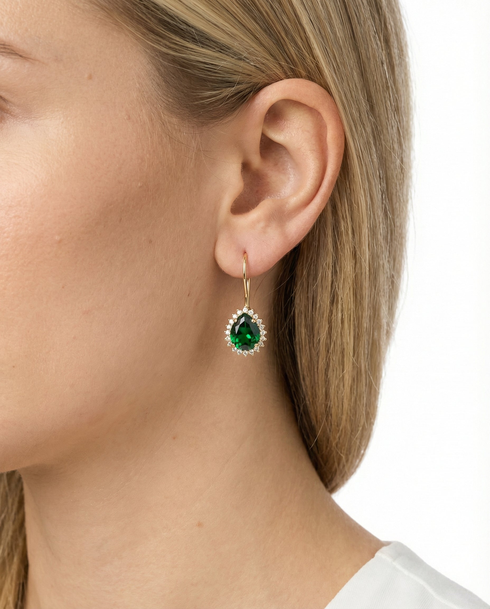 Roset øreringe i 14K guld med en zirkonia, 2.5 cm,