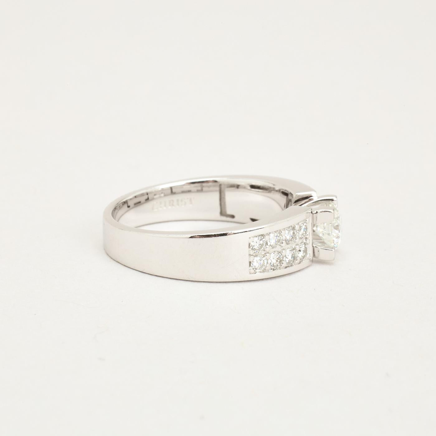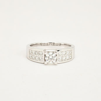 Solitairering med diamanter (0.85 ct) i 14K hvidguld, str. 57