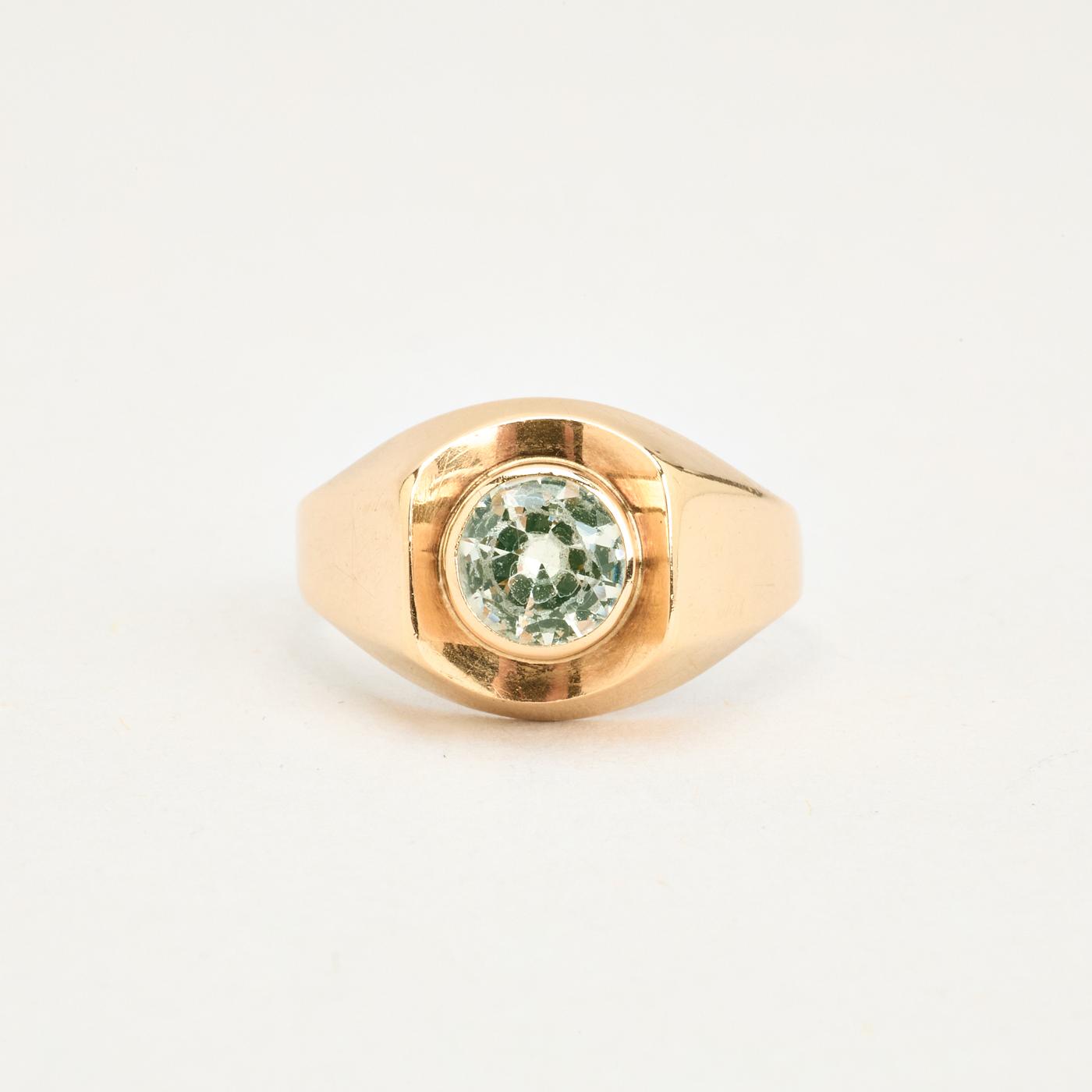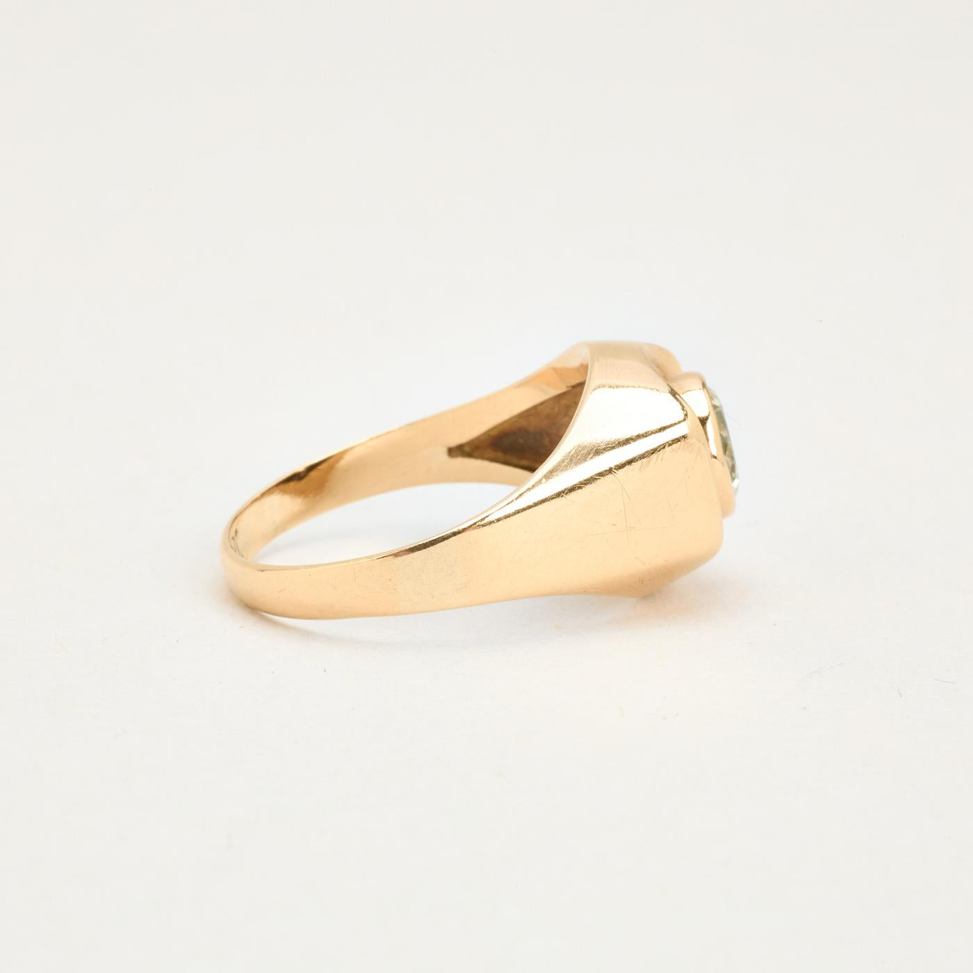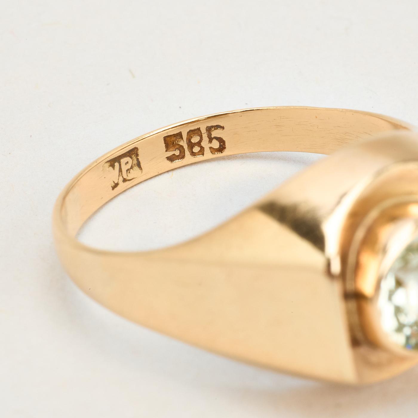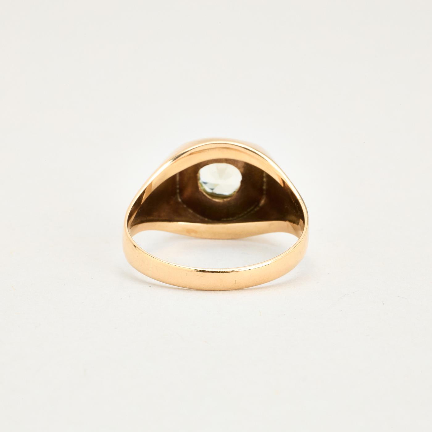 Signetring i 14K guld med grøn sten, str. 55