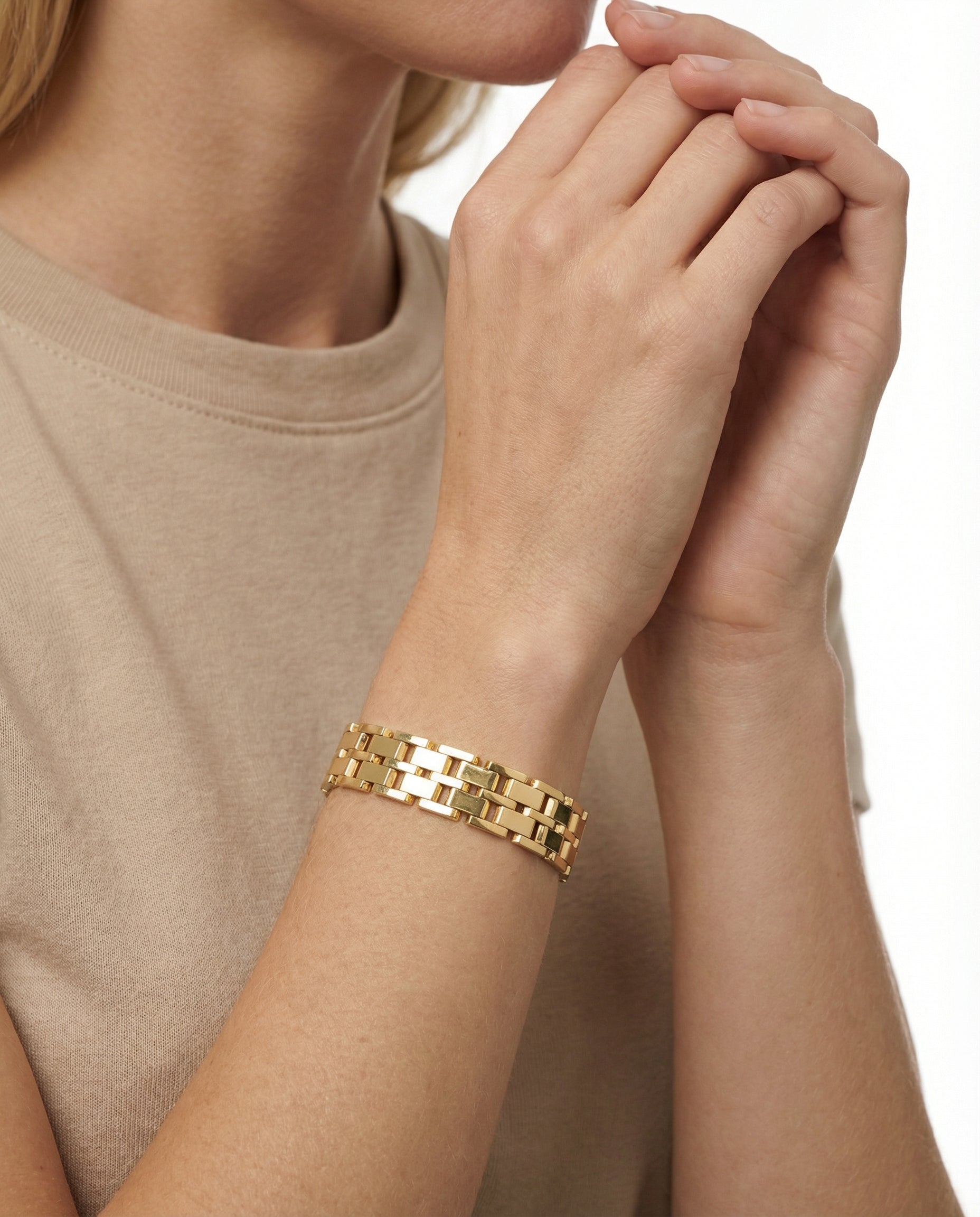 Model: Blok Armbånd i 14K guld, 18.5 cm, 42.2 g