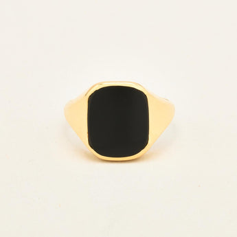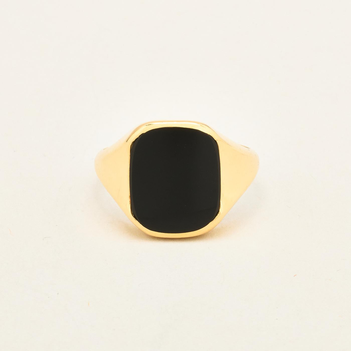 Signetring i 14K guld med en onyks, str. 63
