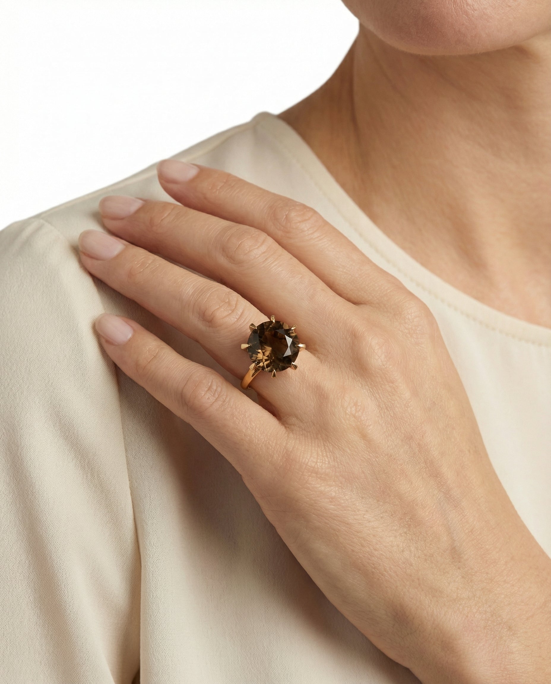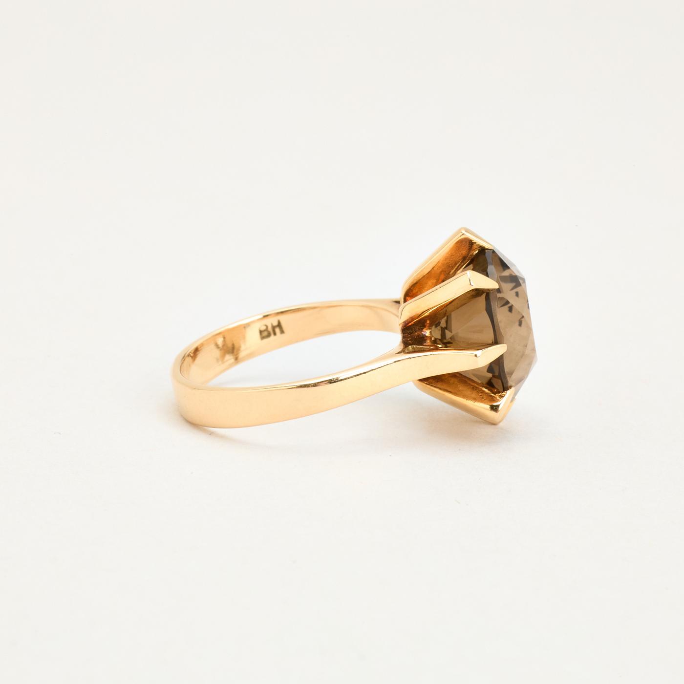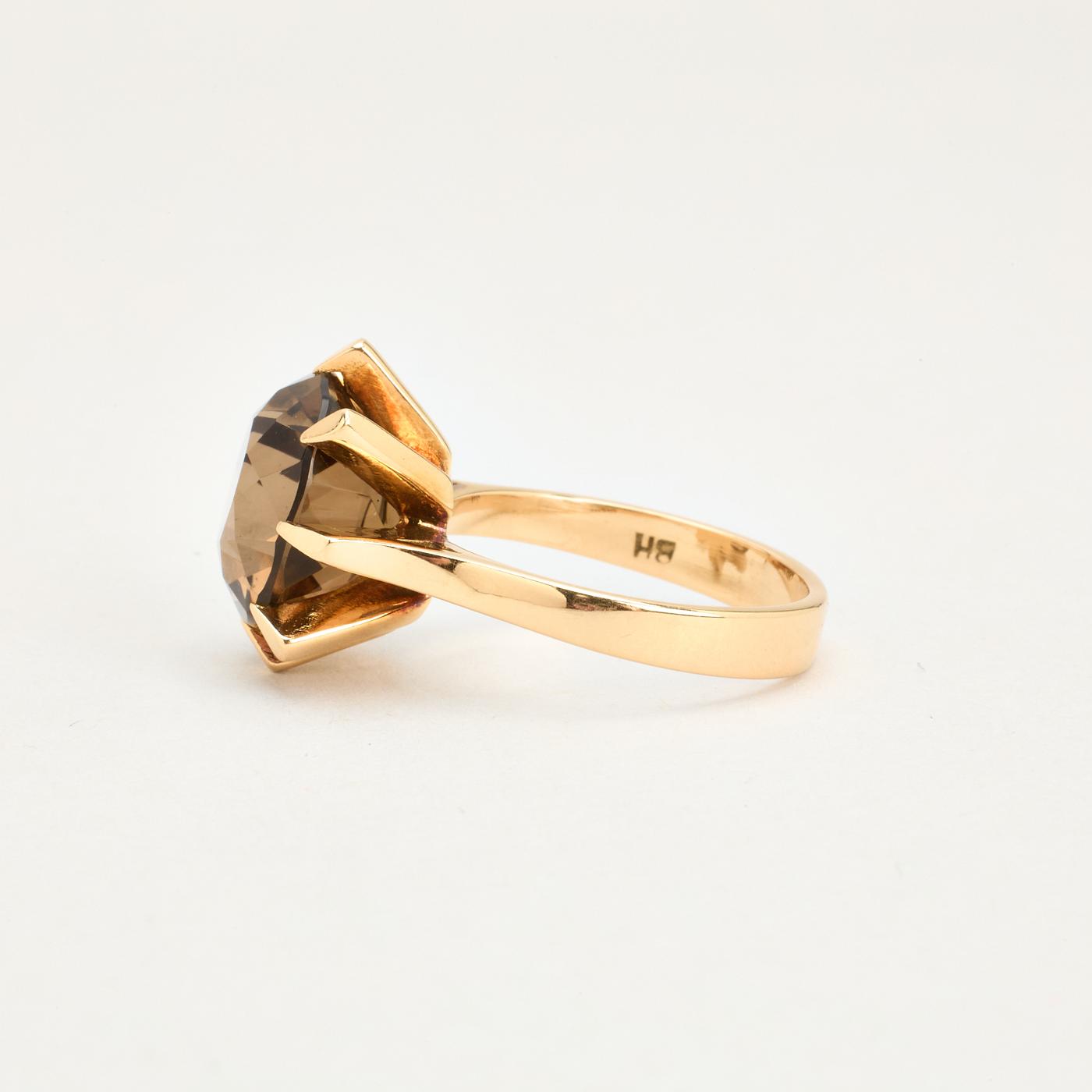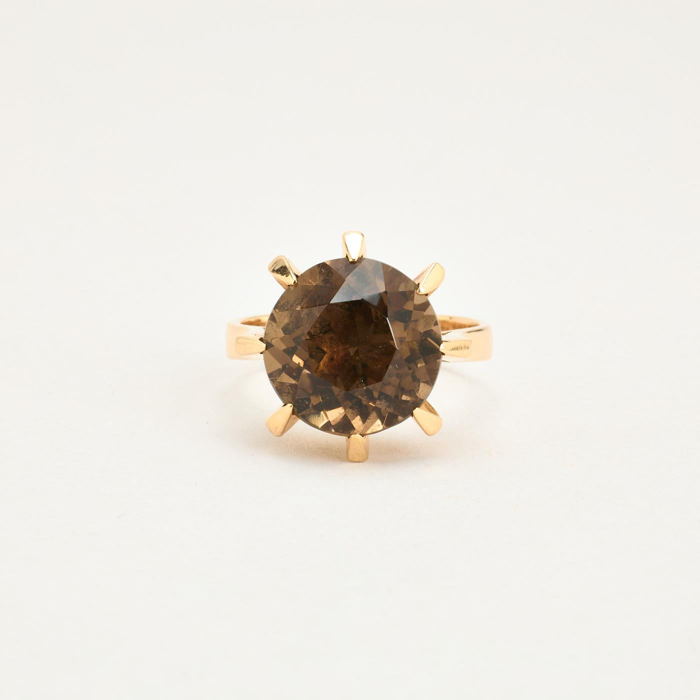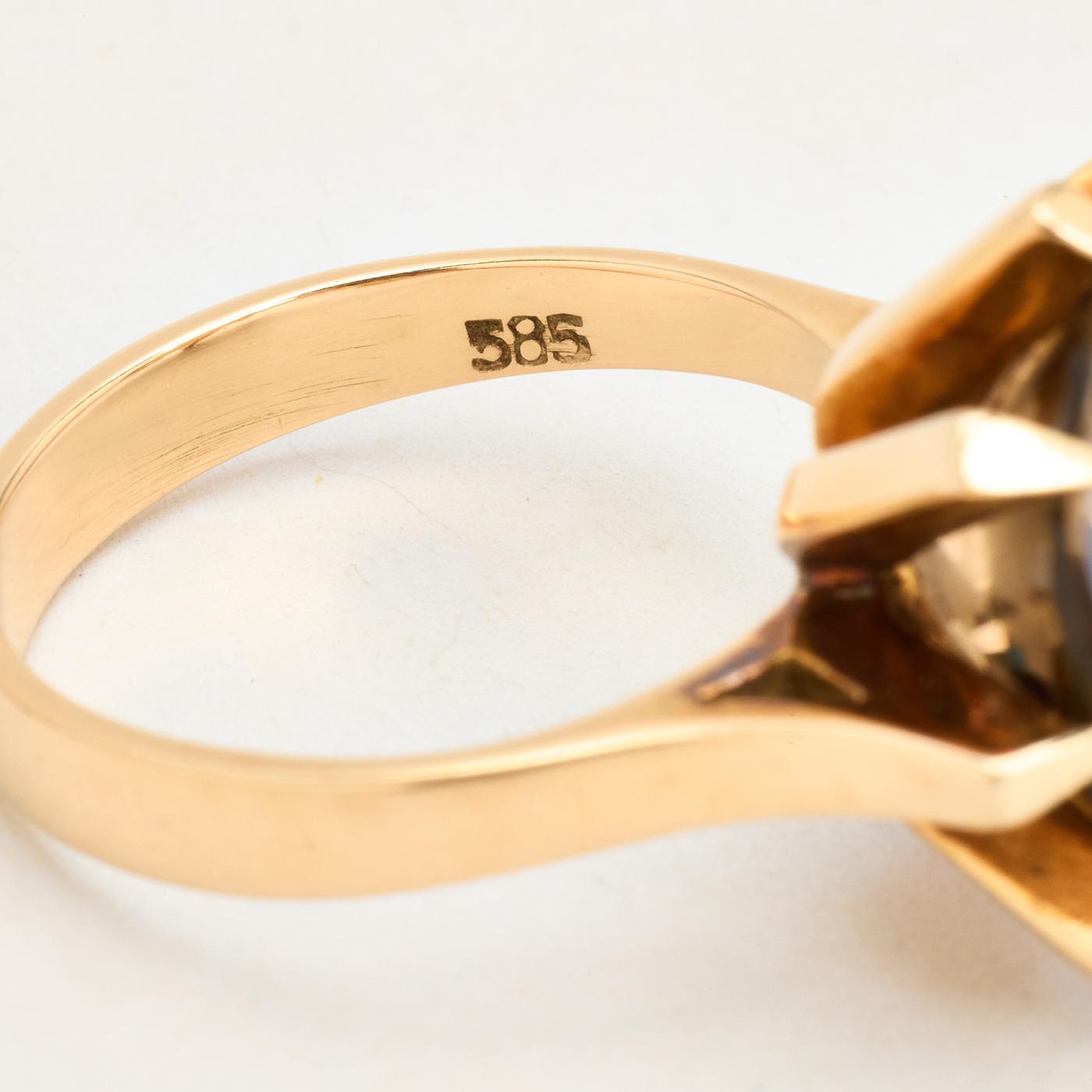 Cocktail ring i 14K guld med brun sten, str. 54