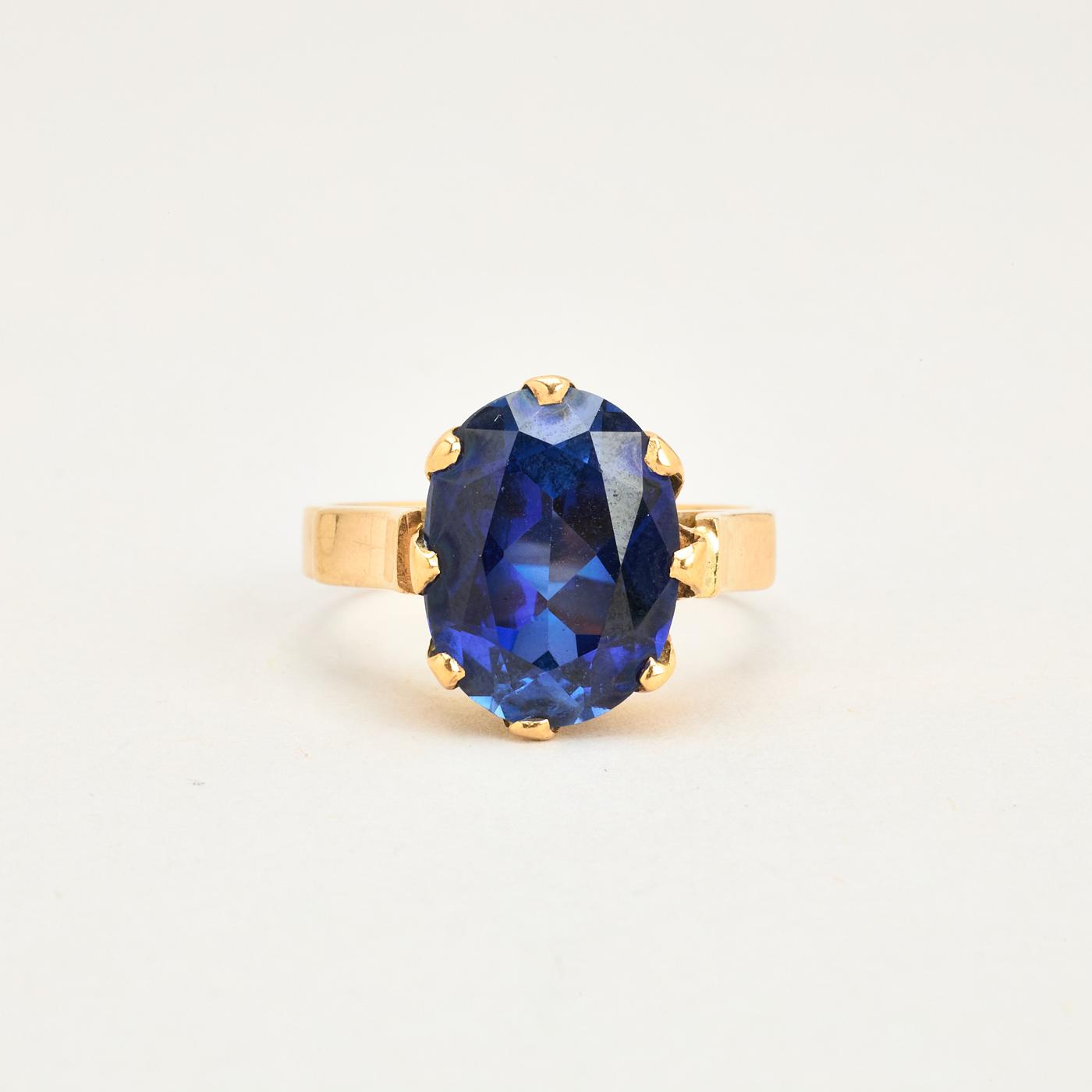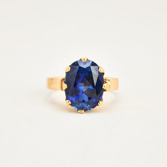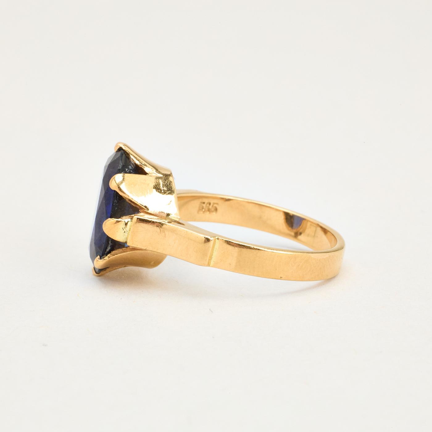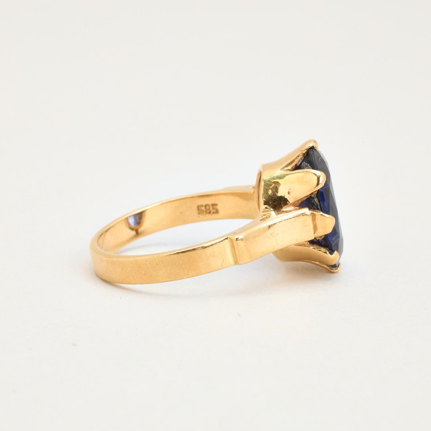 Cocktail ring i 14K guld med blå sten, str. 55