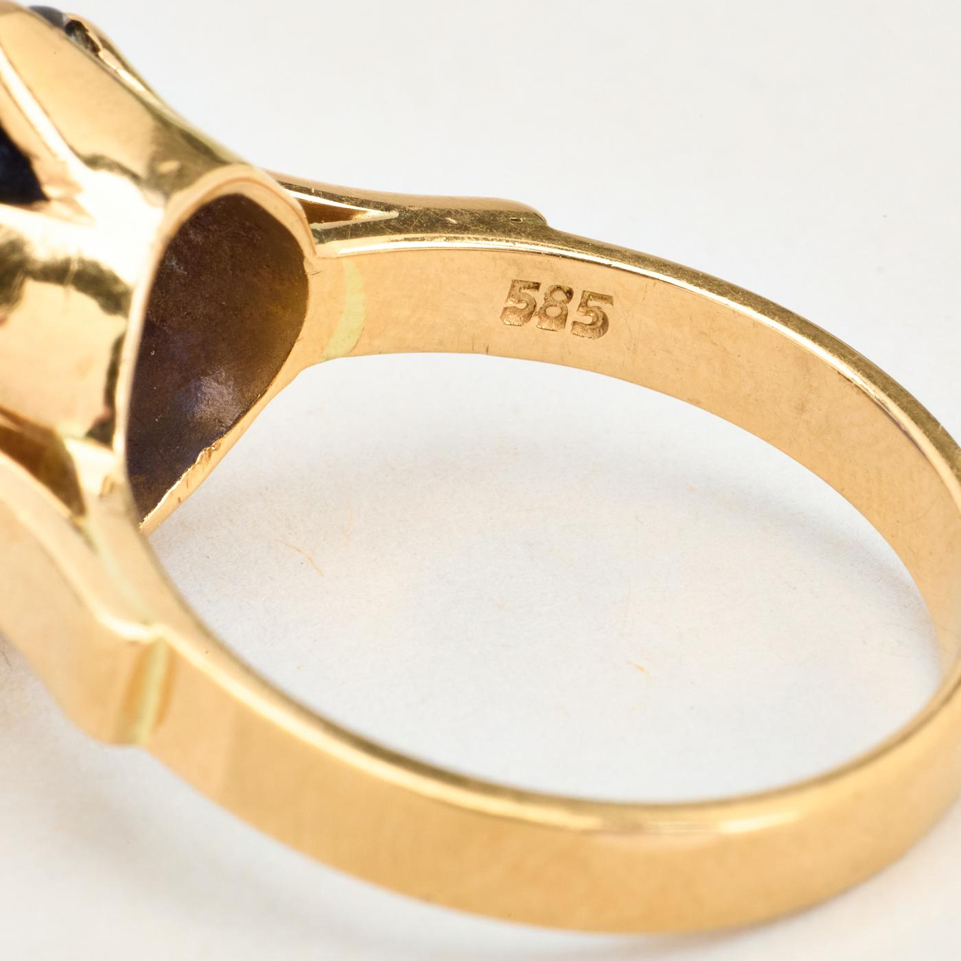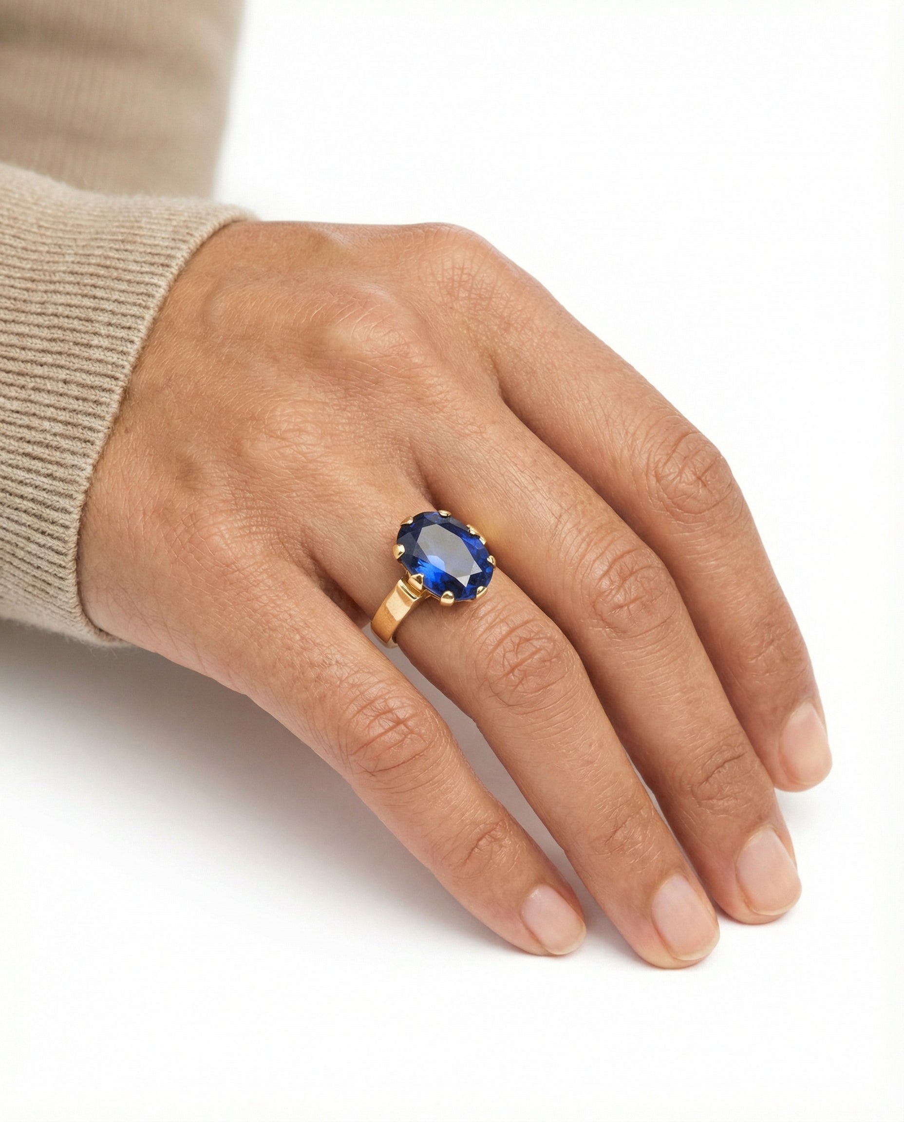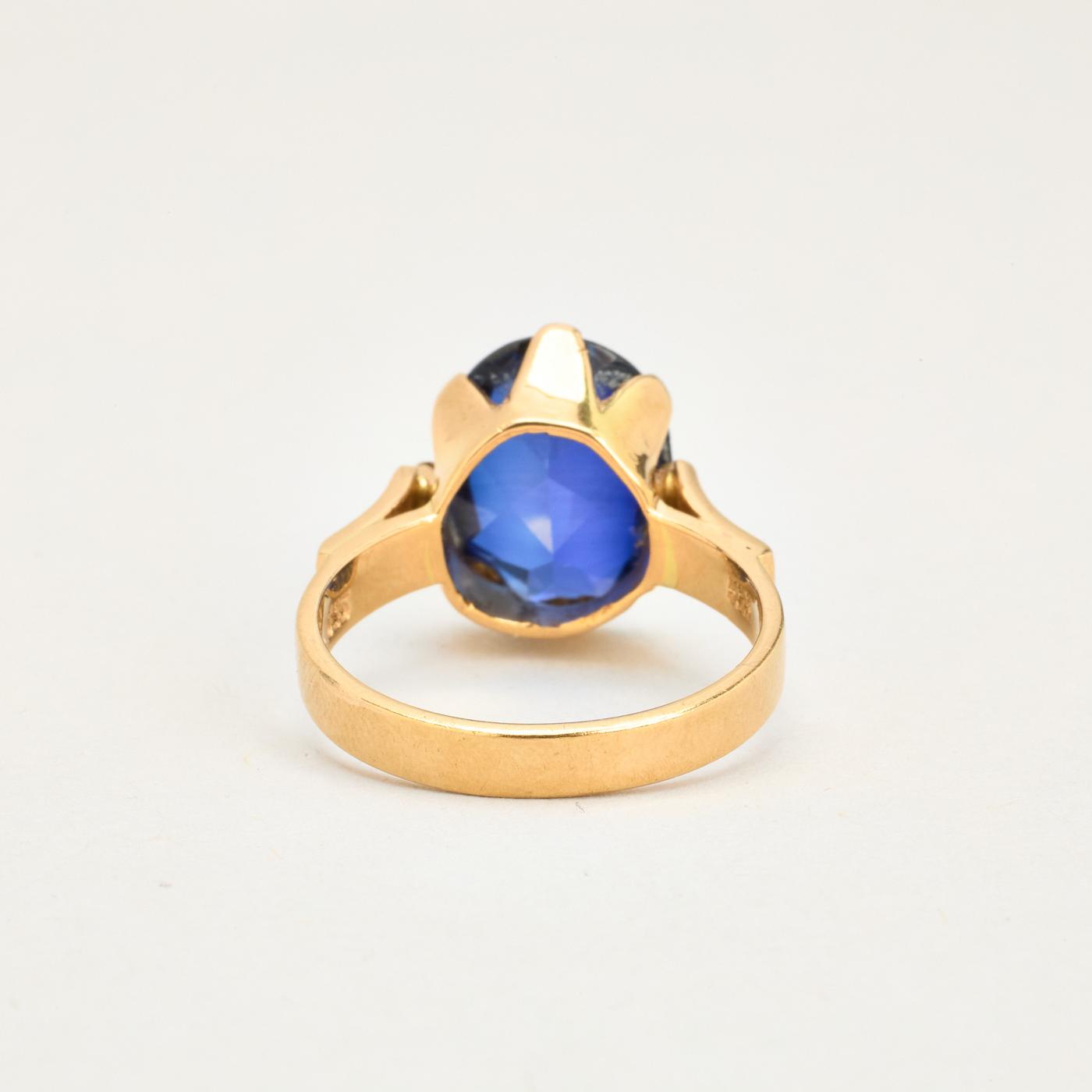 Cocktail ring i 14K guld med blå sten, str. 55