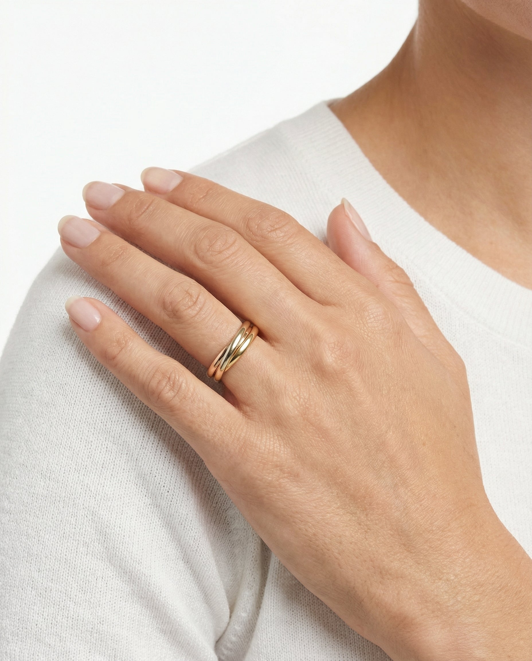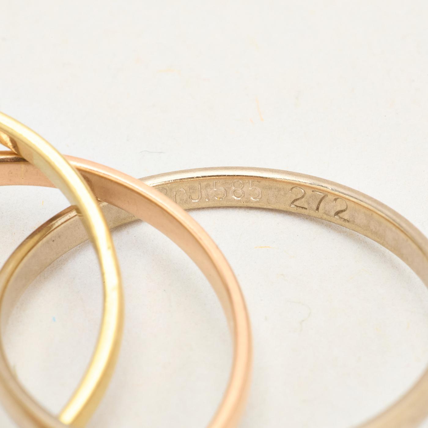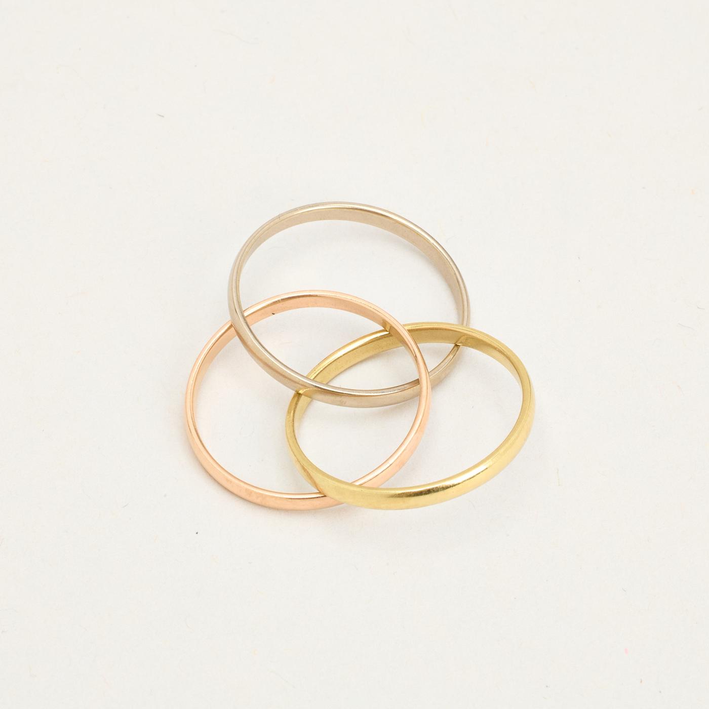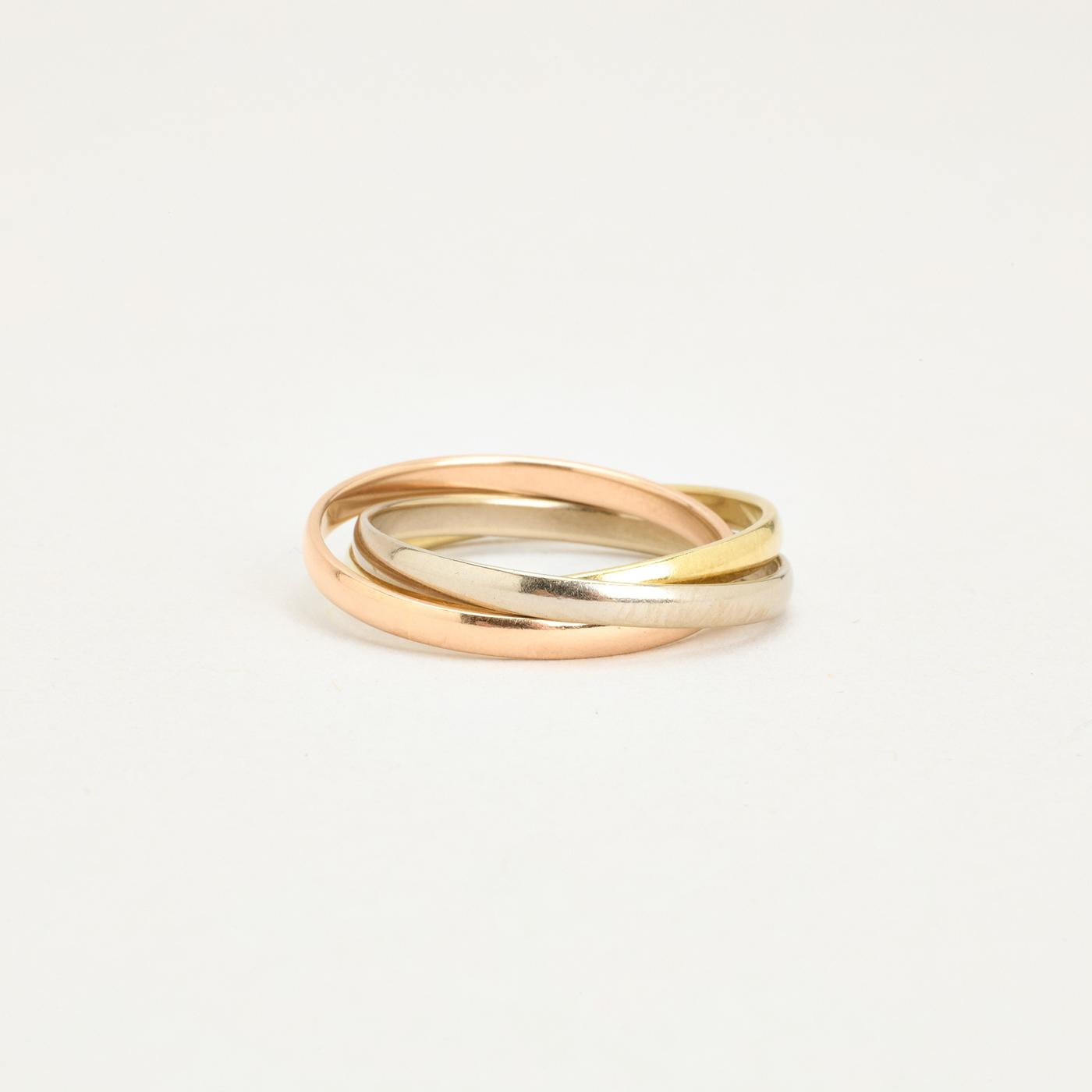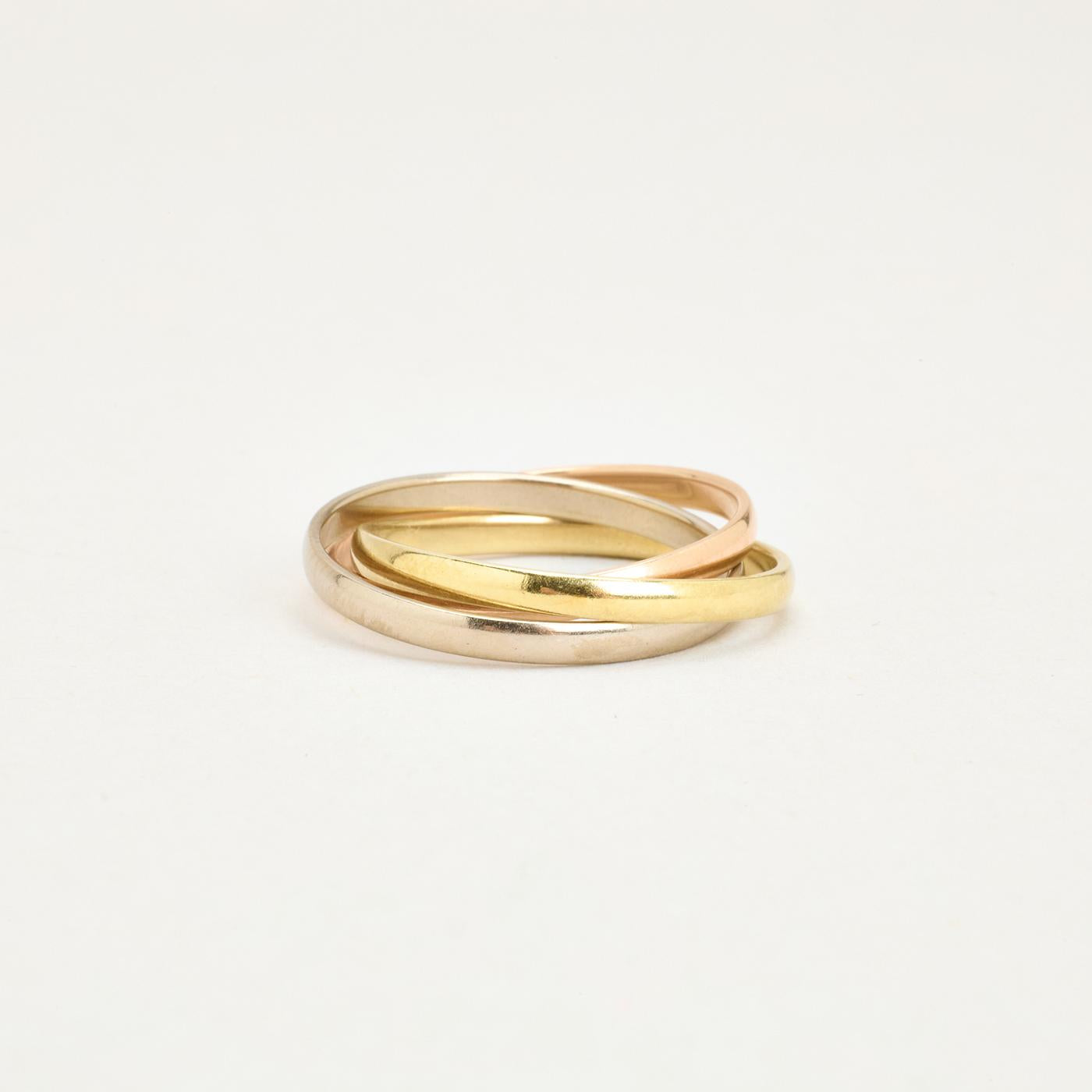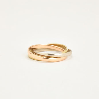 Tre i en ring i 14K guld, hvidguld og rosaguld, str. 52