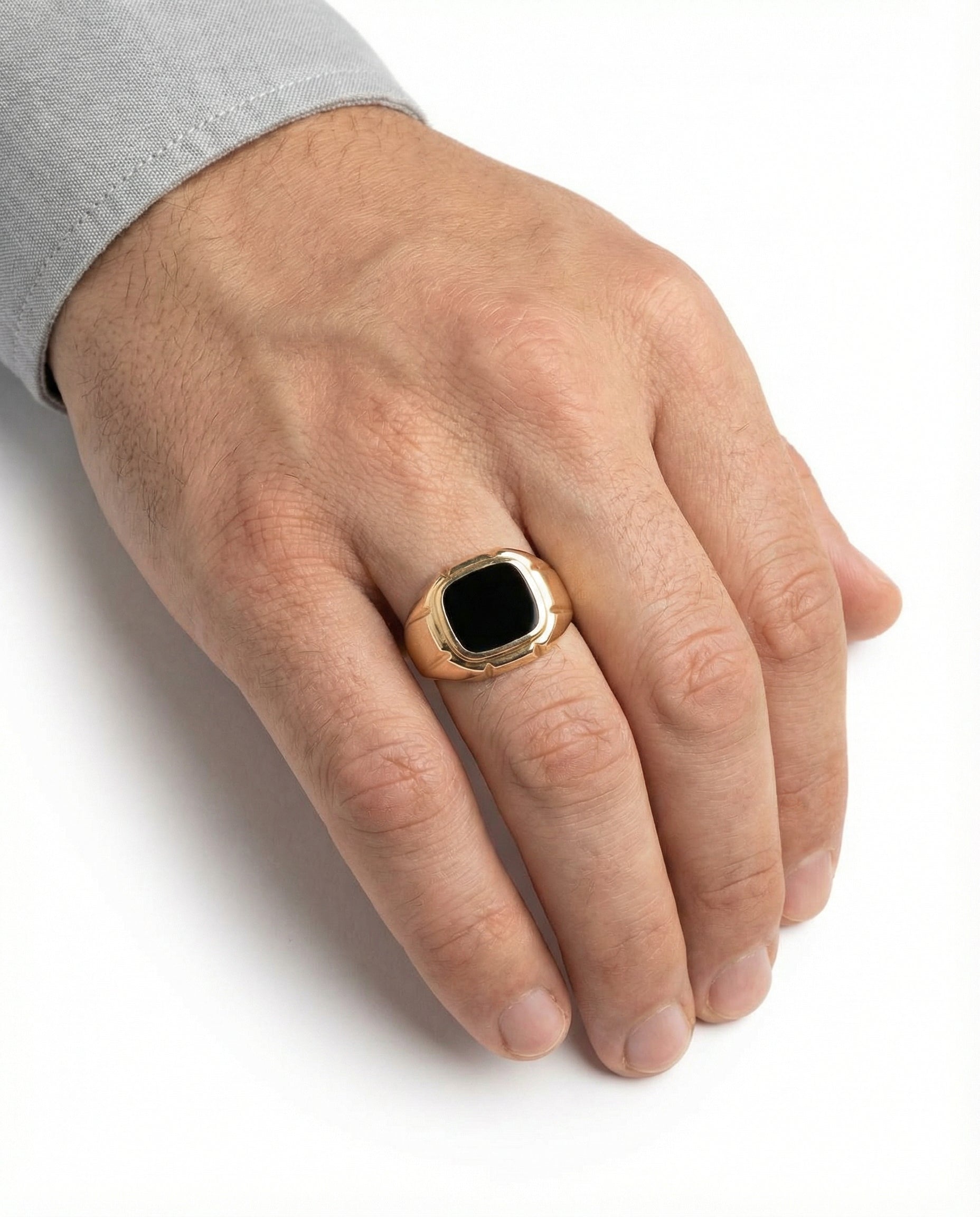 Signetring i 14K guld med en onyks, str. 64
