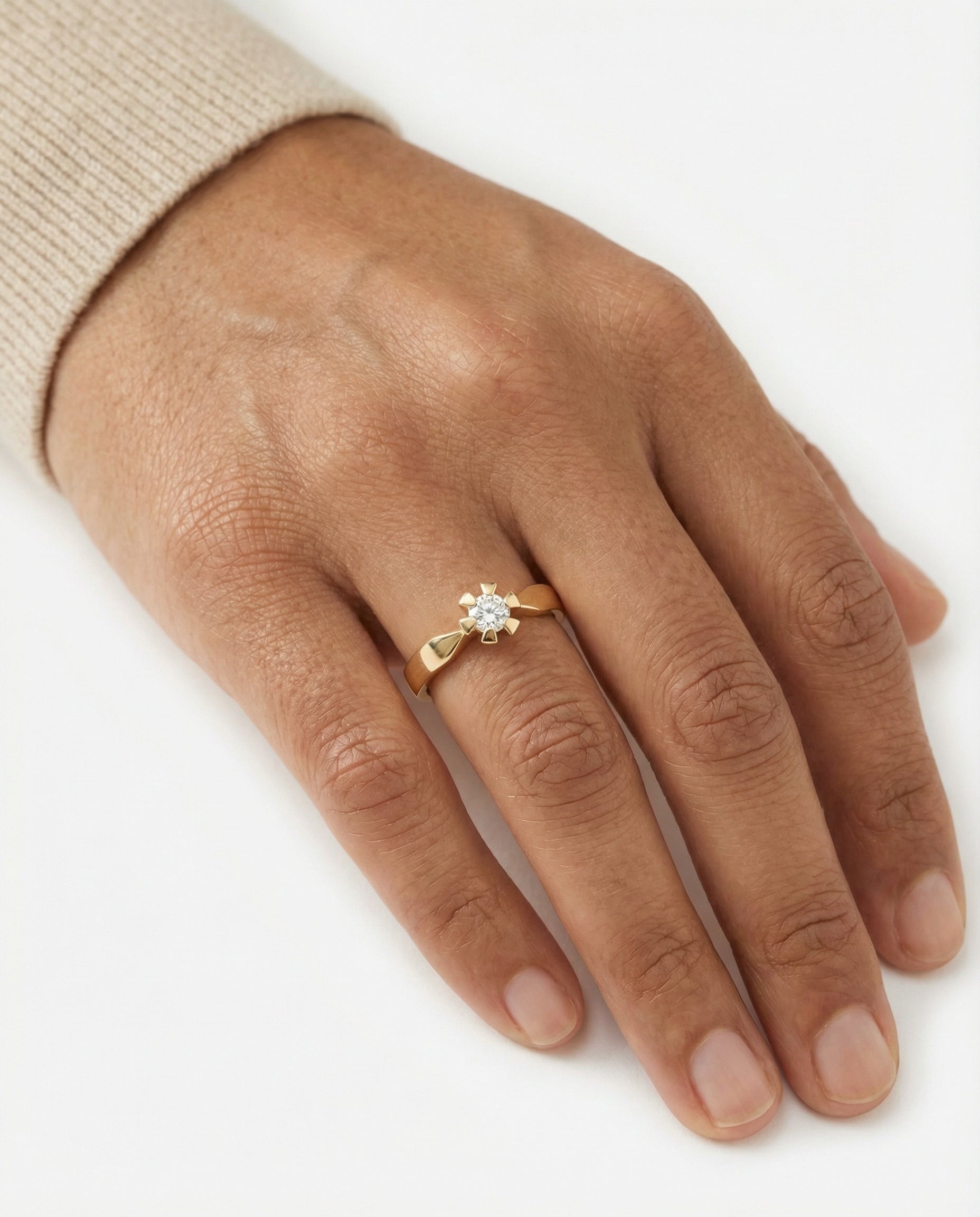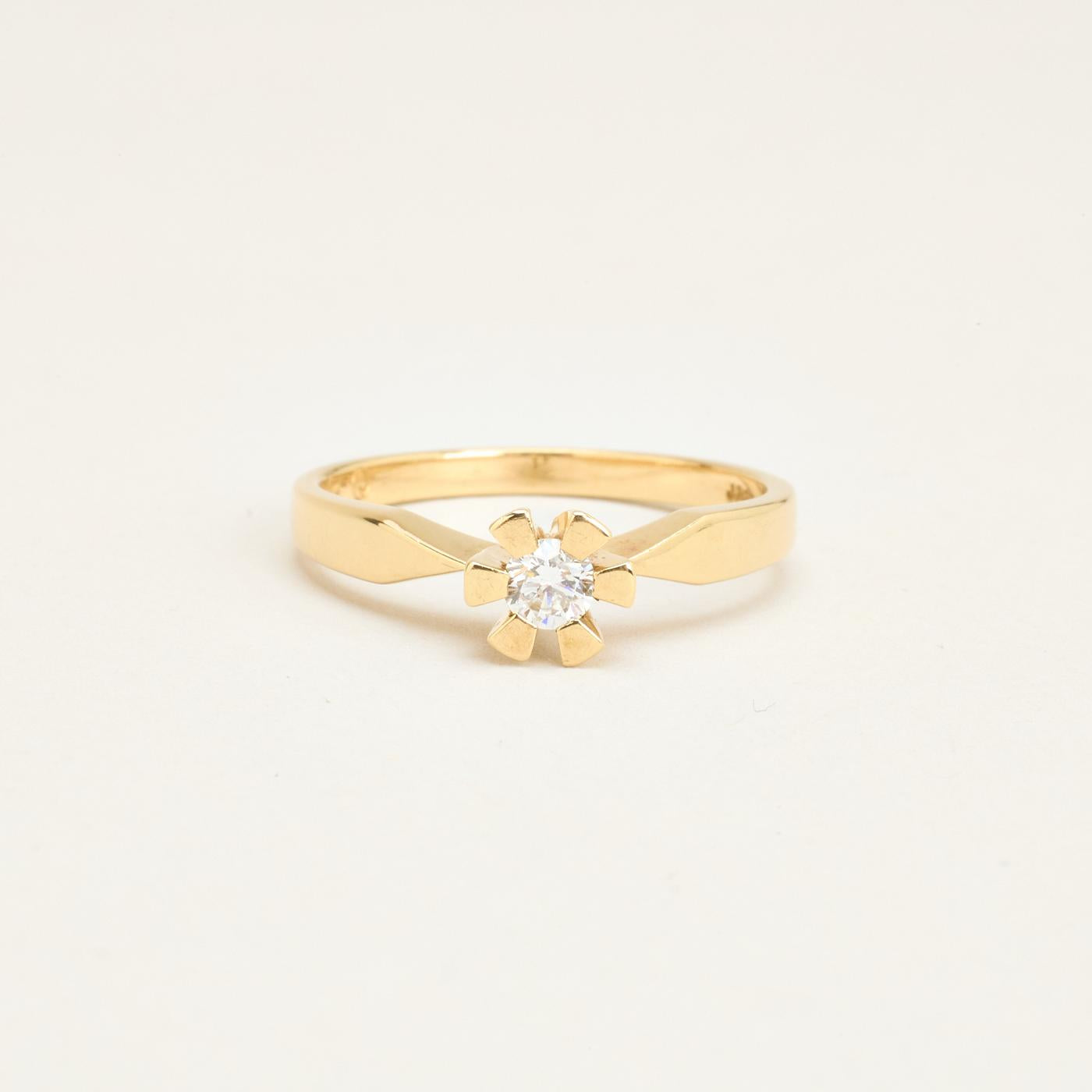 Solitairering med diamant (0.15 ct) i 14K guld, str. 54