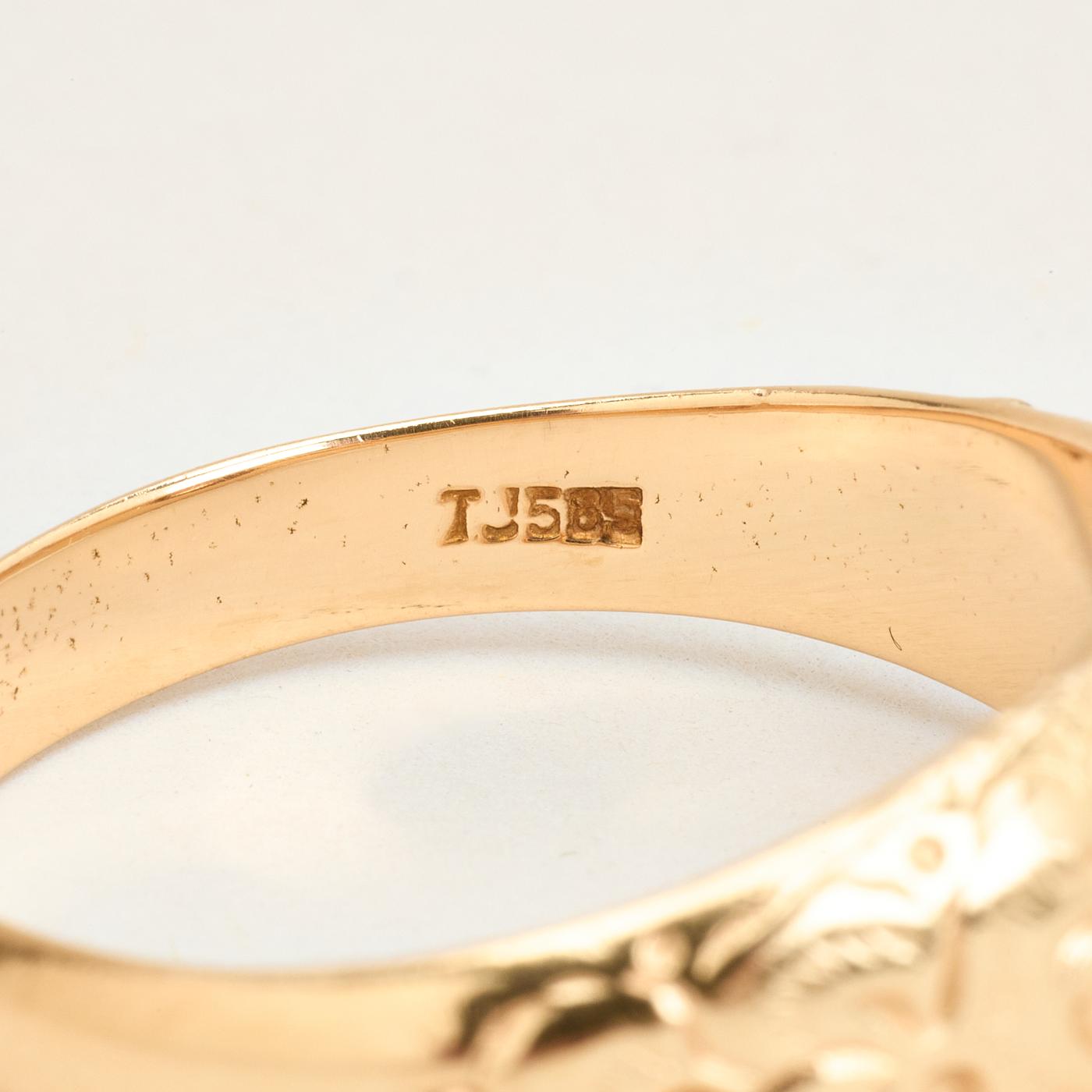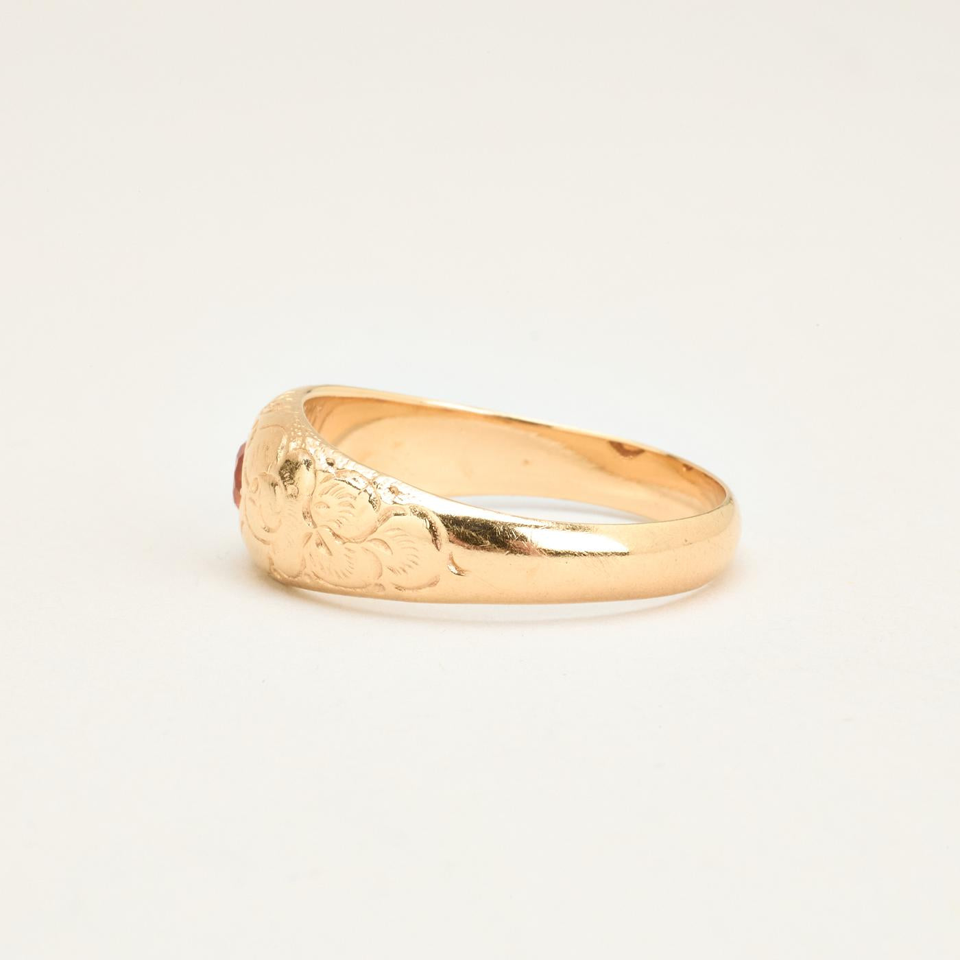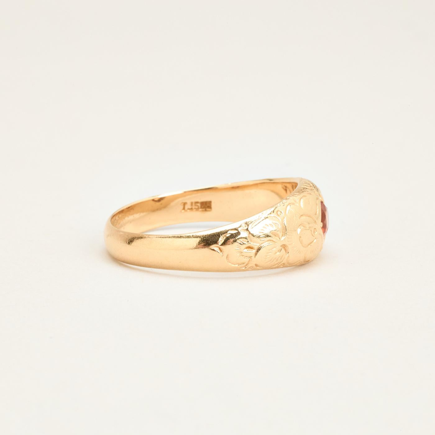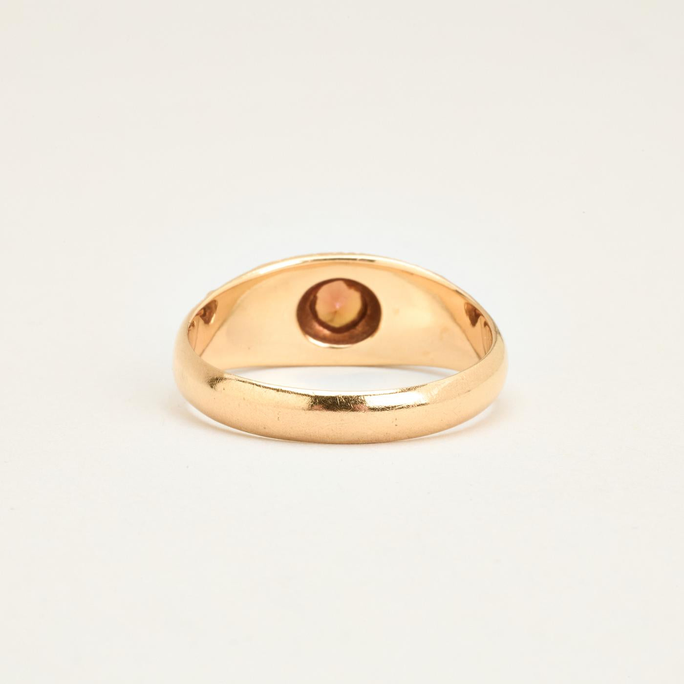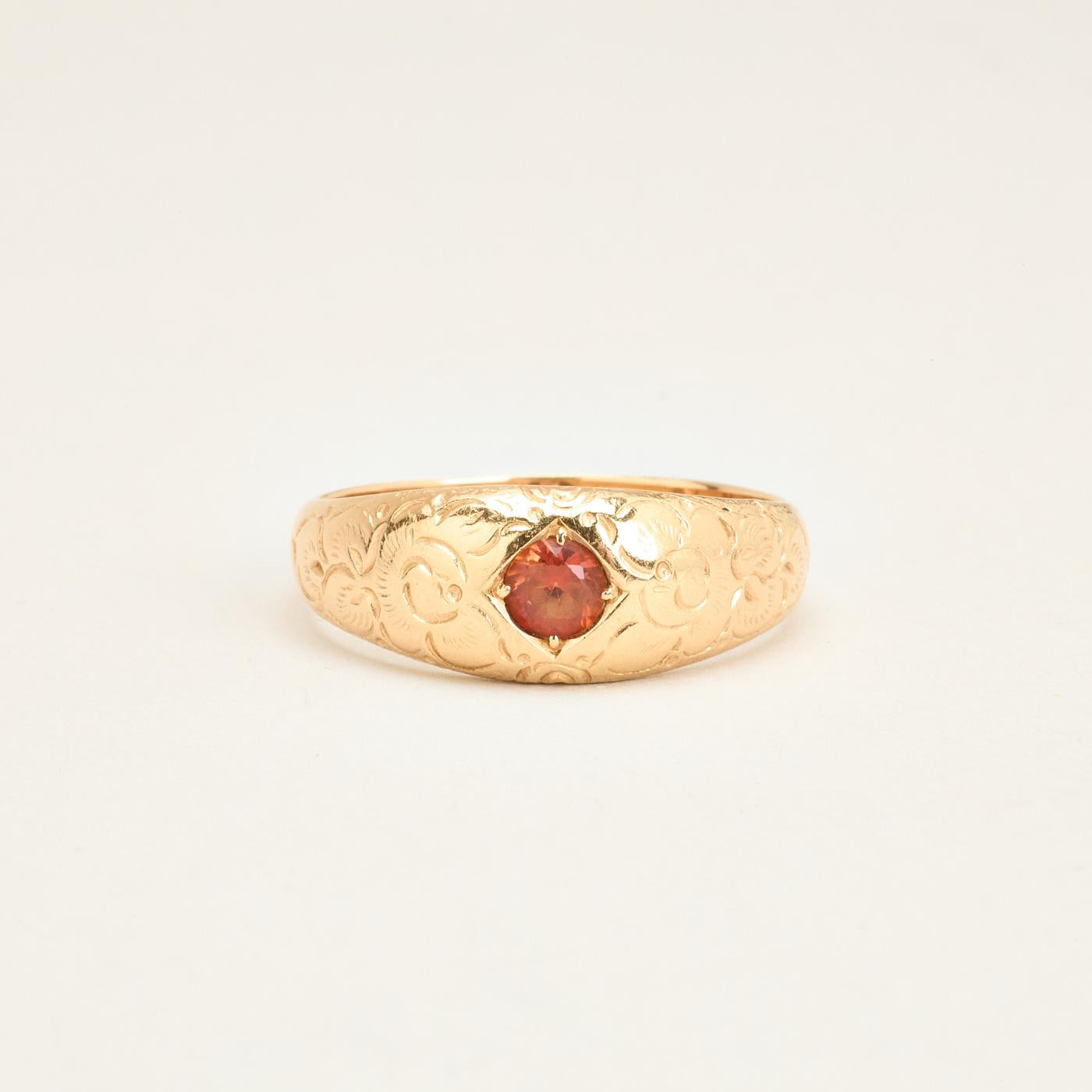 Gypsyring i 14K guld med en syntetisk safir, str. 68