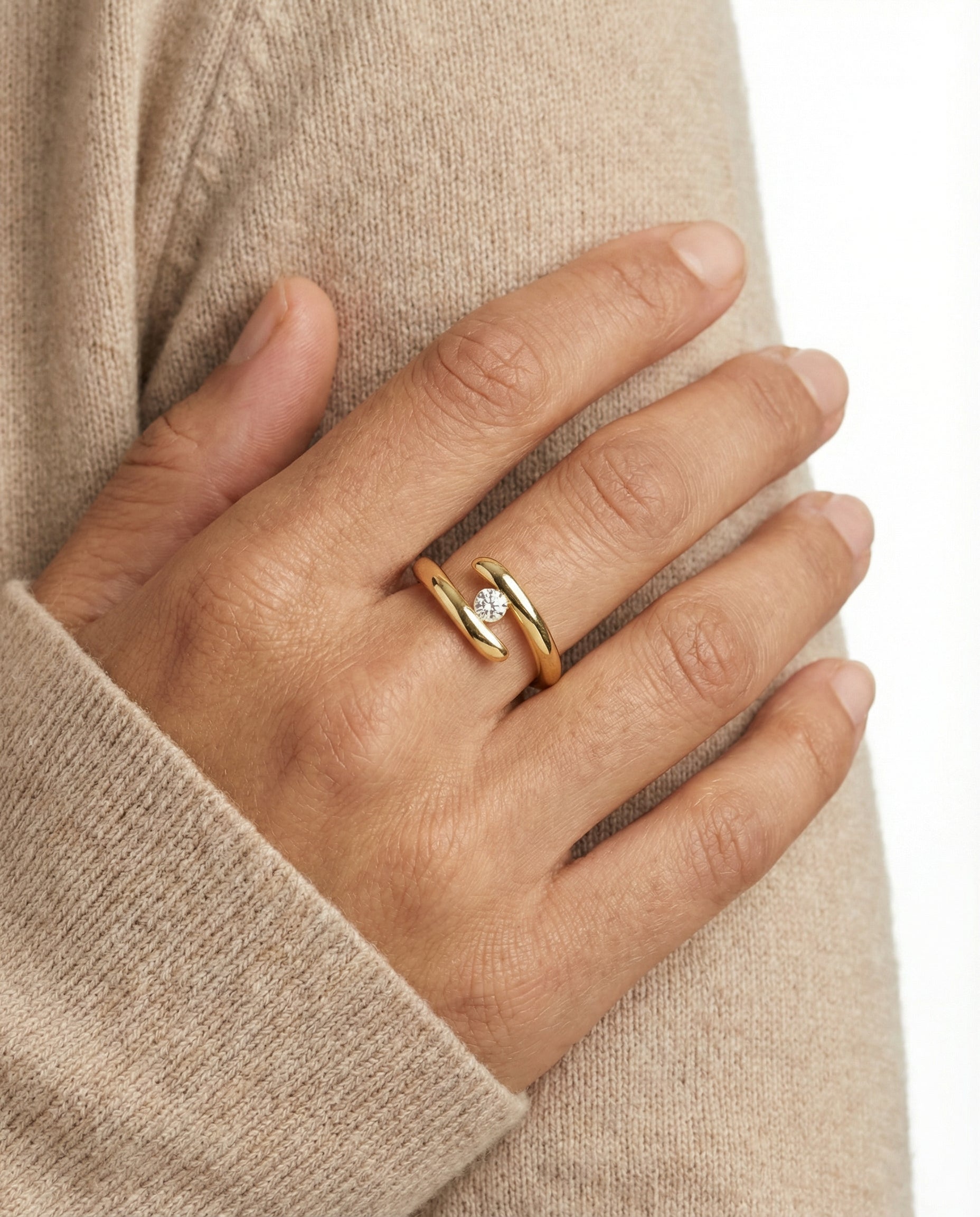 Crossoverring med diamant (0.16 ct) i 14K guld, str. 55