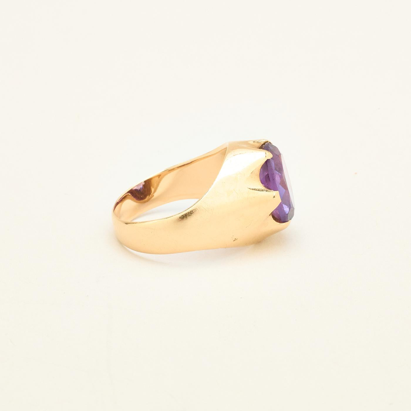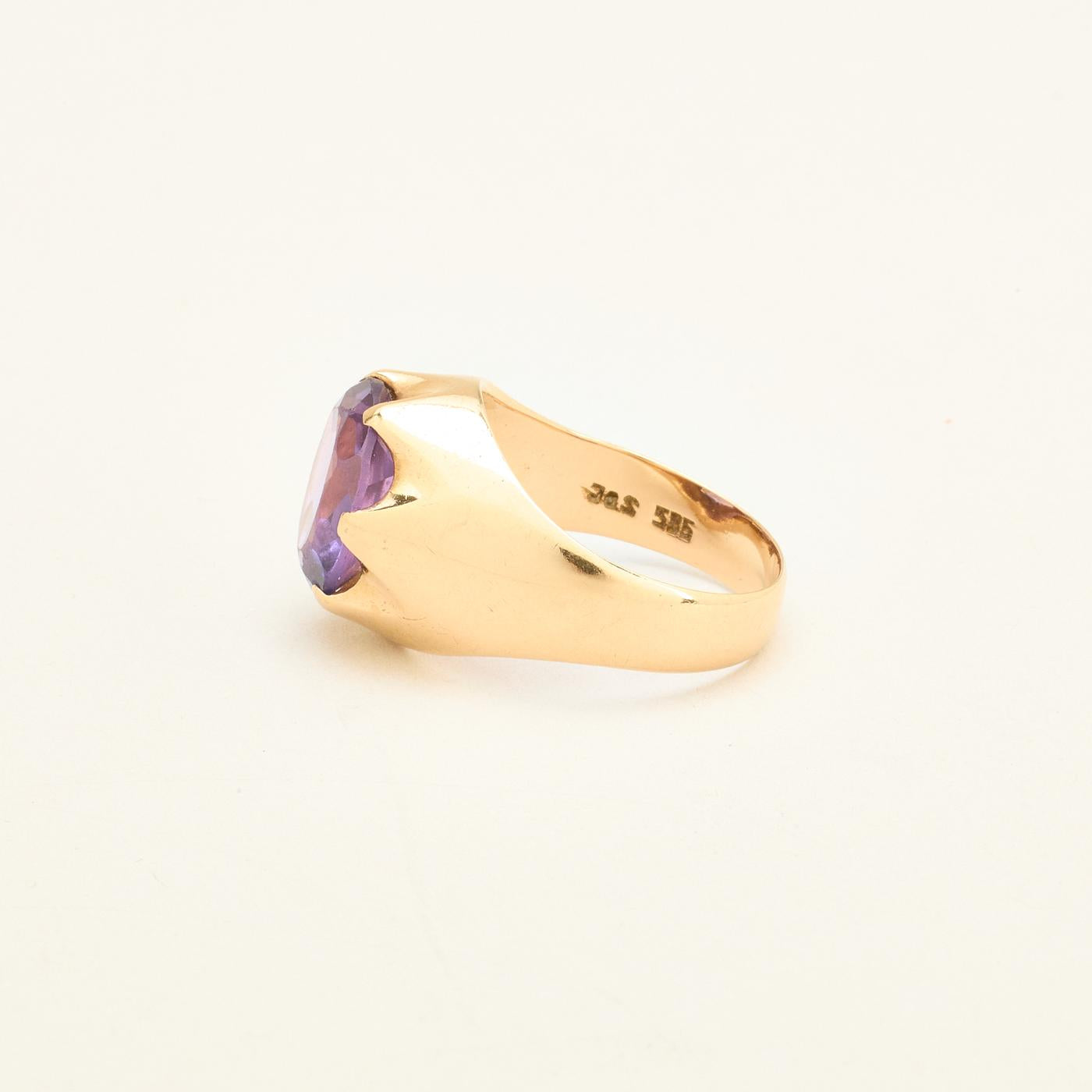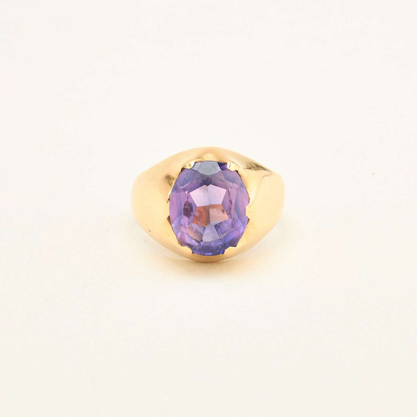 Signetring i 14K guld med lilla sten, str. 57