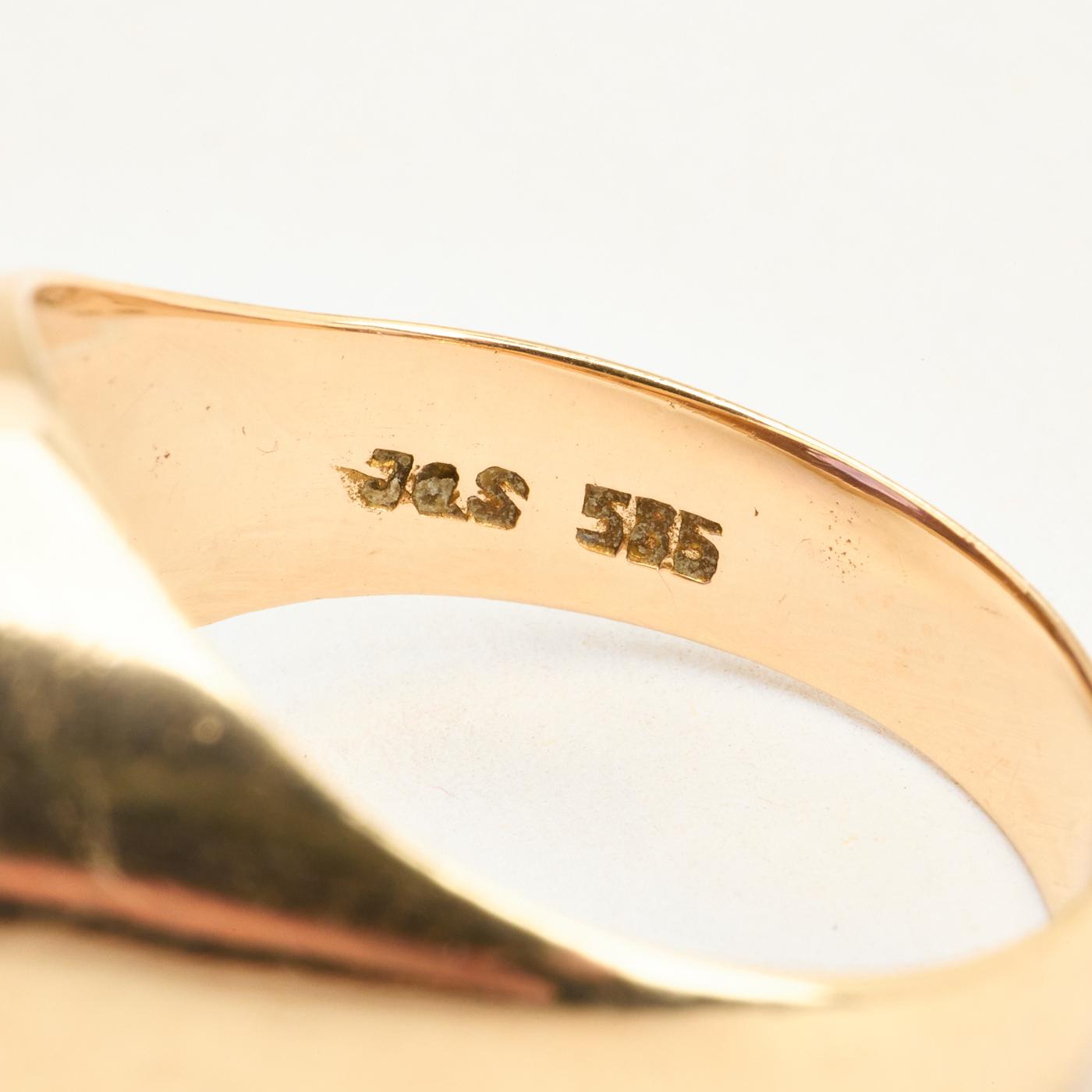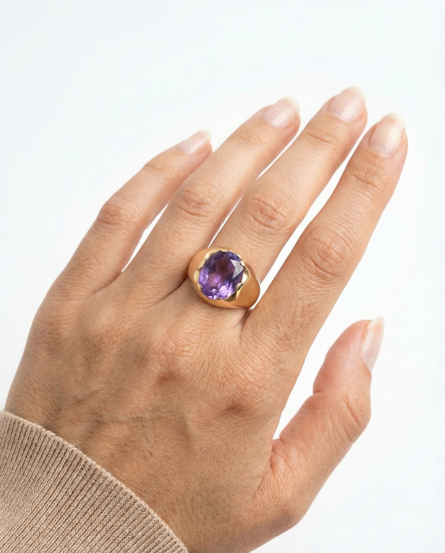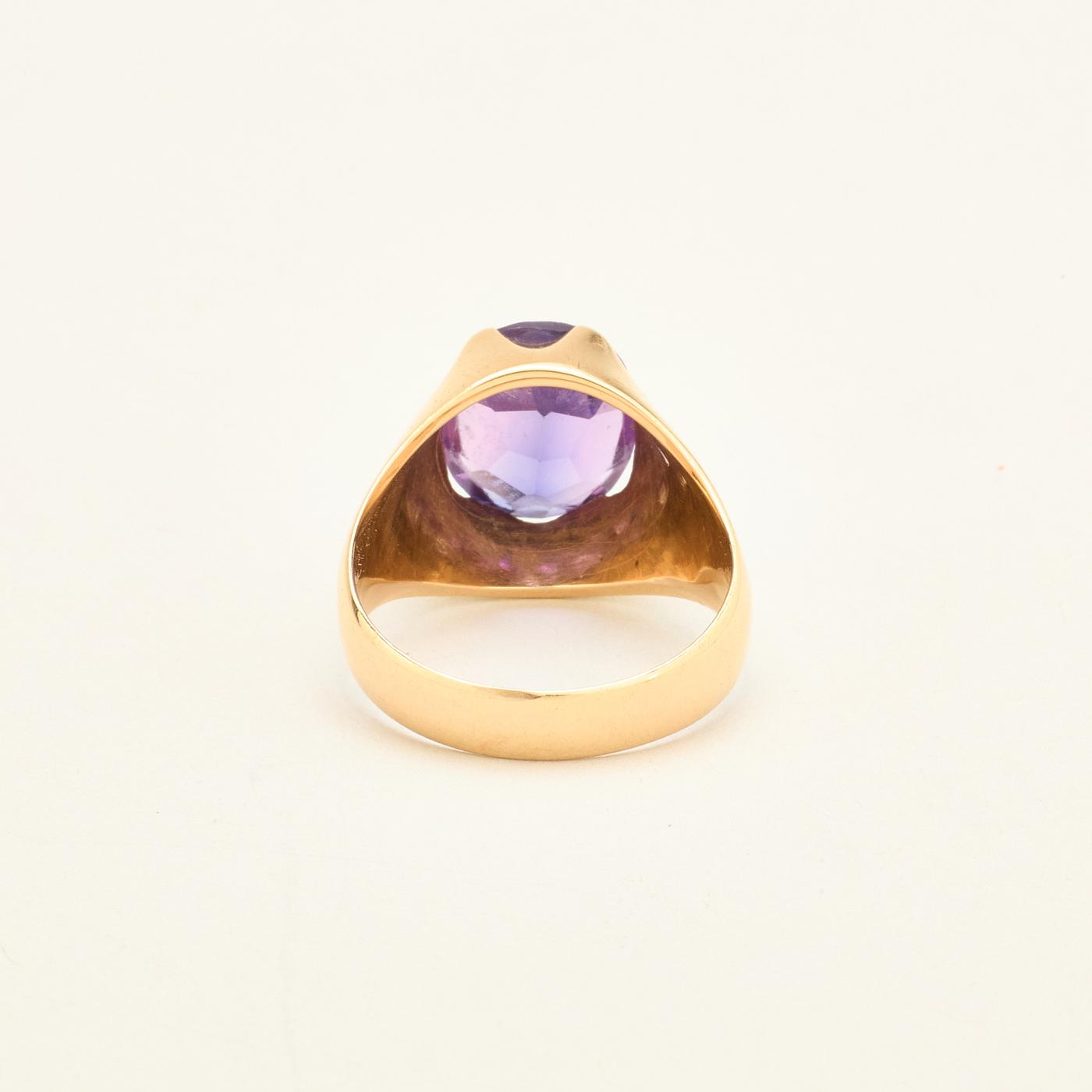 Signetring i 14K guld med lilla sten, str. 57
