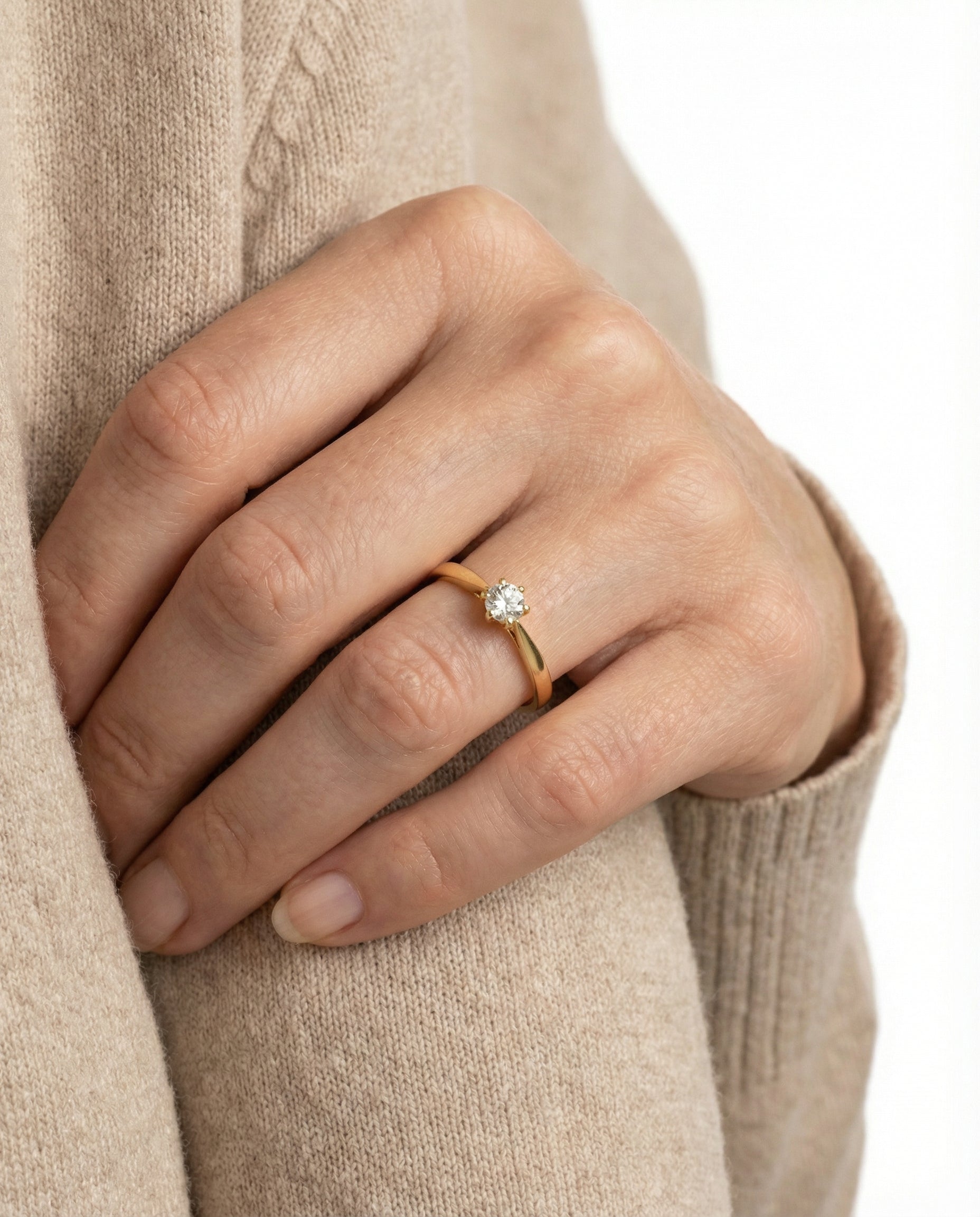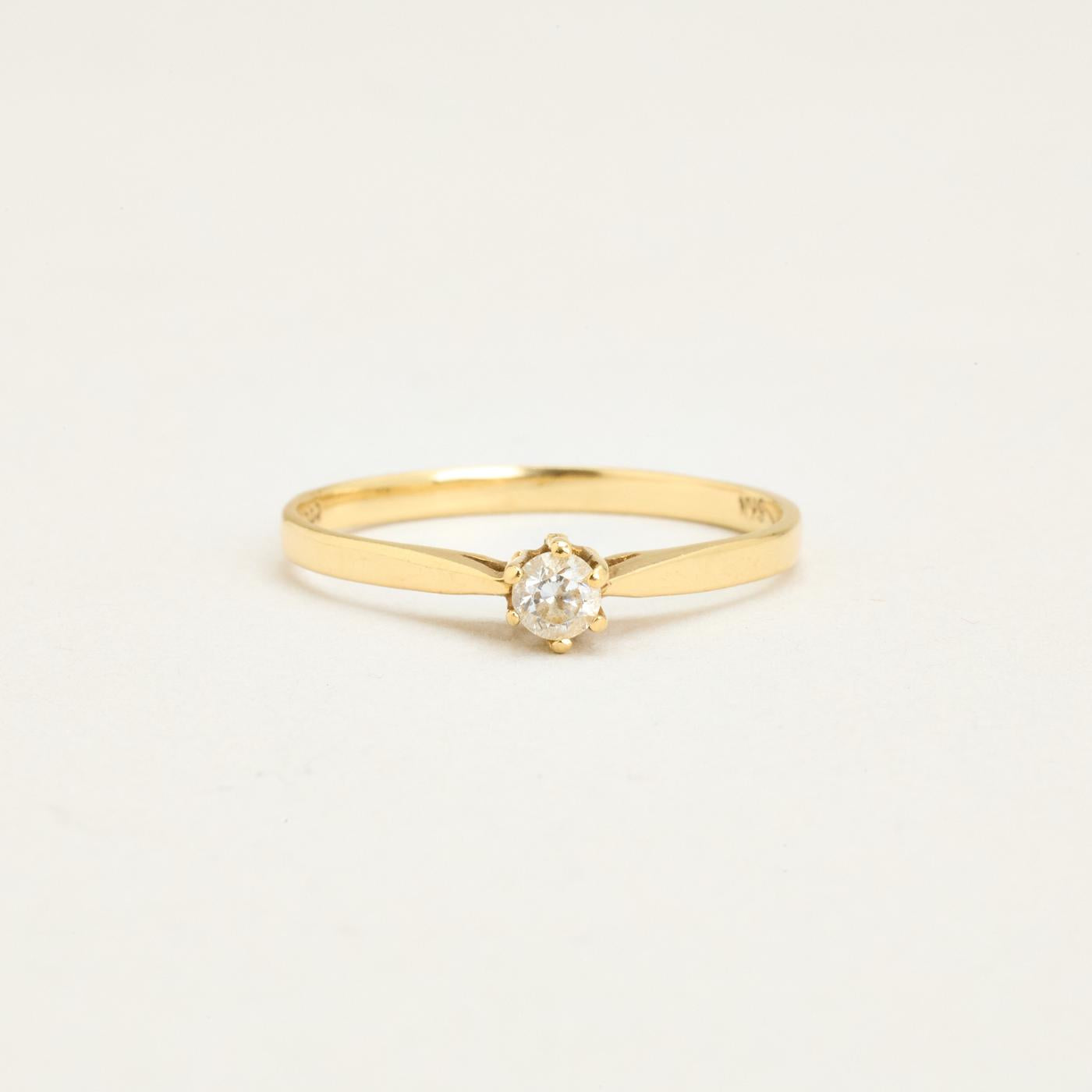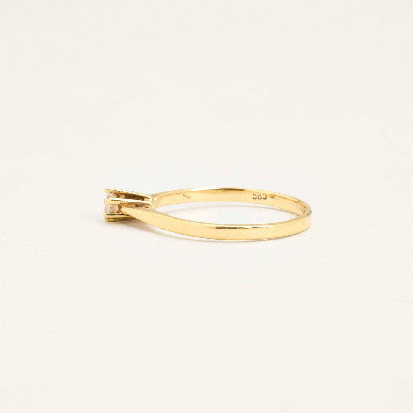 Klassisk Solitairering i 14K guld med en zirkonia, str. 54