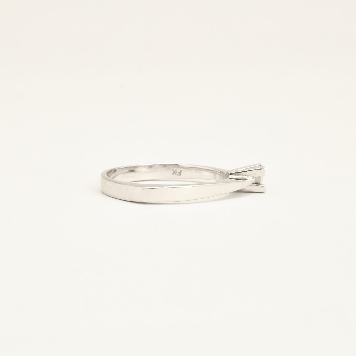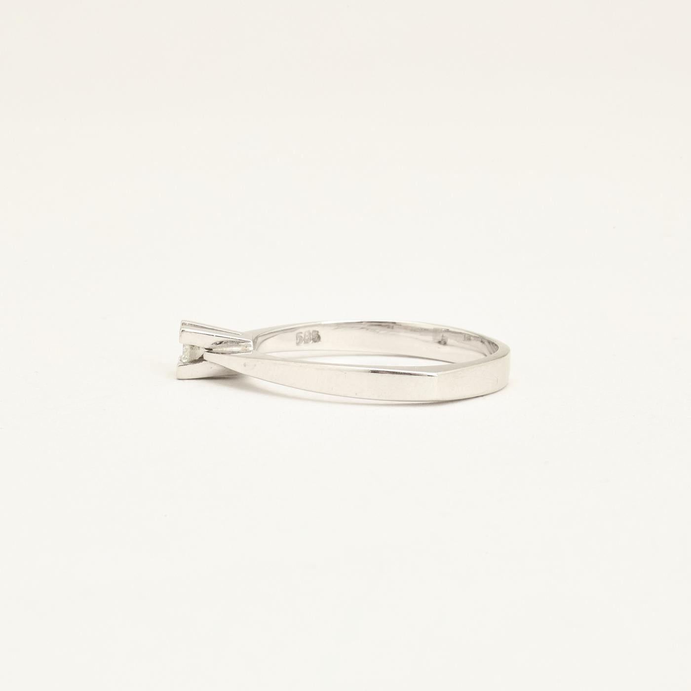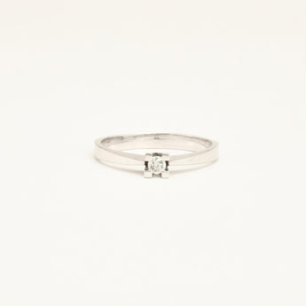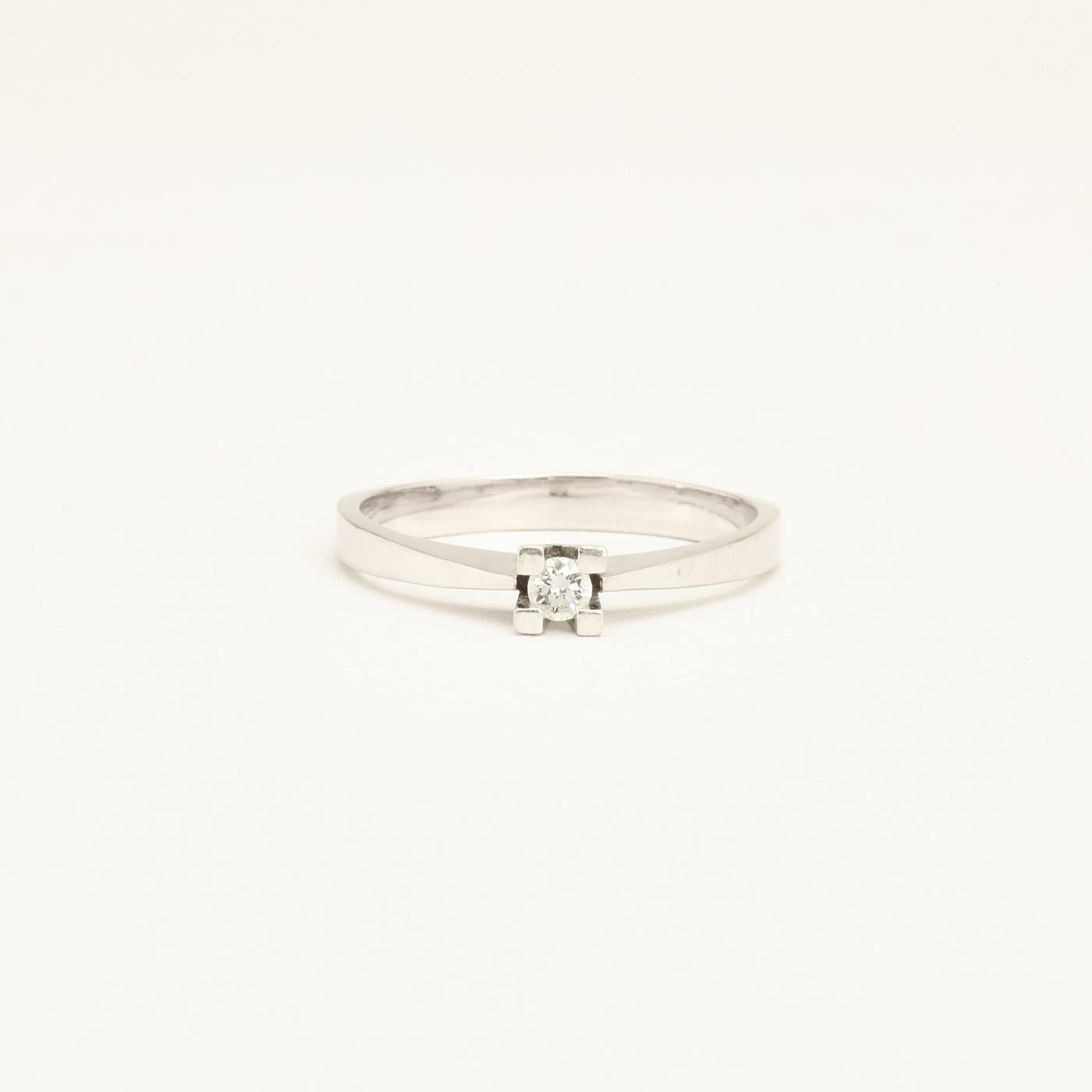 Klassisk Solitairering med diamant (0.11 ct) i 14K hvidguld med hvid sten, str. 61