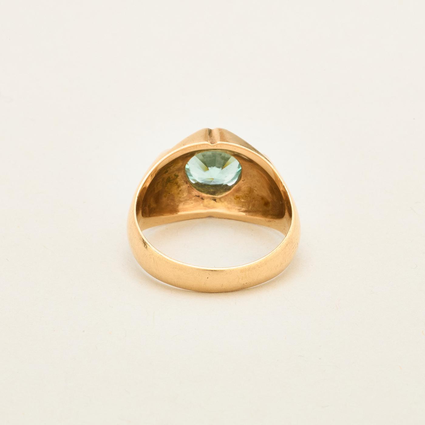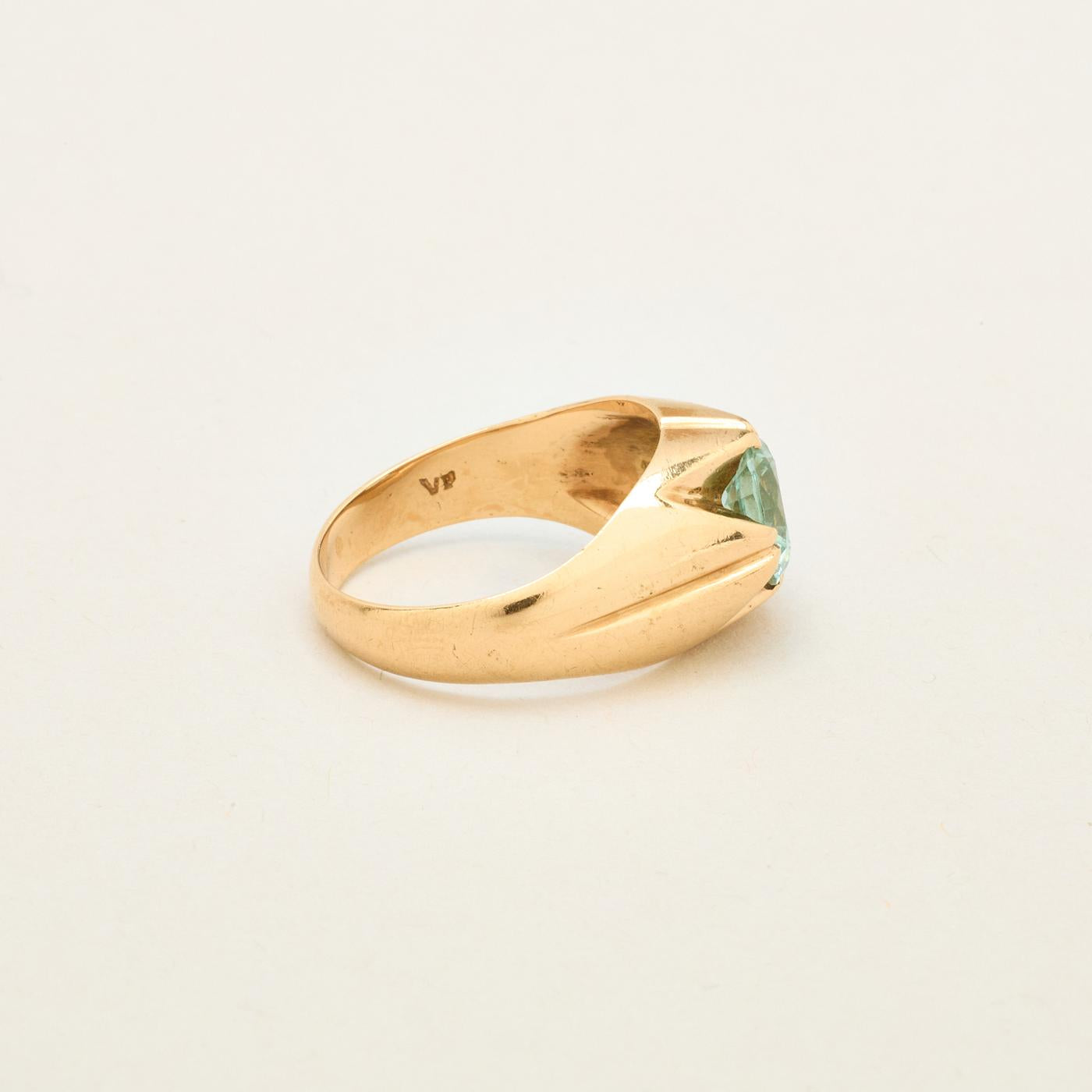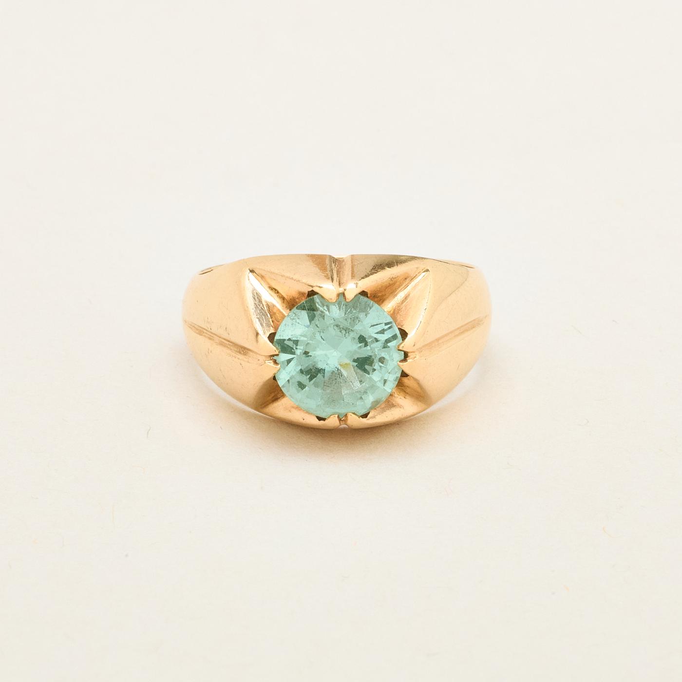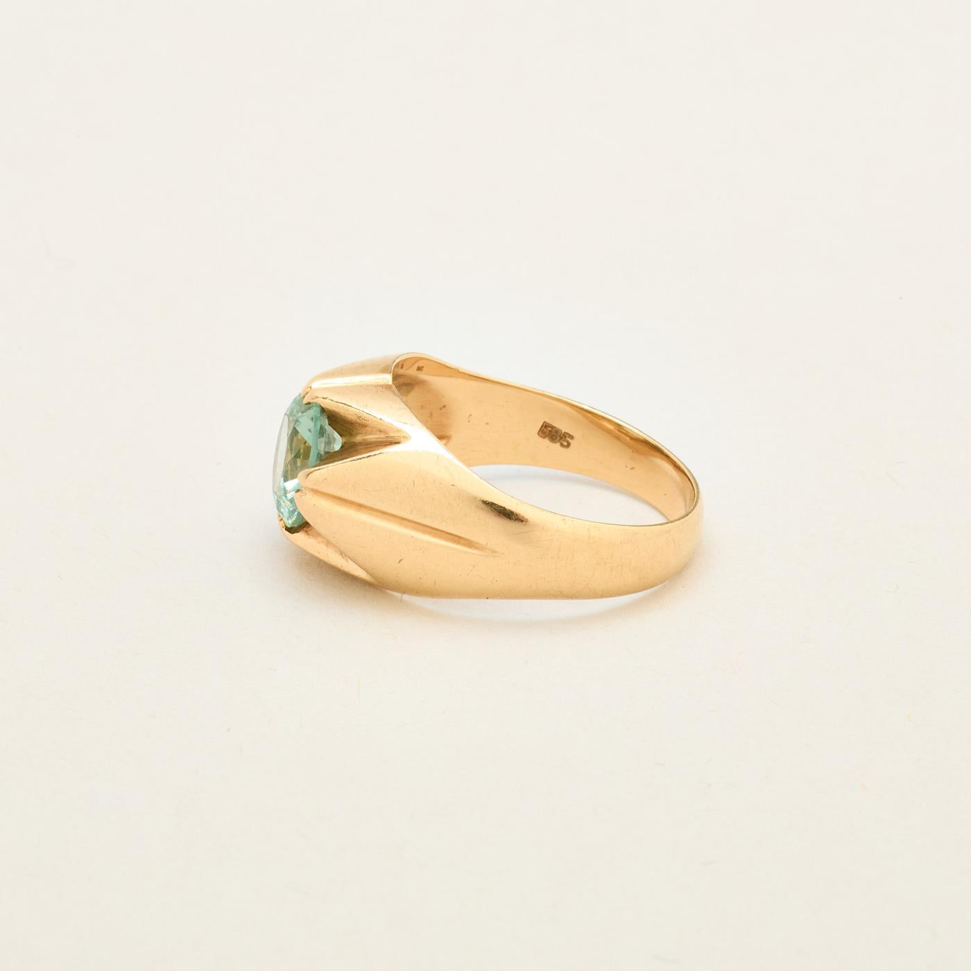 Signetring i 14K guld med lysegrøn sten, Str. 56
