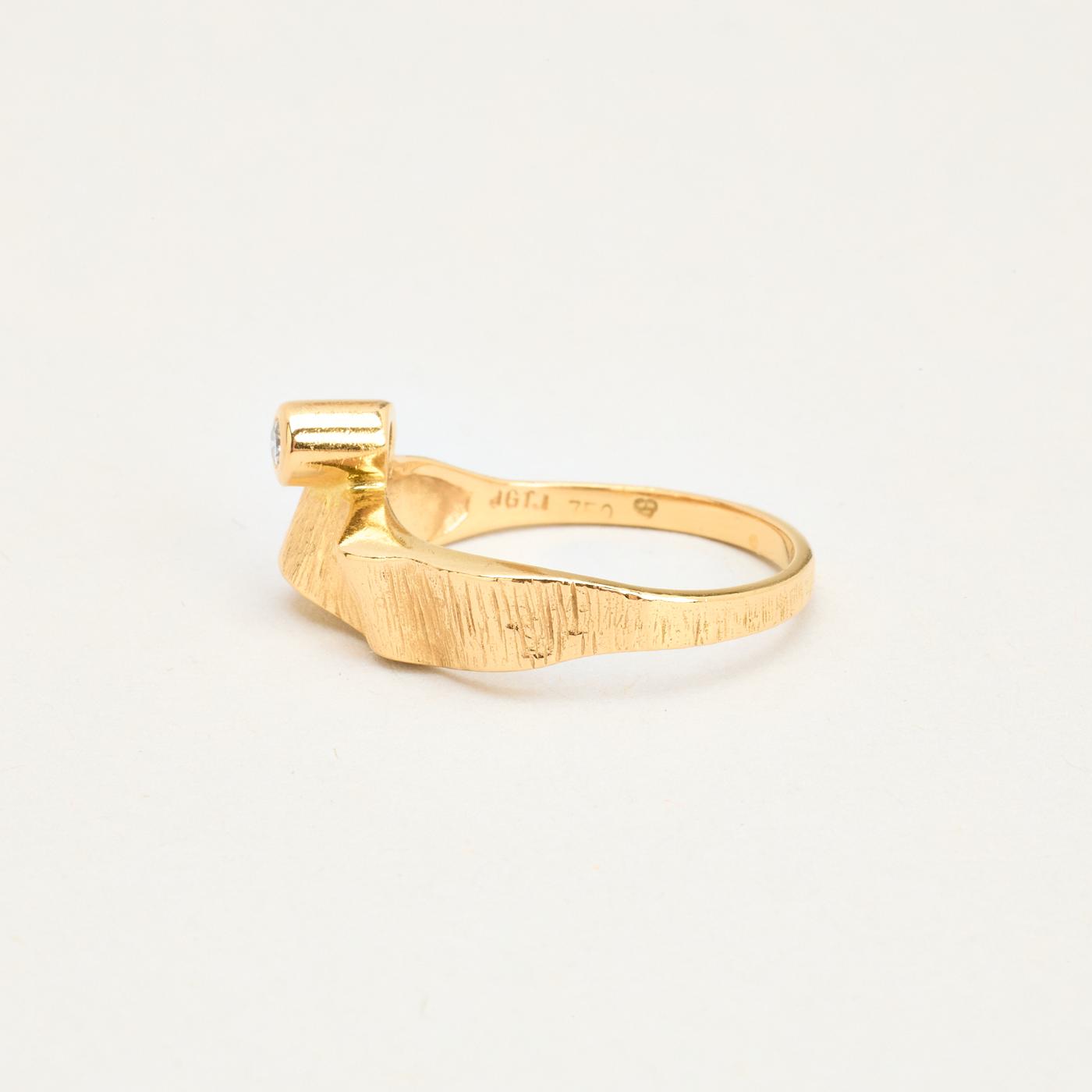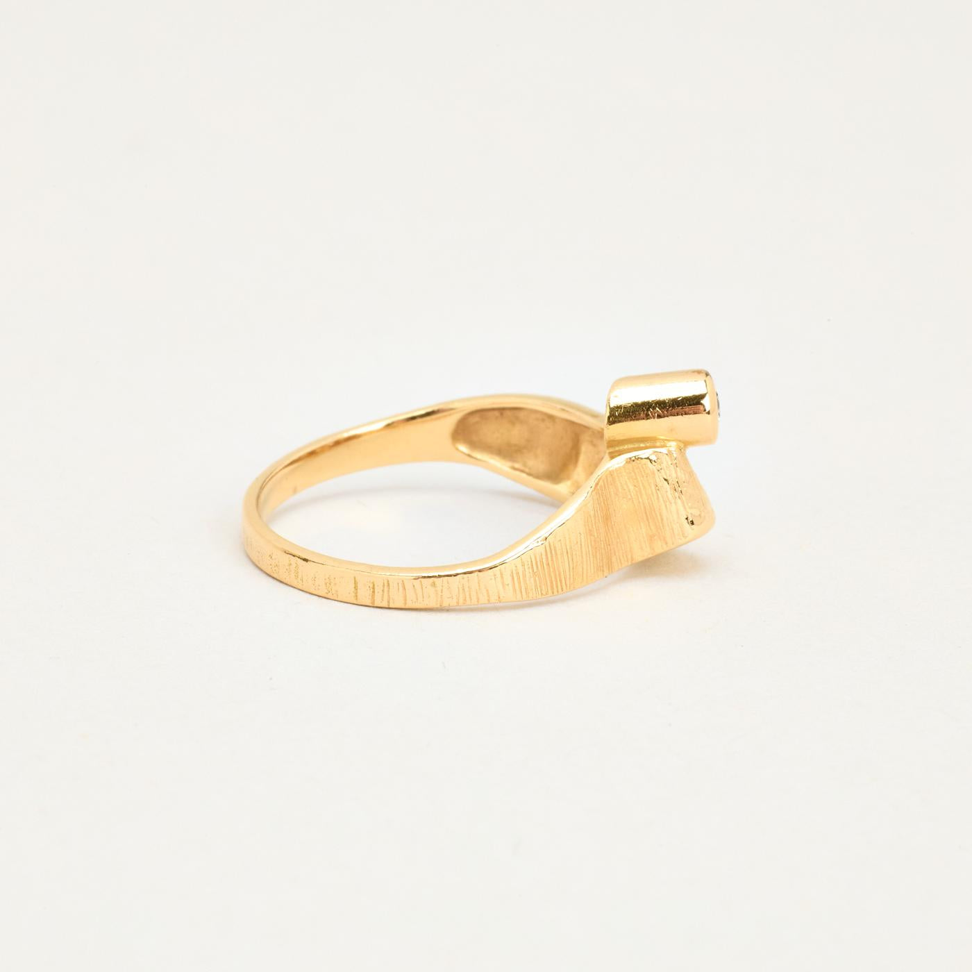 Organisk Statement ring i 18K guld med en diamant (0,05 ct), Str. 54