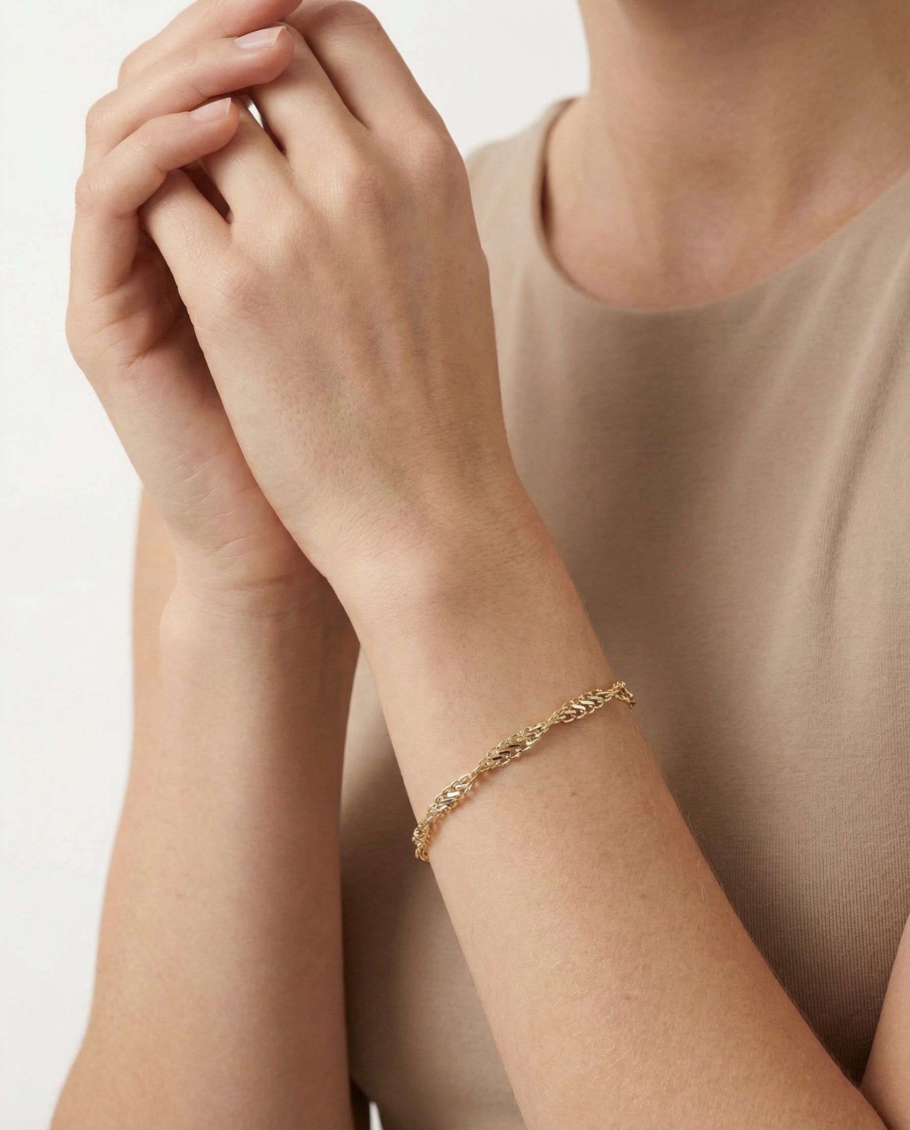 Model: Singaporekæde Armbånd i 14K guld, 20 cm, 3 g