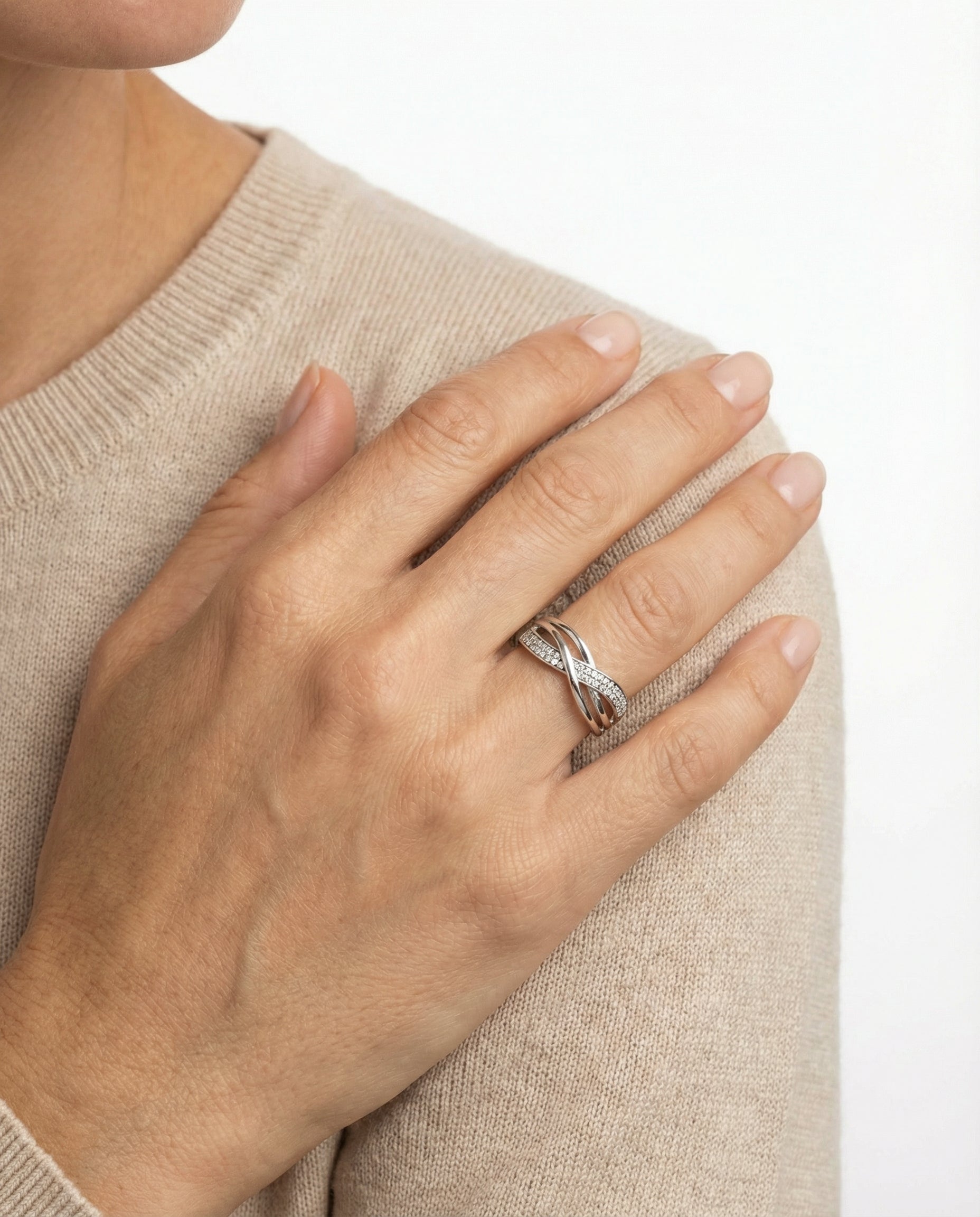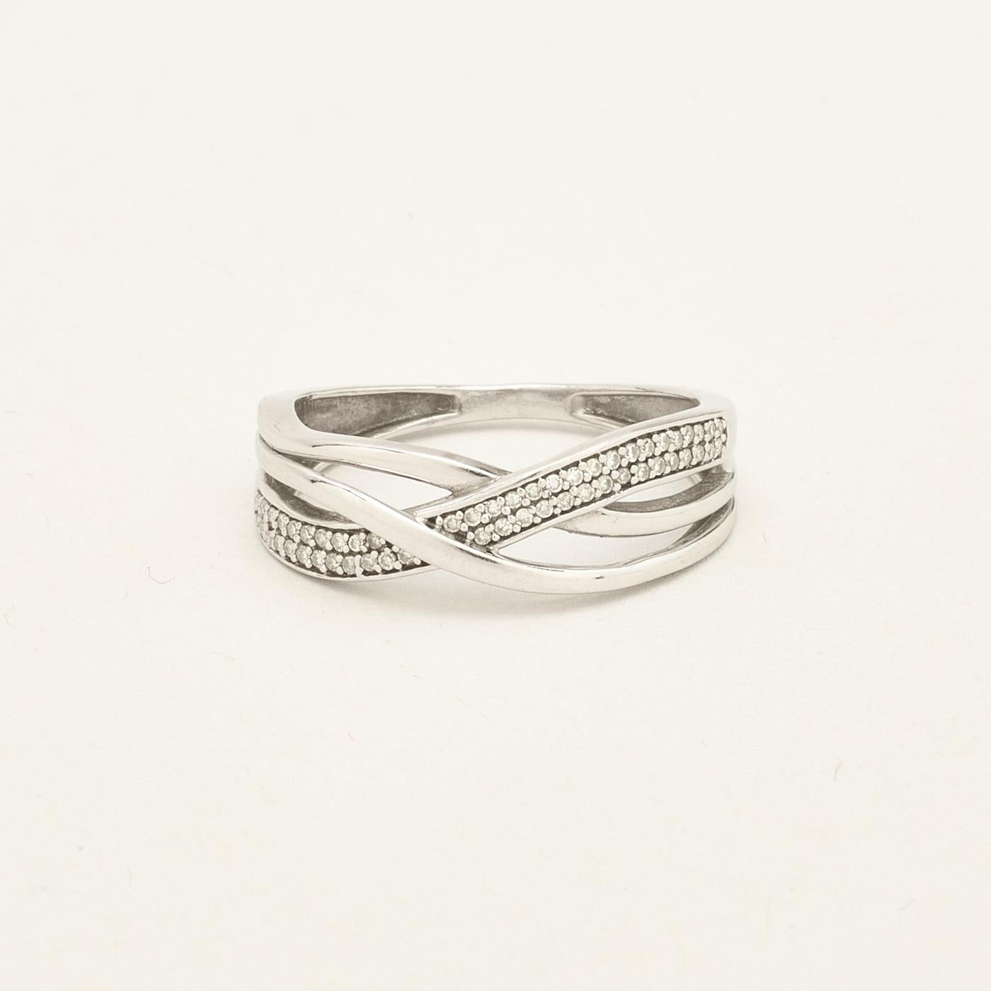 Pavé crossover ring, i 14 kt hvidguld med diamanter (0,15 ct), str 51-52
