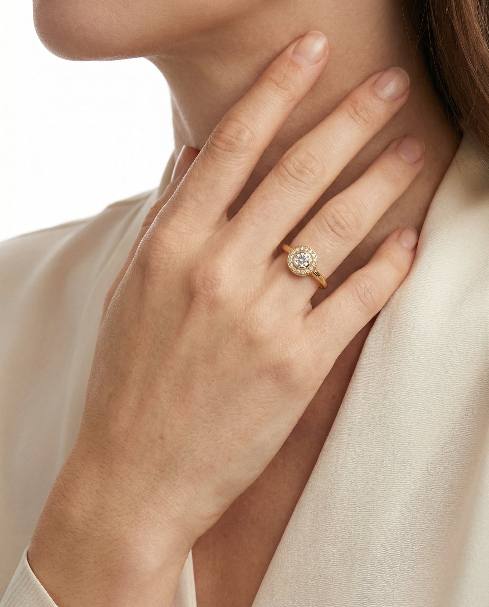Antik Haloring i 18K guld med diamanter (0,23 ct), Str. 52