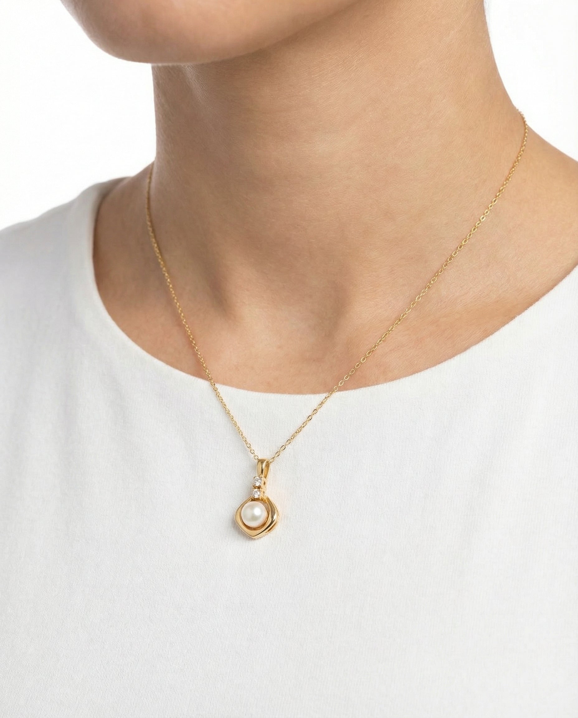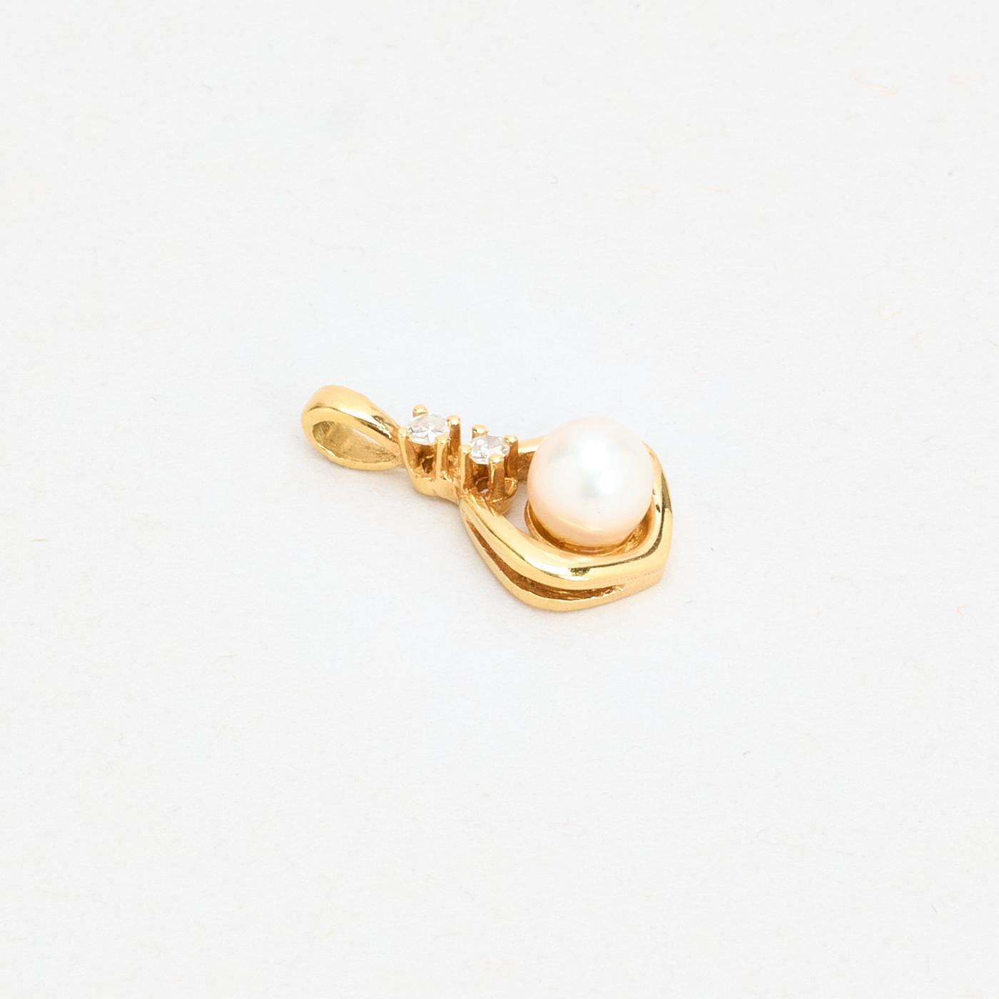 Dråbeformet Perlevedhæng i 14K guld med diamanter (0,05 ct), 1,7 cm