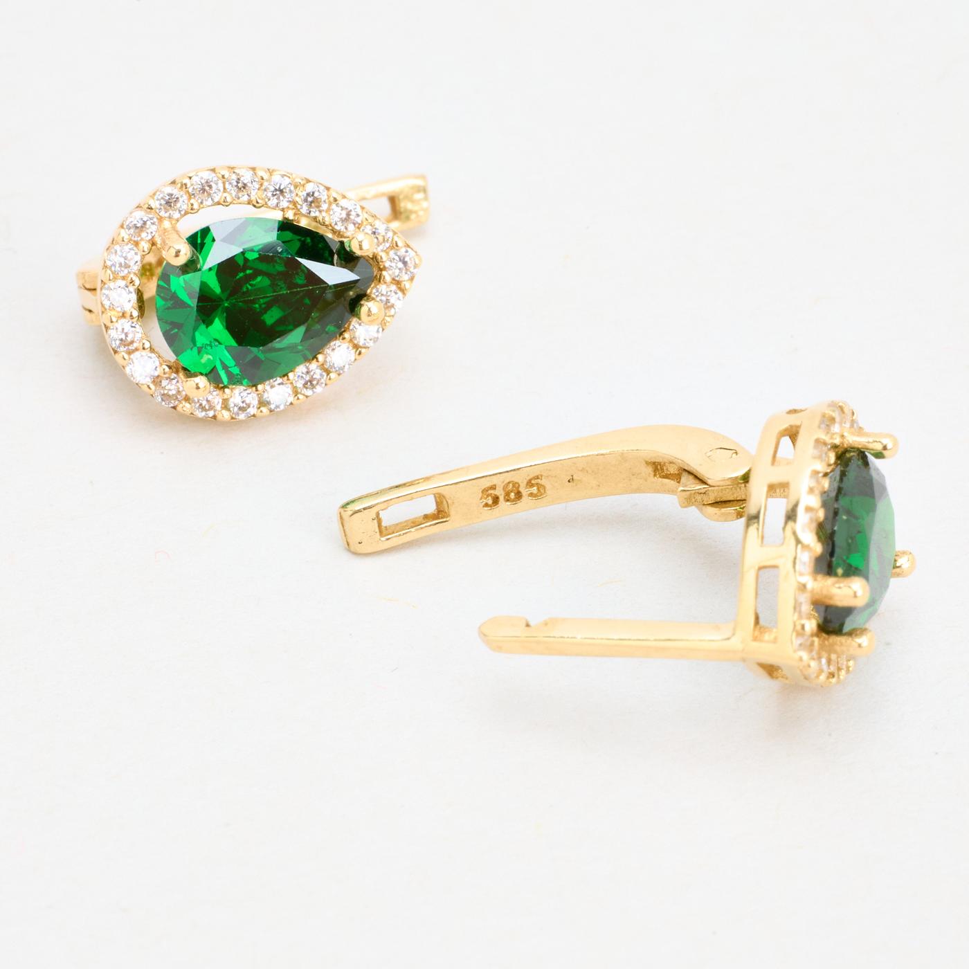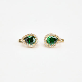 Dråbeformede Roset øreringe i 14K guld med zirkoner, 1.1 cm