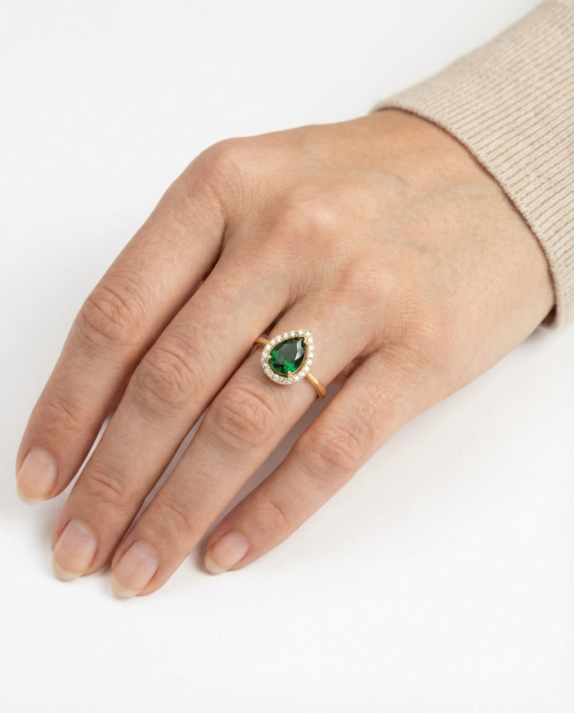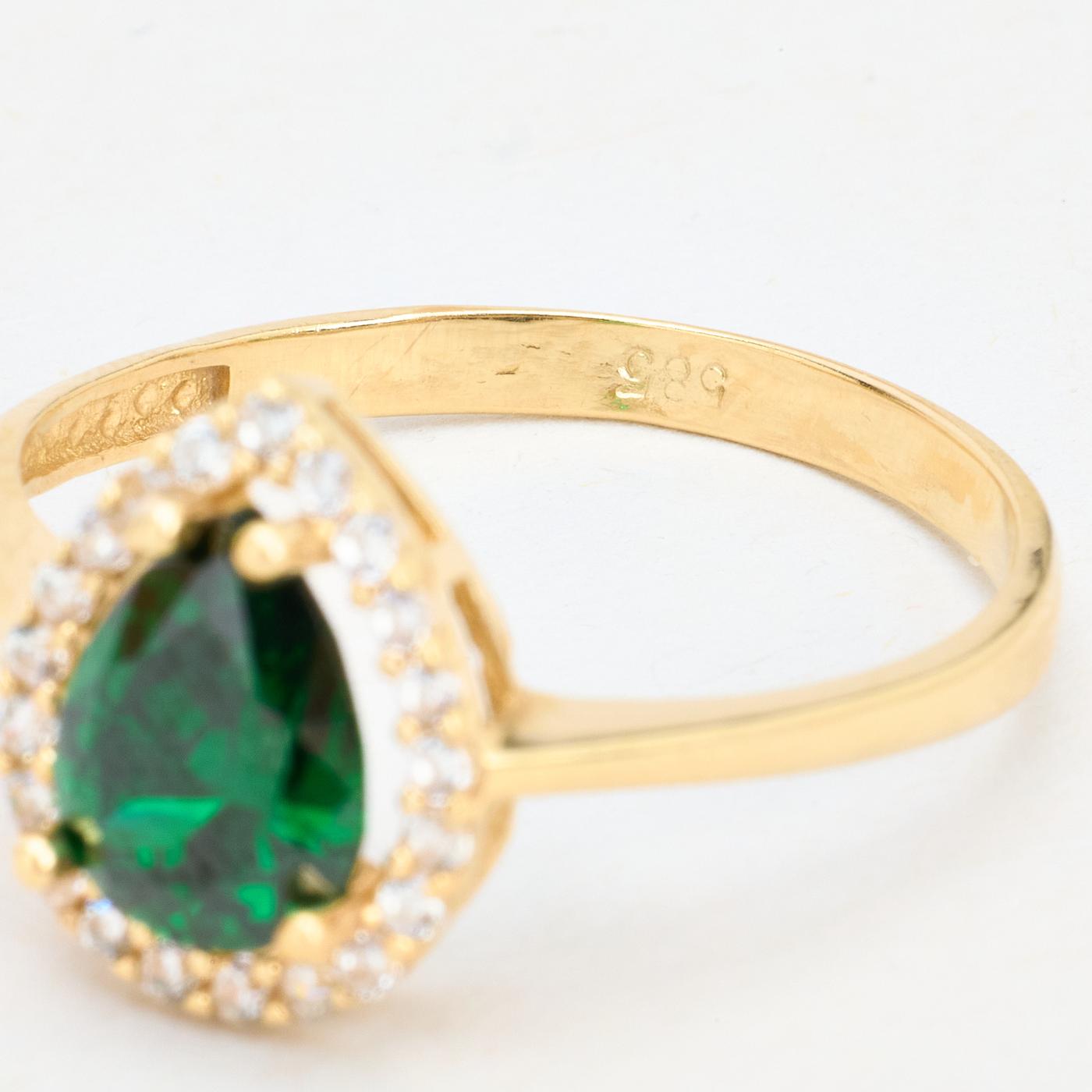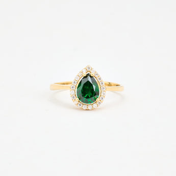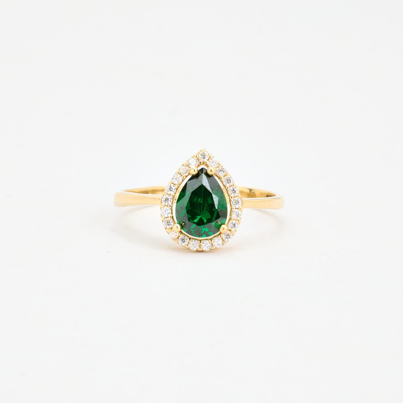 Dråbeformet Rosetring i 14K guld med zirkoner, Str. 57