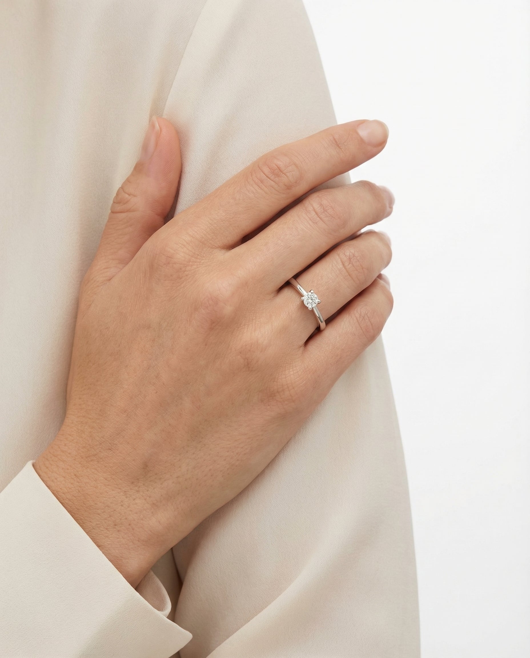 Klassisk Solitairering i 18K hvidguld med en diamant (0,20 ct), Str. 56