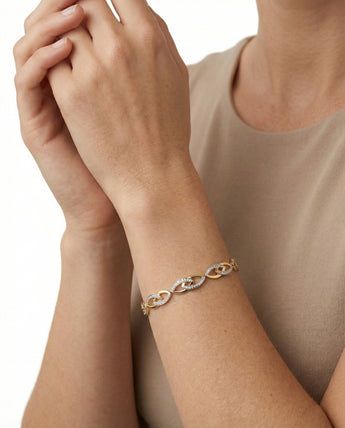 Model: Armbånd i 14K guld og hvidguld med diamanter (0.05 ct), 18.5 cm
