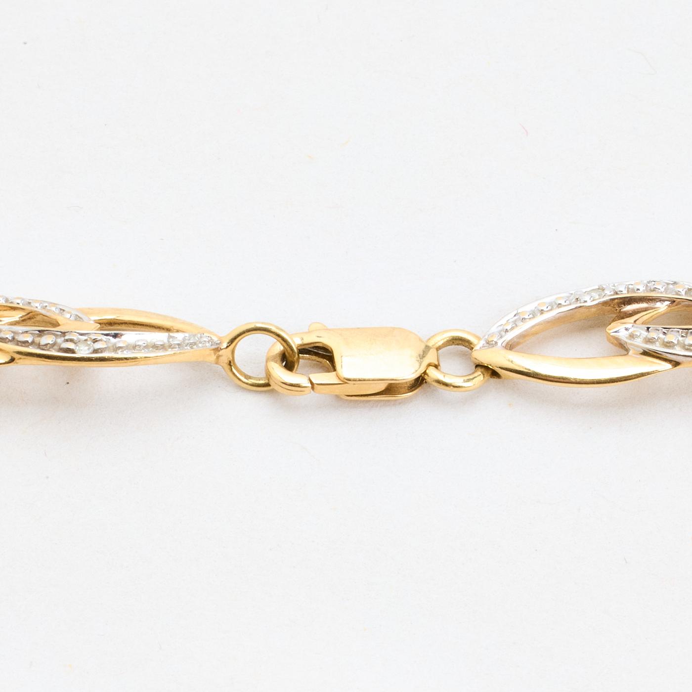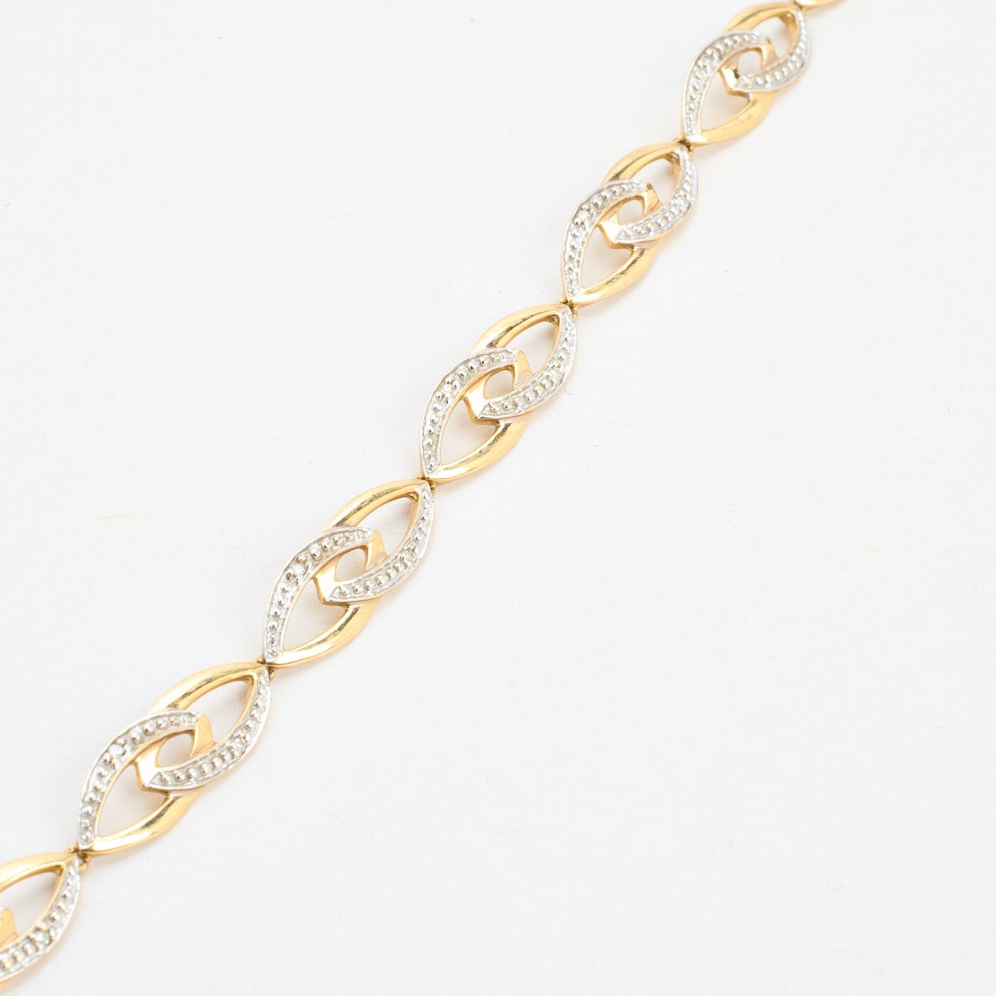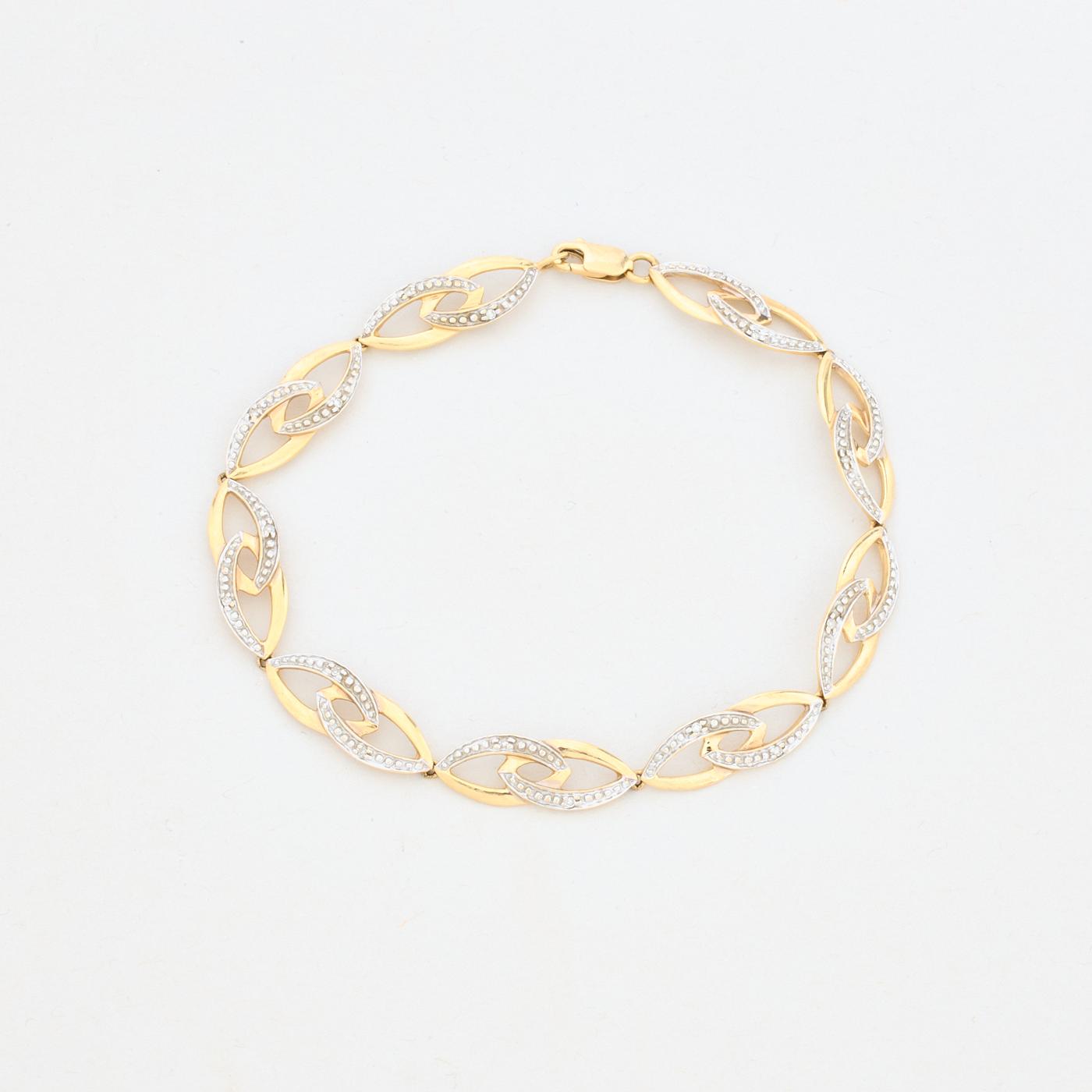 Armbånd i 14K guld og hvidguld med diamanter (0.05 ct), 18.5 cm