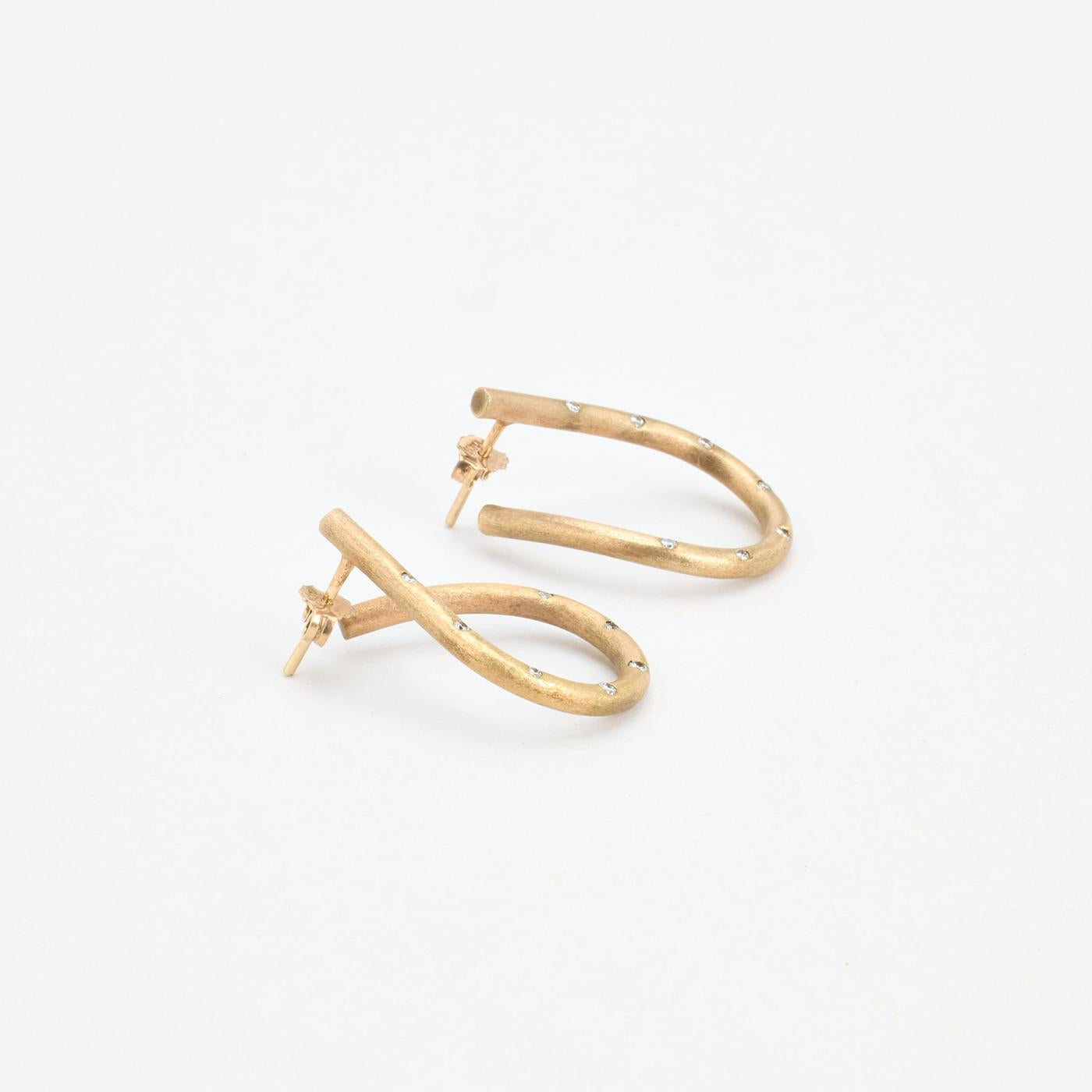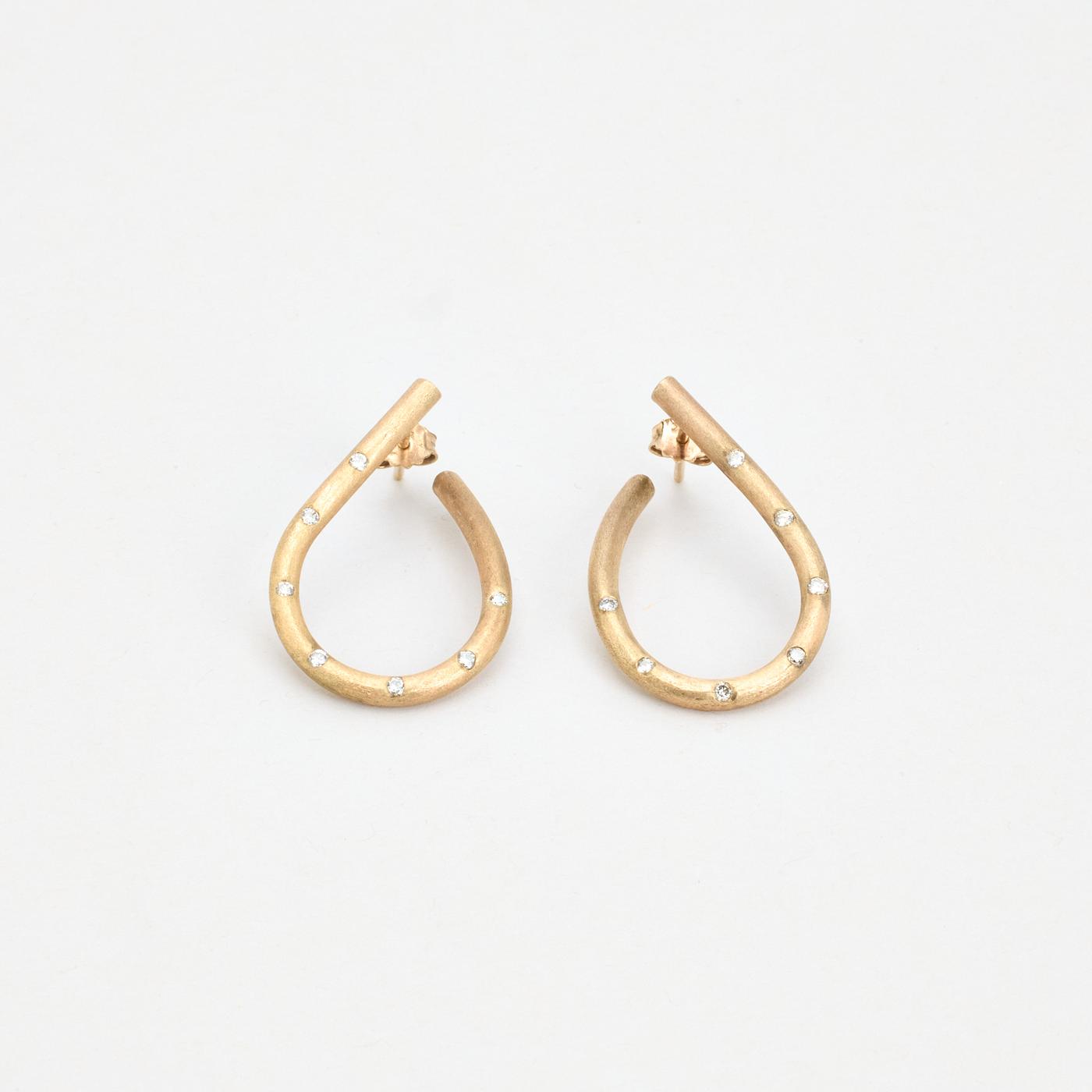 Dråbeformede Ørehængere i 14K guld med diamanter (0,14 ct), 3 cm
