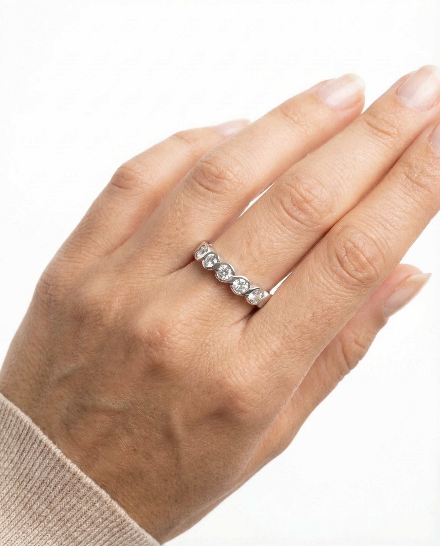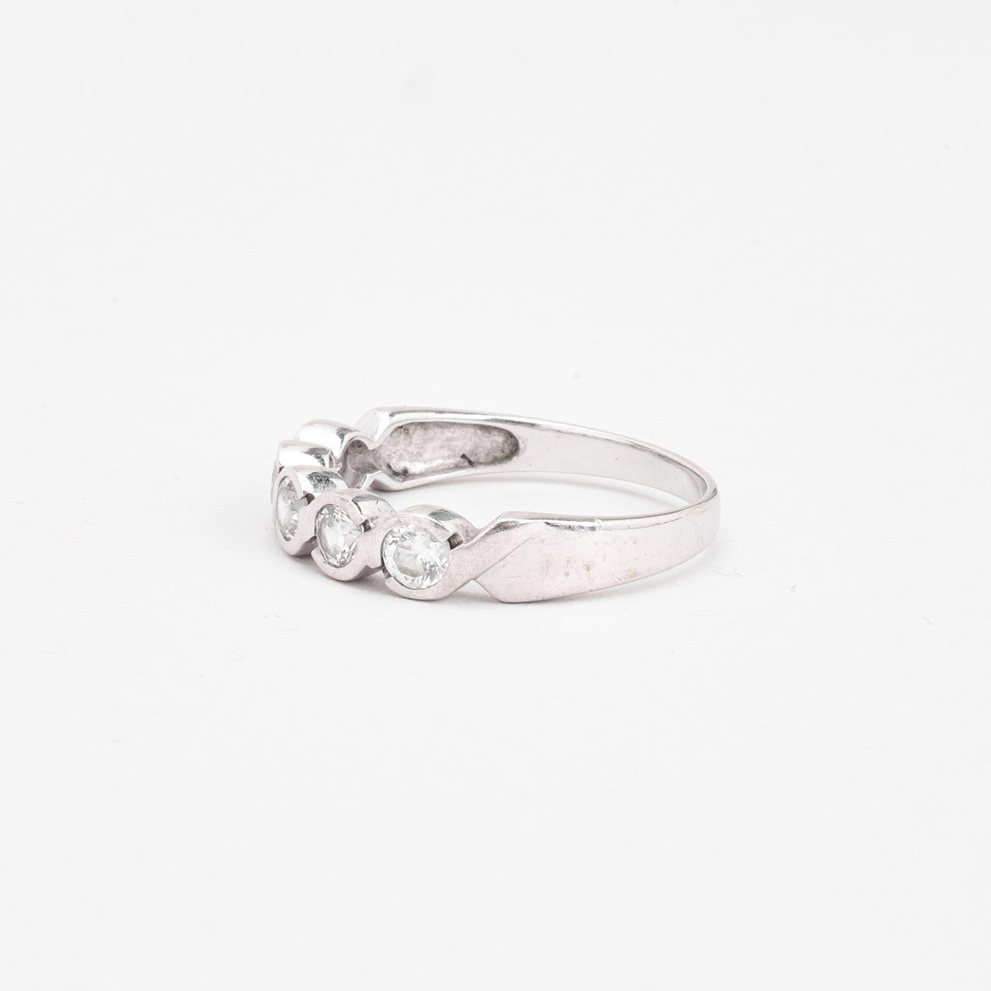 Snoet Alliancering i 14K hvidguld med zirkoner, str. 54