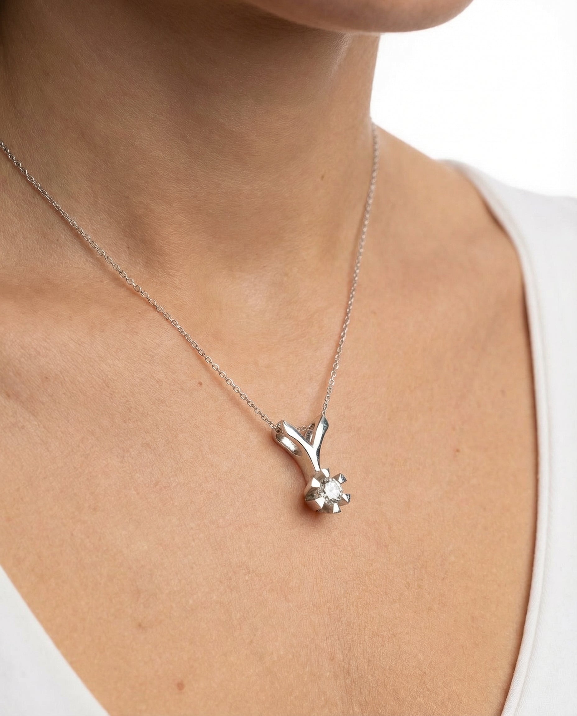 Klassisk Solitaire vedhæng i 14K hvidguld med en diamant (0,15 ct), 1.2 cm