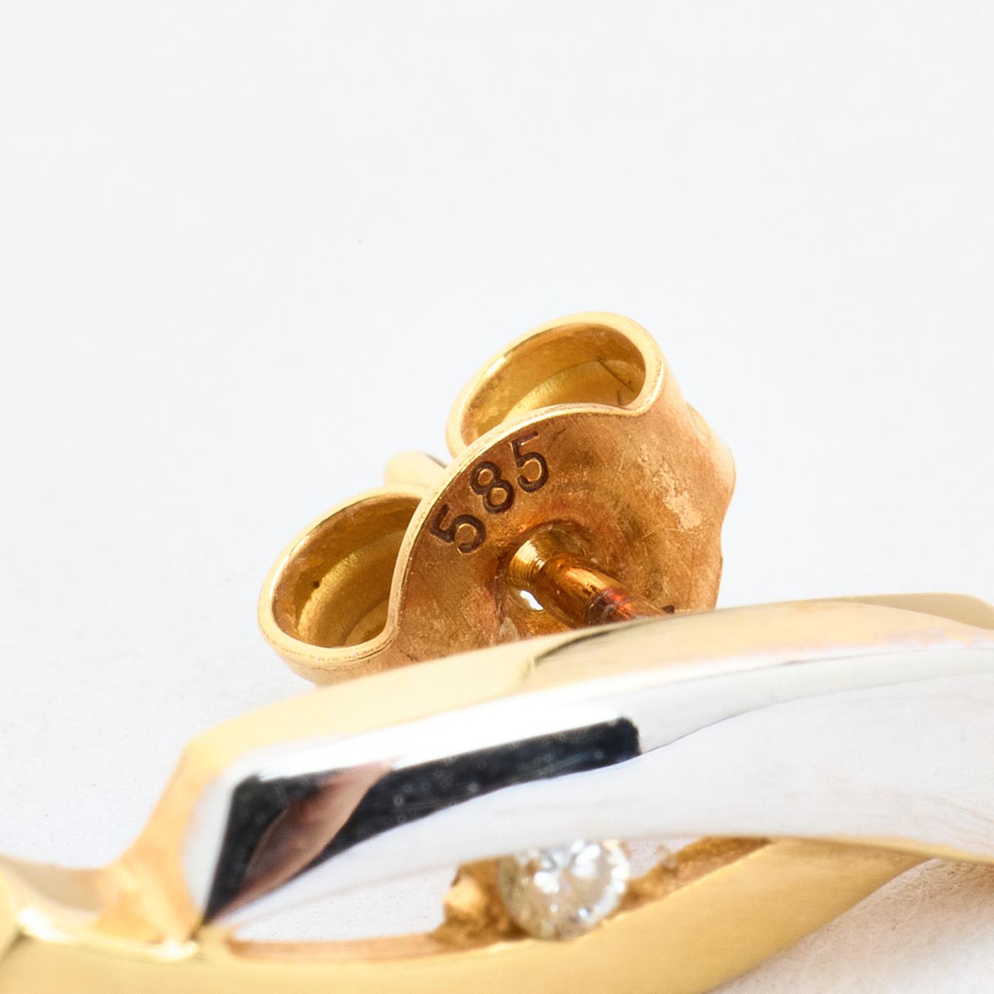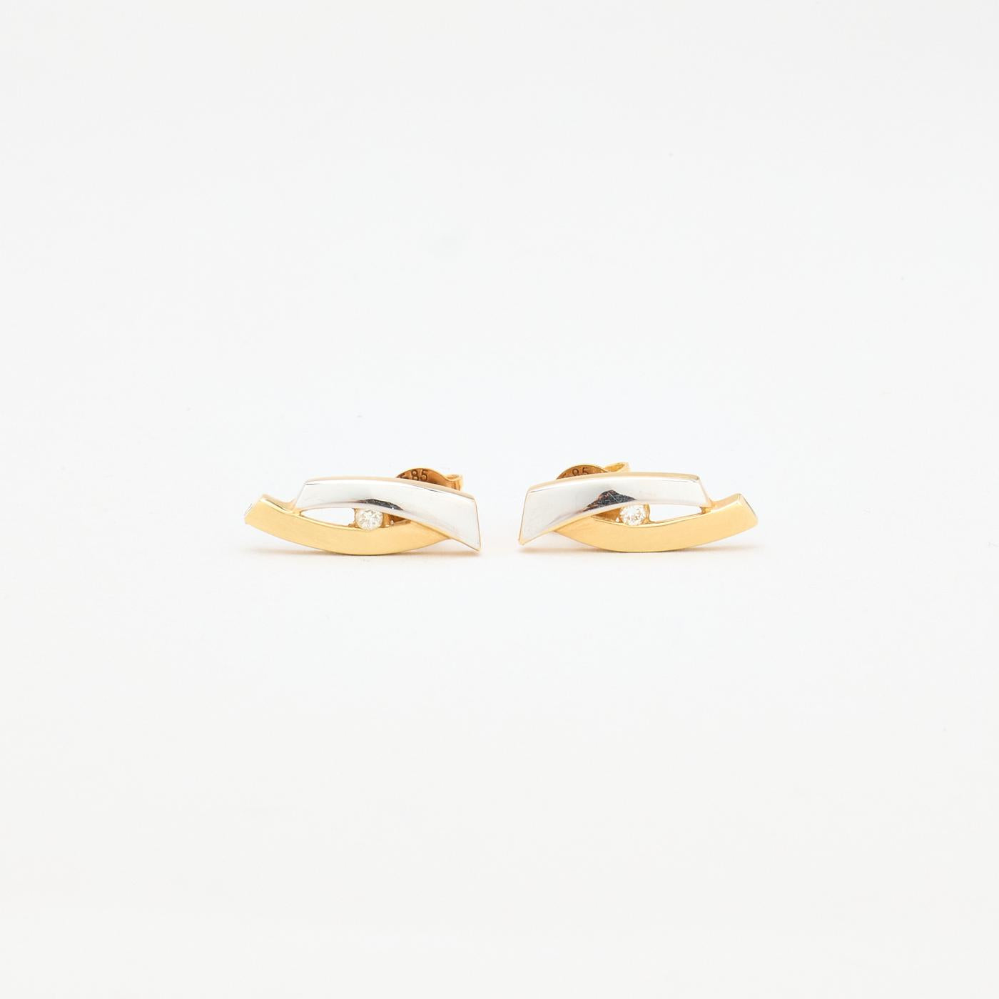 Crossover Ørestikker i 14K guld og hvidguld med diamanter (0,03 ct), 1.5 cm