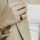 Signet ring i 9K guld med syntetisk safir, Str. 48