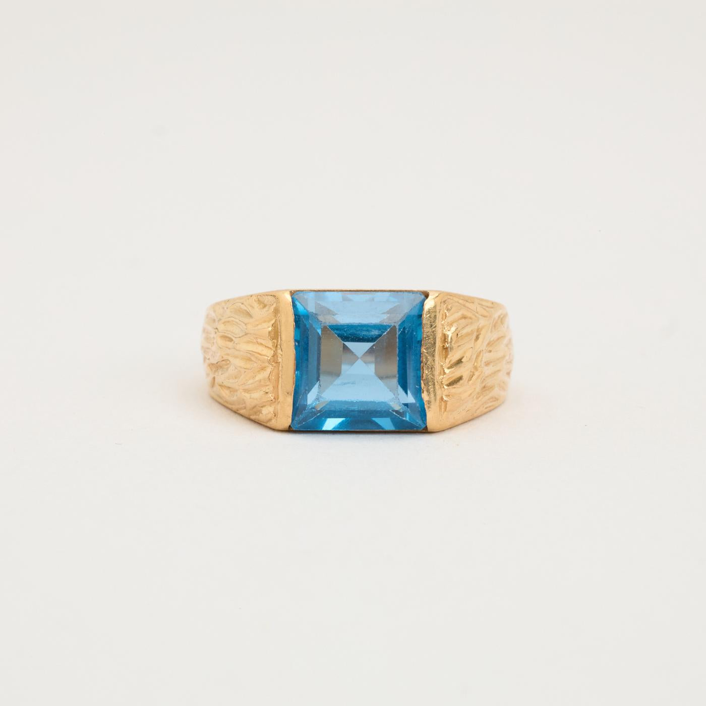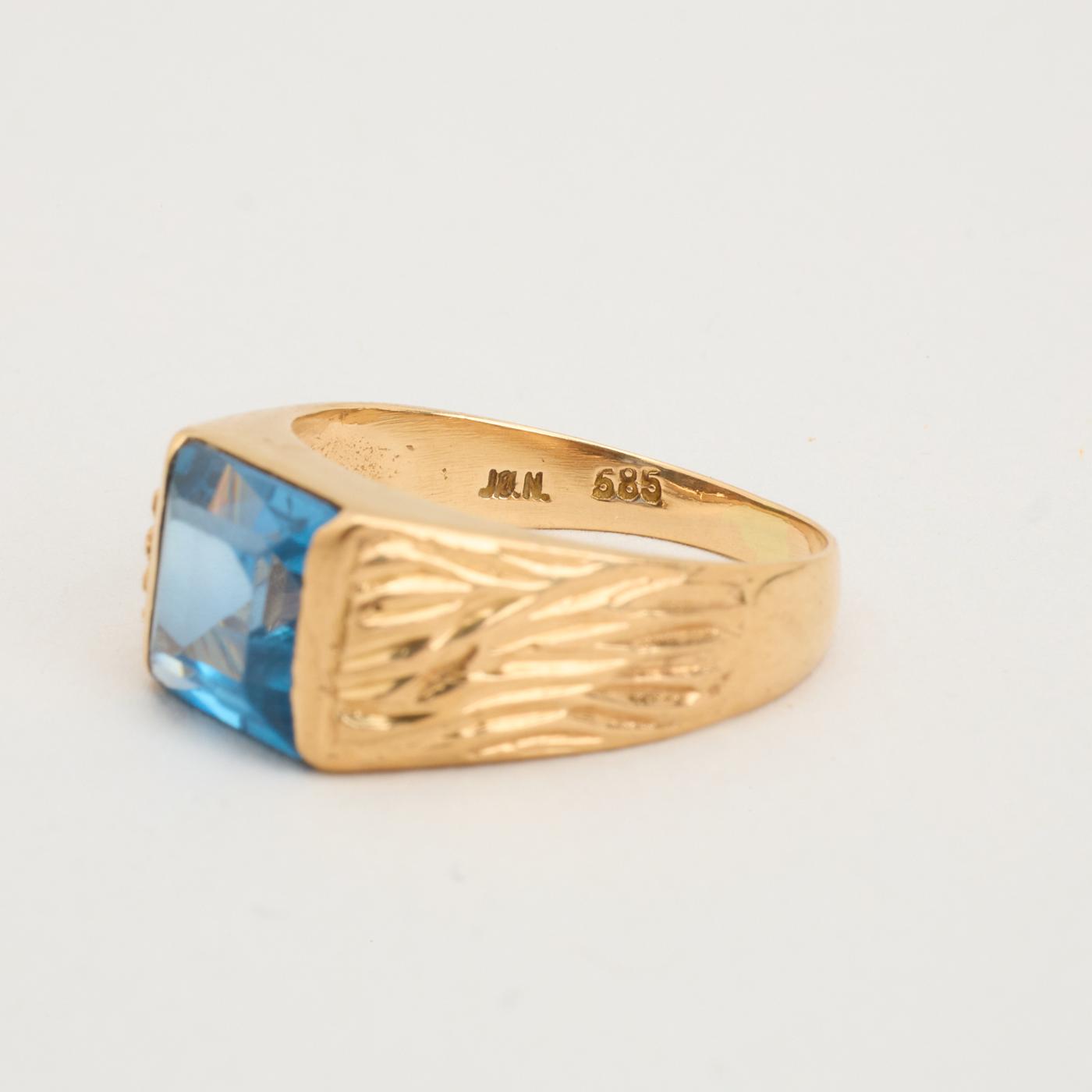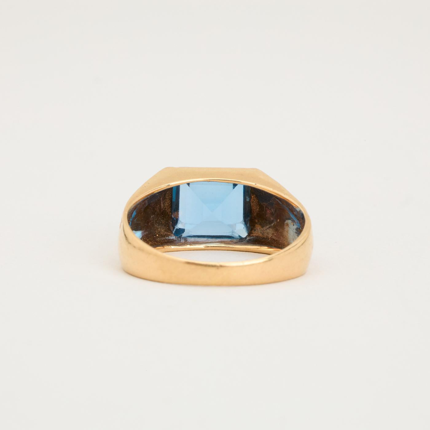 Signetring i 14K guld, med syntetisk spinel i bezel-fatning, Str. 52