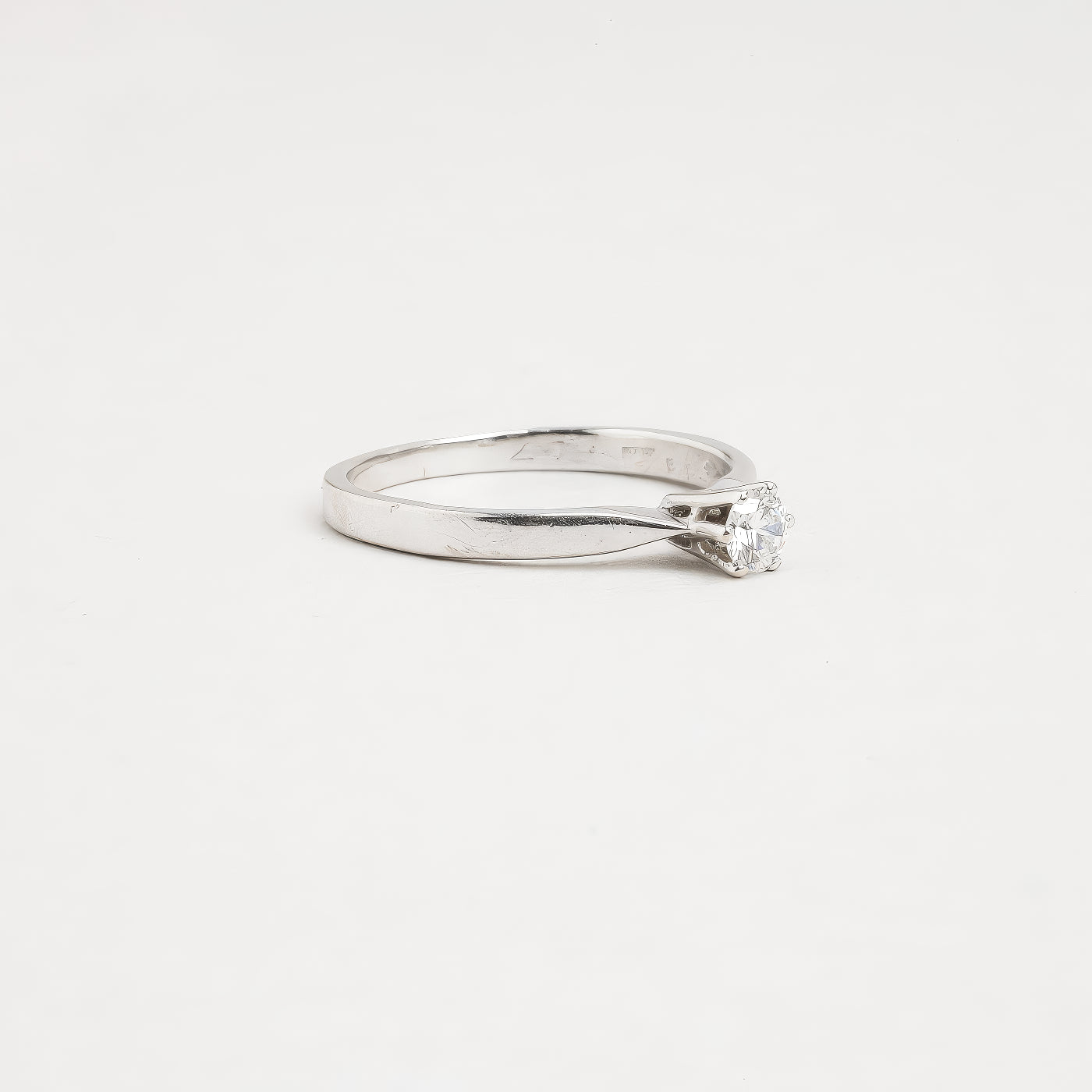 Solitairering med diamant (0.17 ct) i 14K hvidguld, str. 51 - 52
