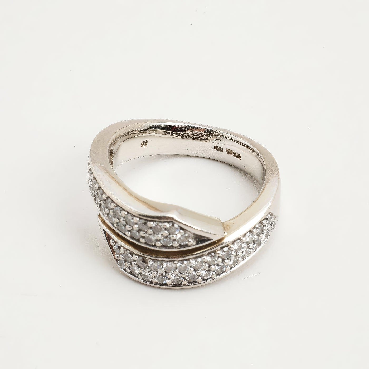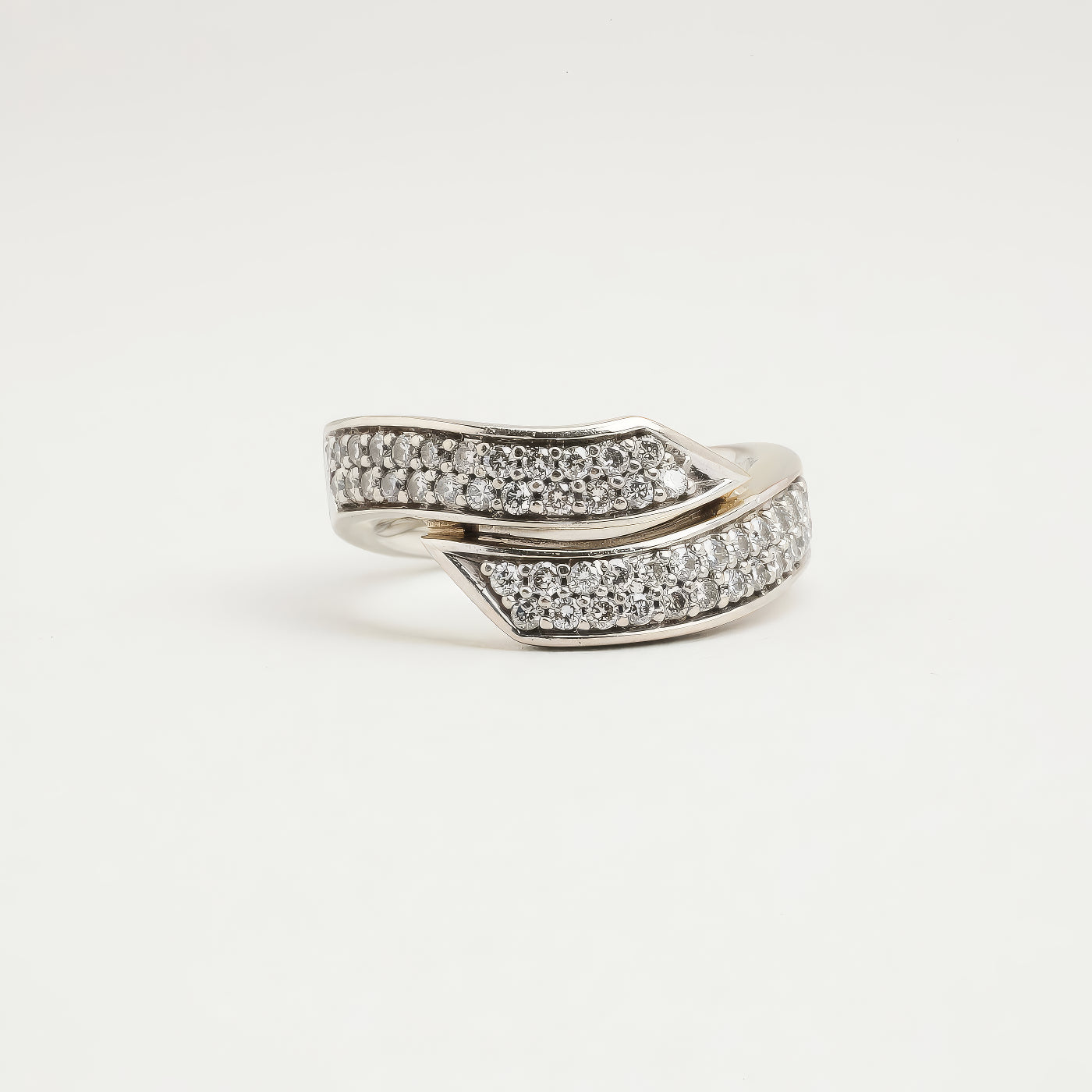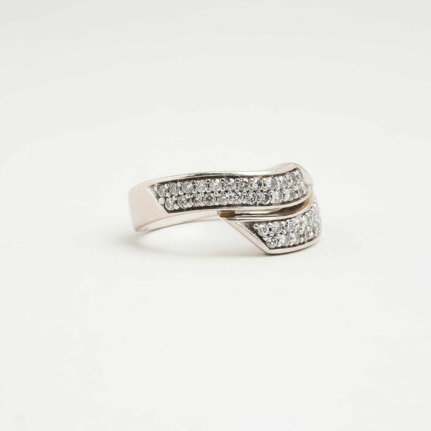 Pavé crossover ring i 14K hvidguld, med diamanter (0,25 ct), Str. 52