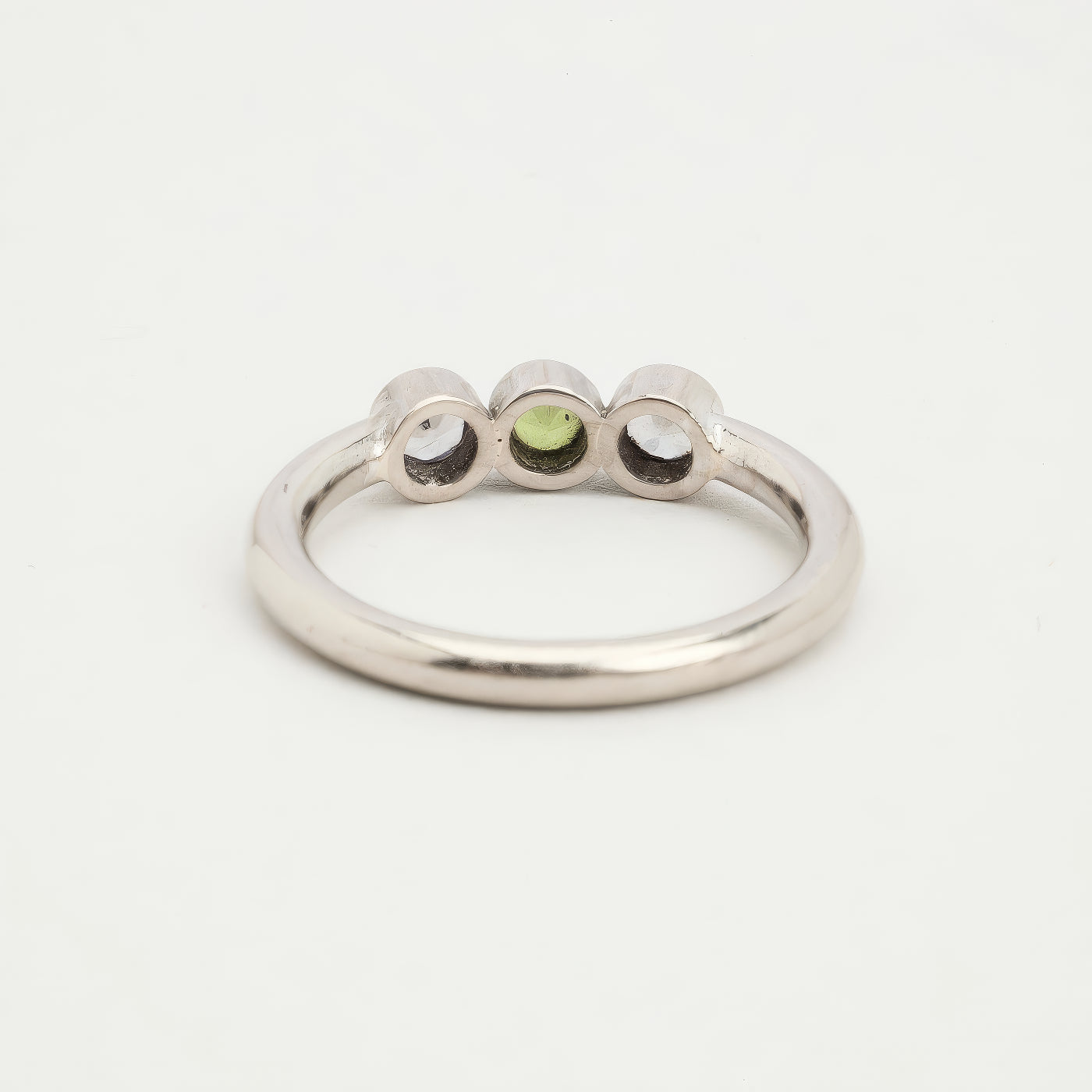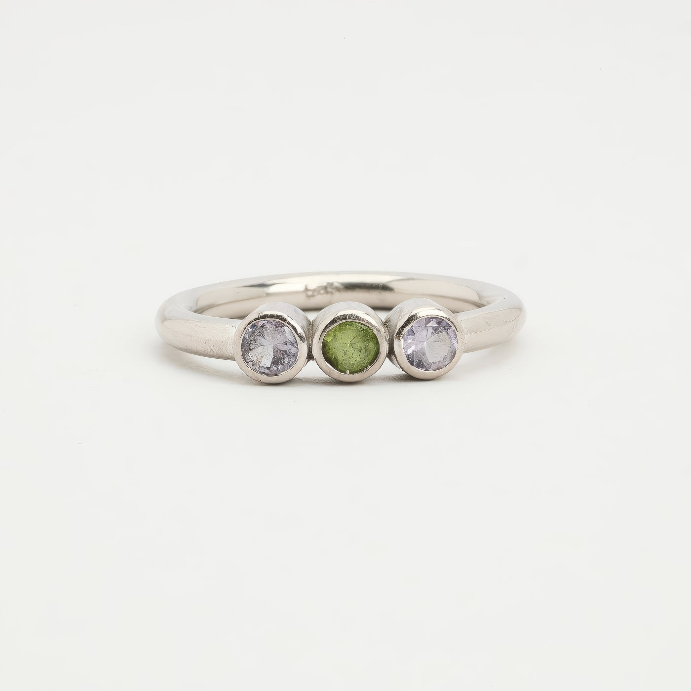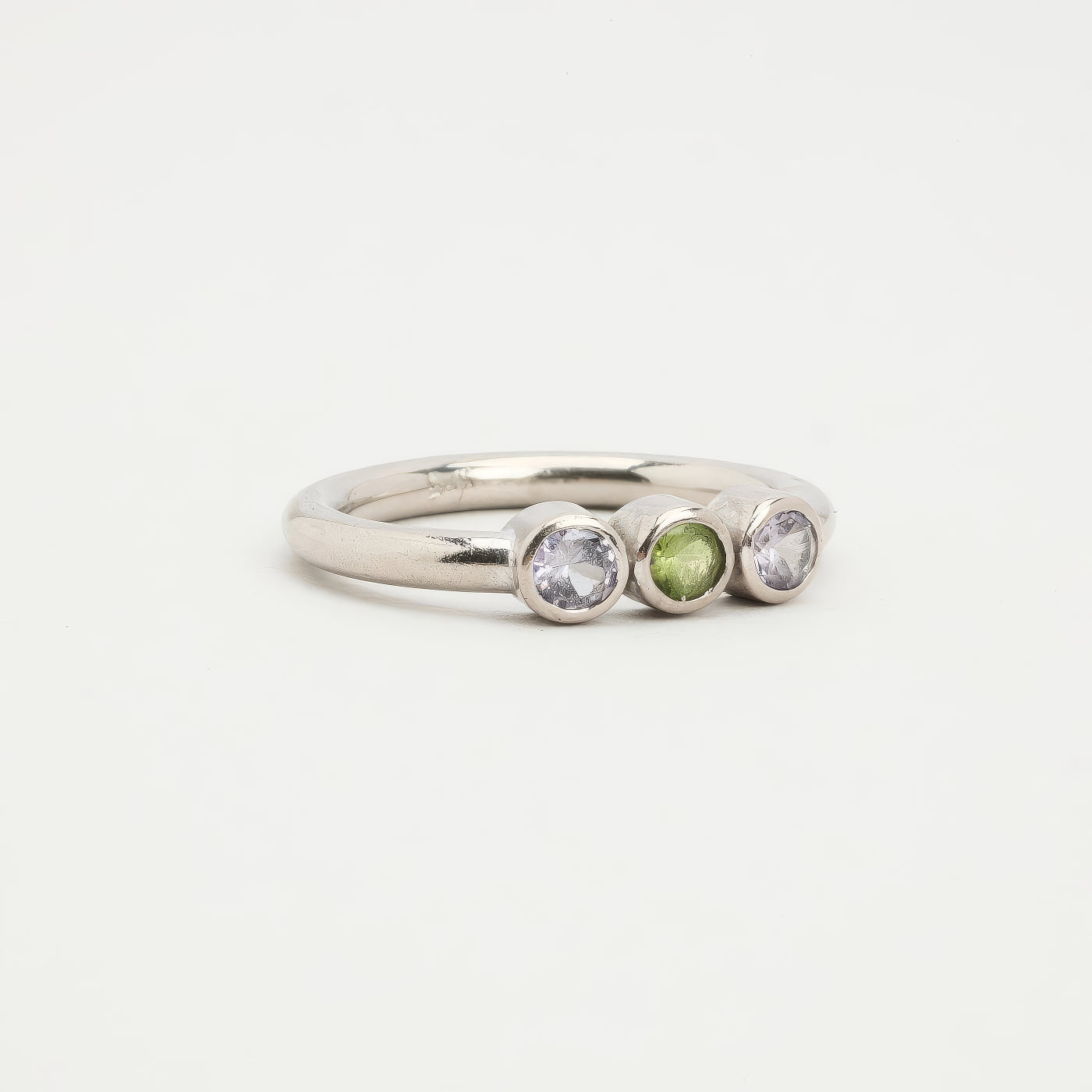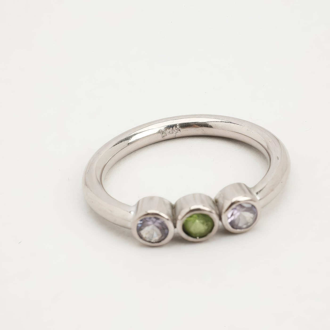 Tre stens ring i 14K hvidguld med peridot og ametyst, Str. 51