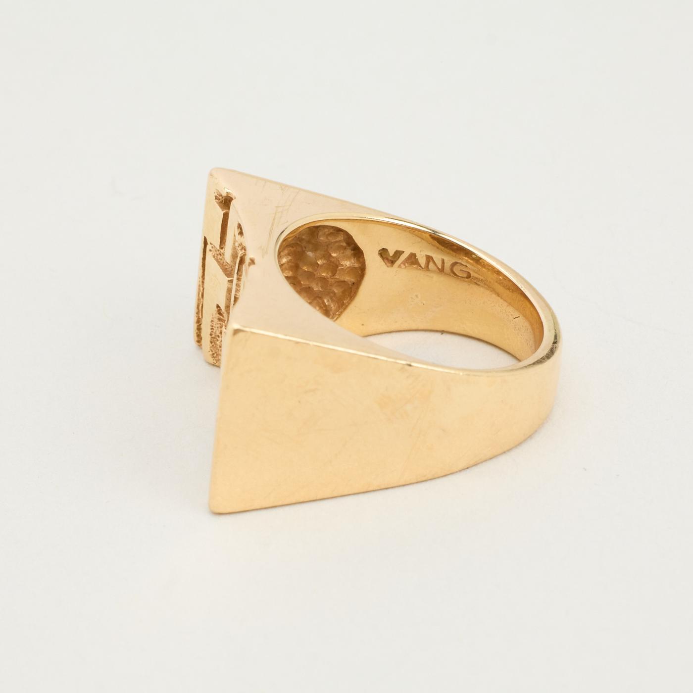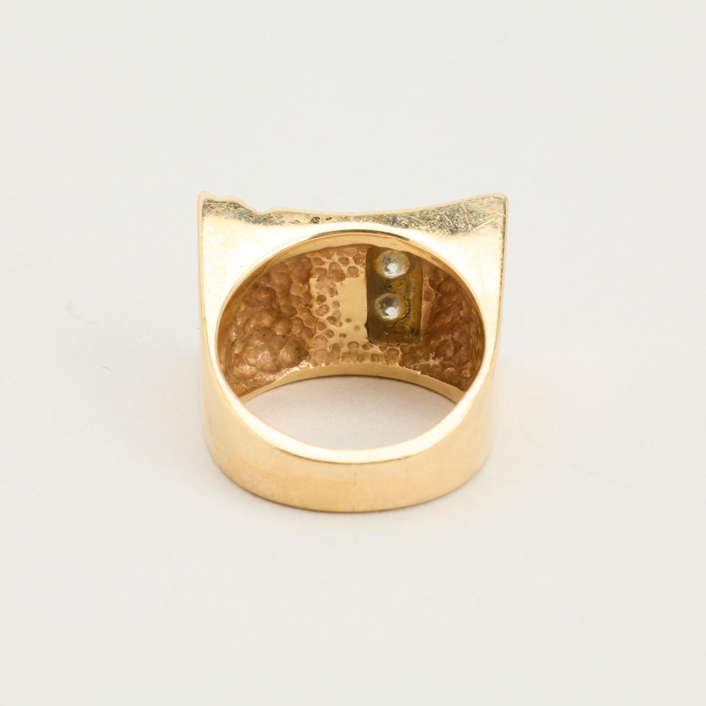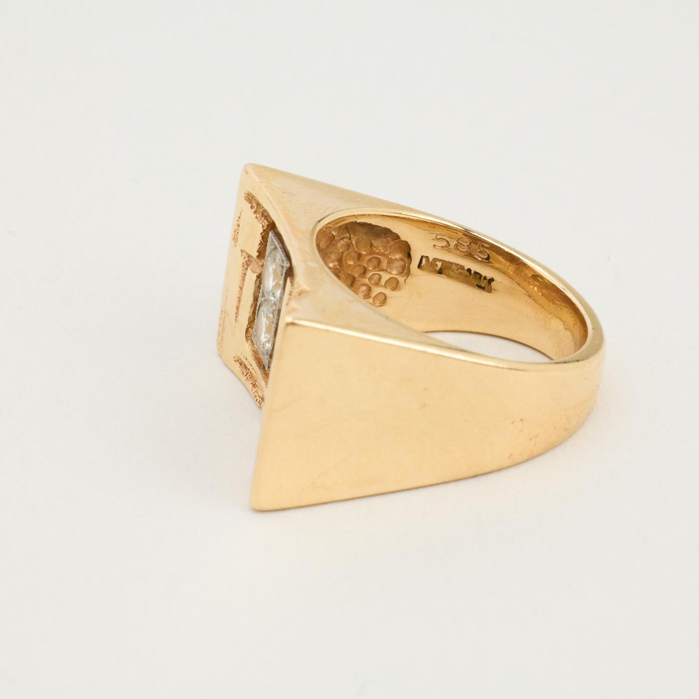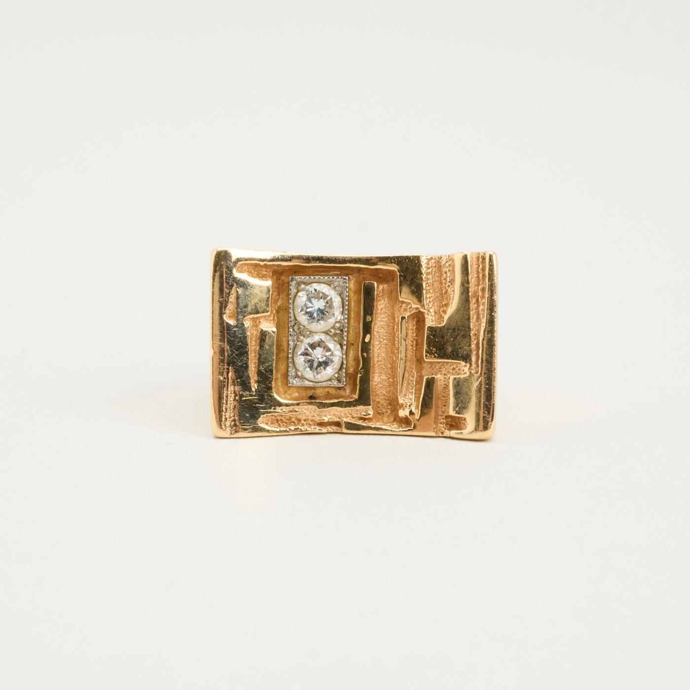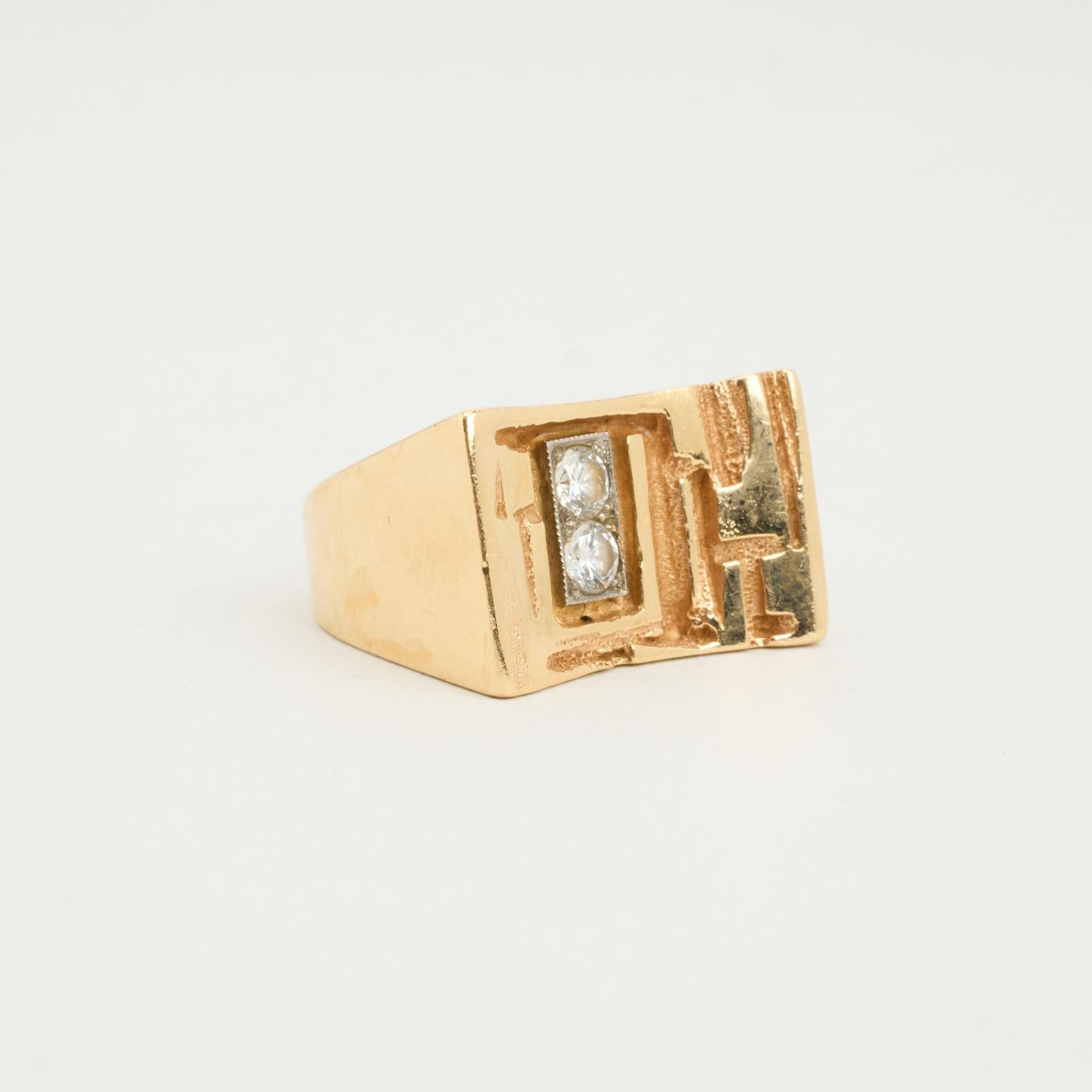 Signetring i 14K guld med to diamanter (0.16 ct), Str. 45