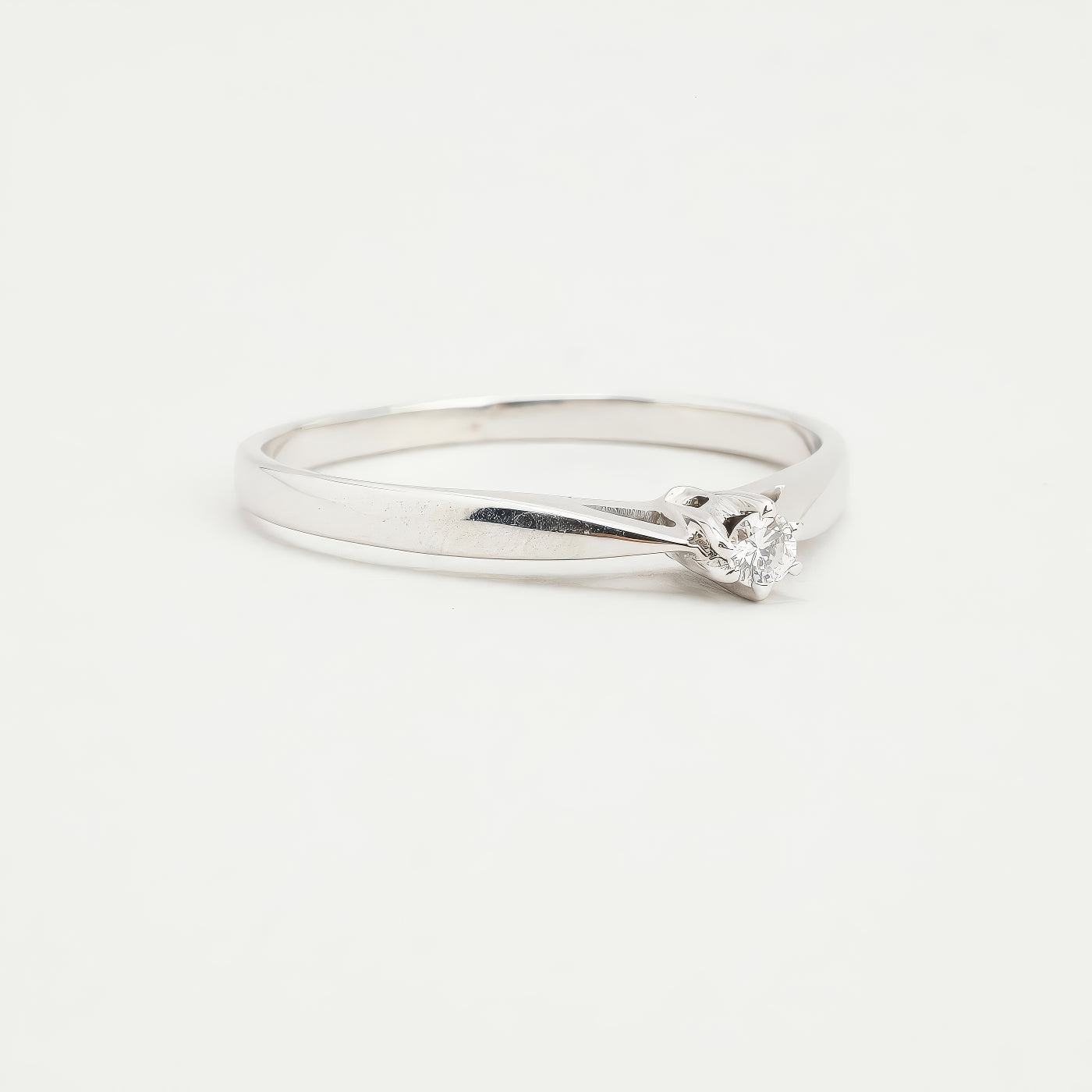 Solitairering med diamant (0.03 ct) i 14K hvidguld, str. 57