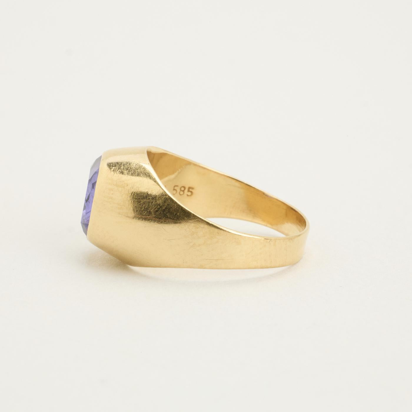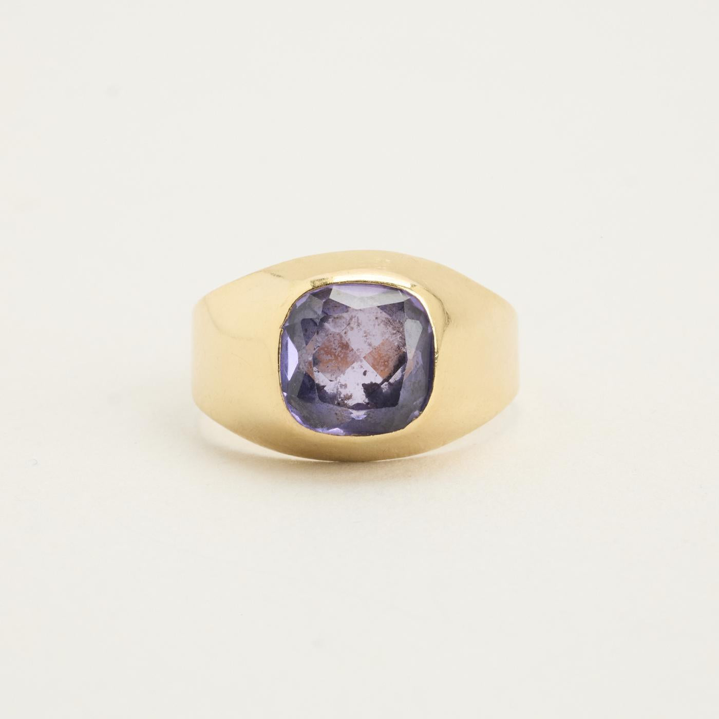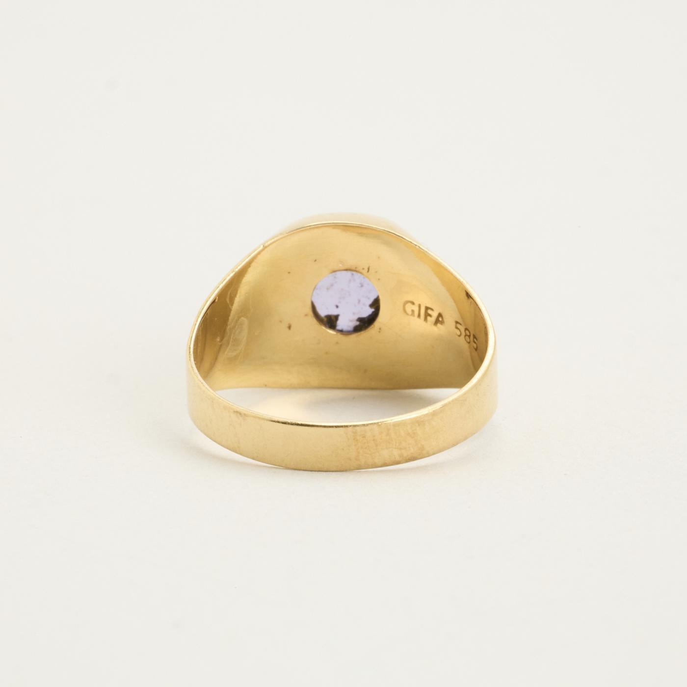 Signet ring i 14K guld med en syntetisk safir, Str. 53