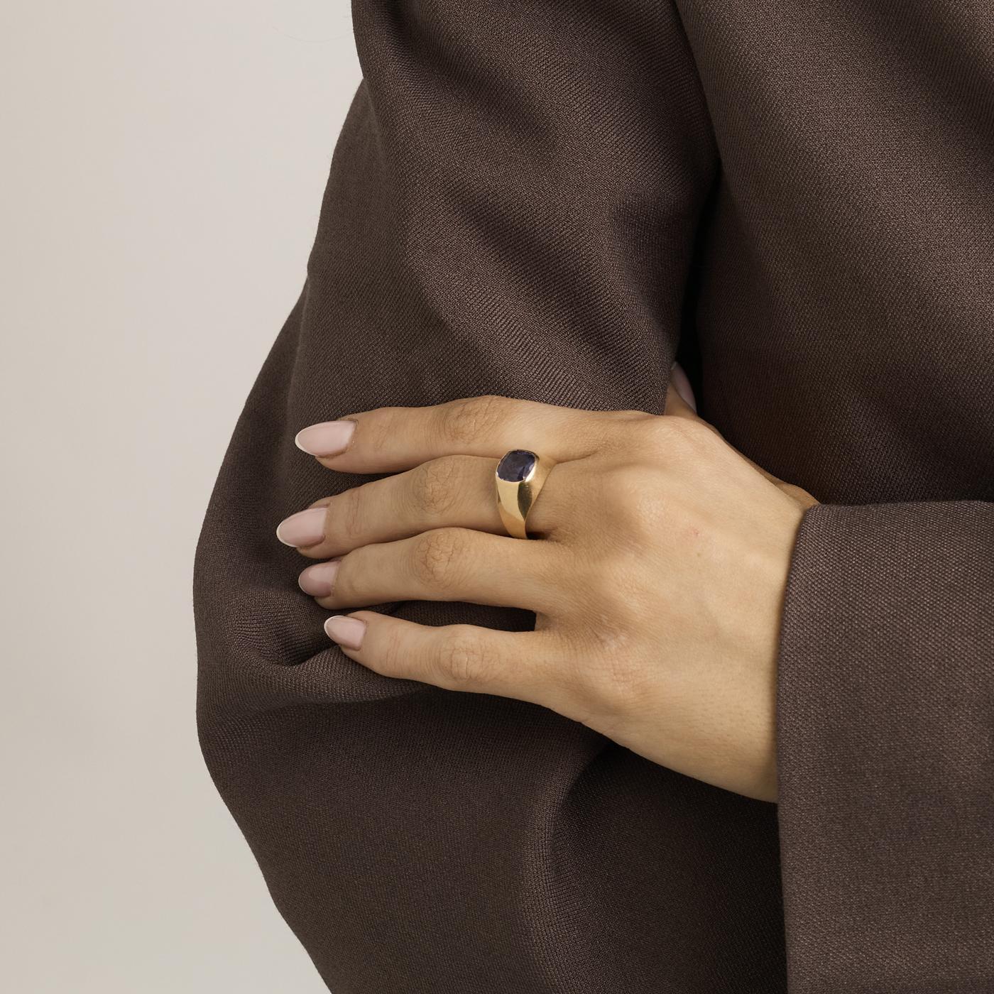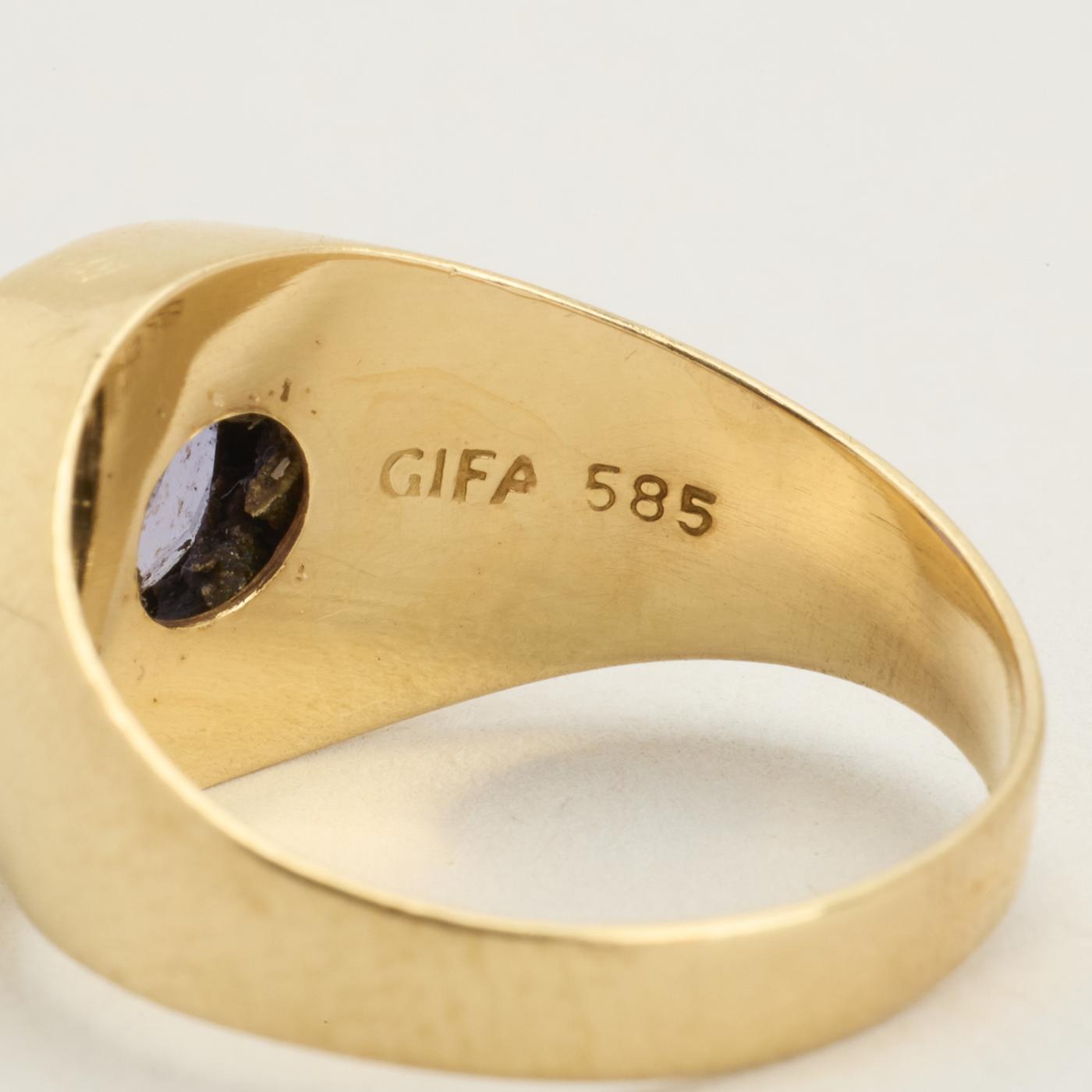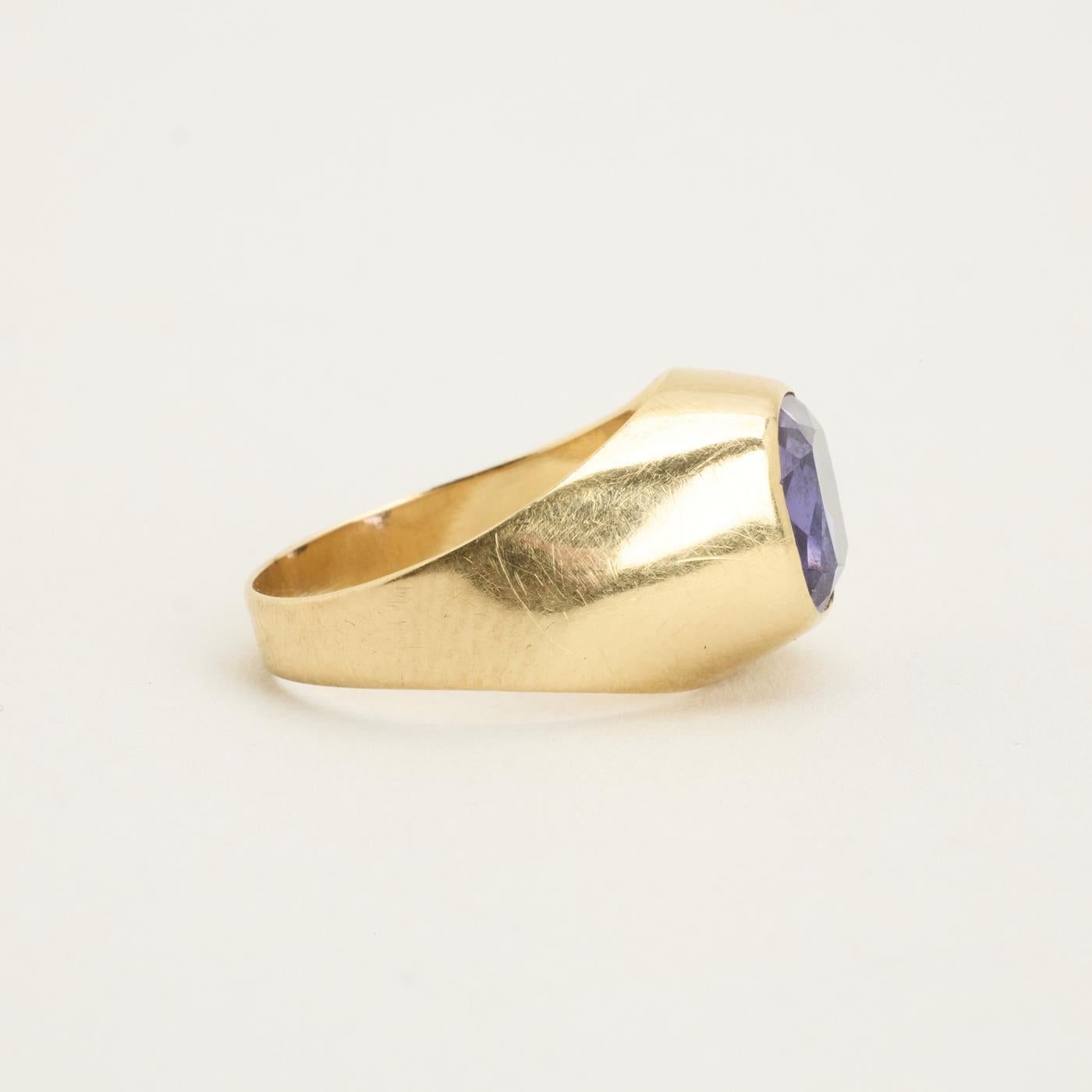 Signet ring i 14K guld med en syntetisk safir, Str. 53
