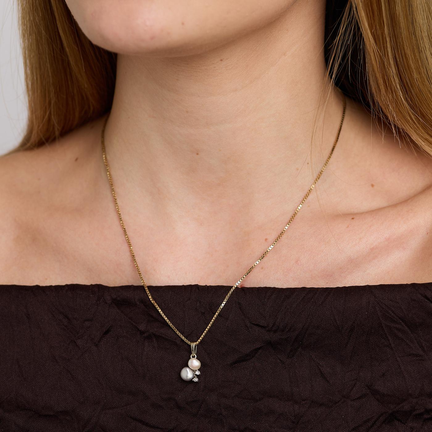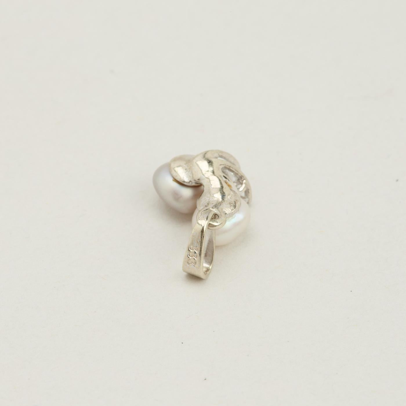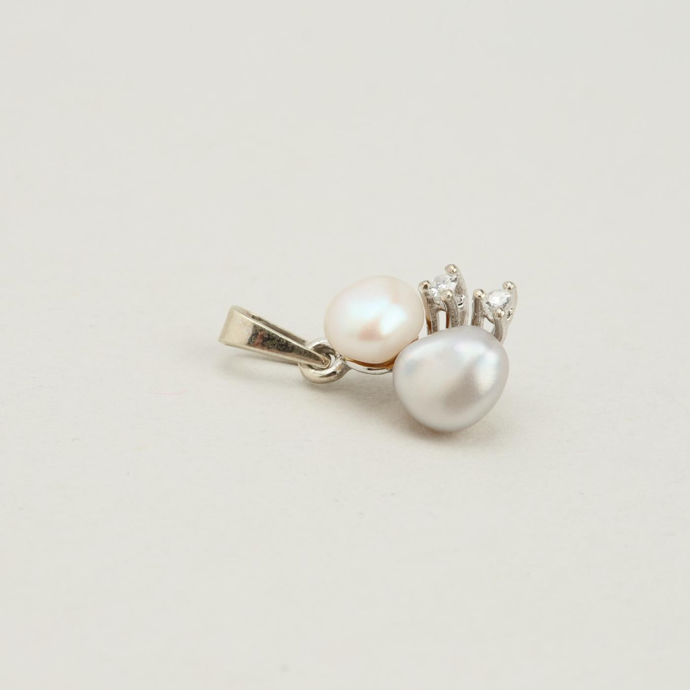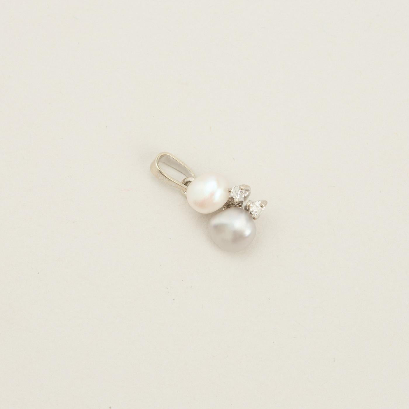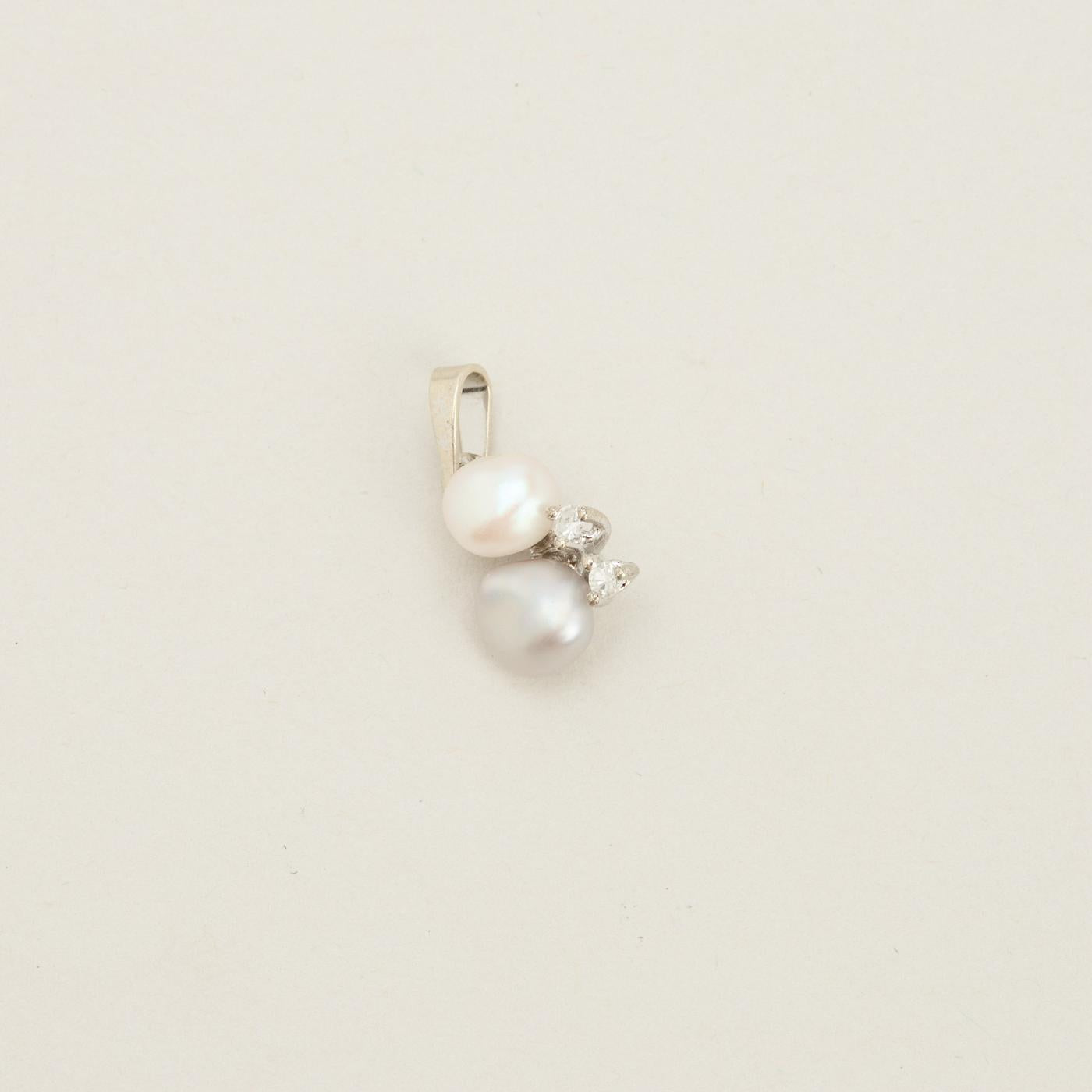 Vedhæng med diamanter (0.04 ct) i 8K hvidguld med en perle, 2 cm, 0.4 g