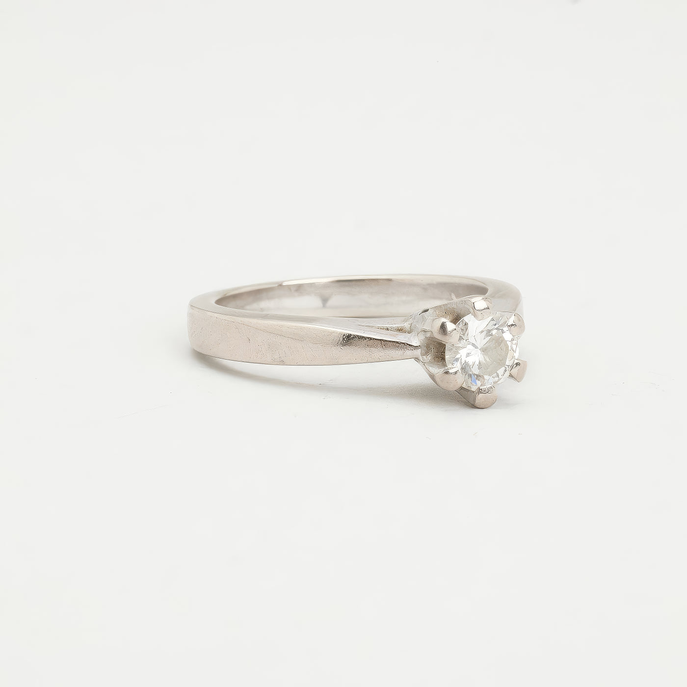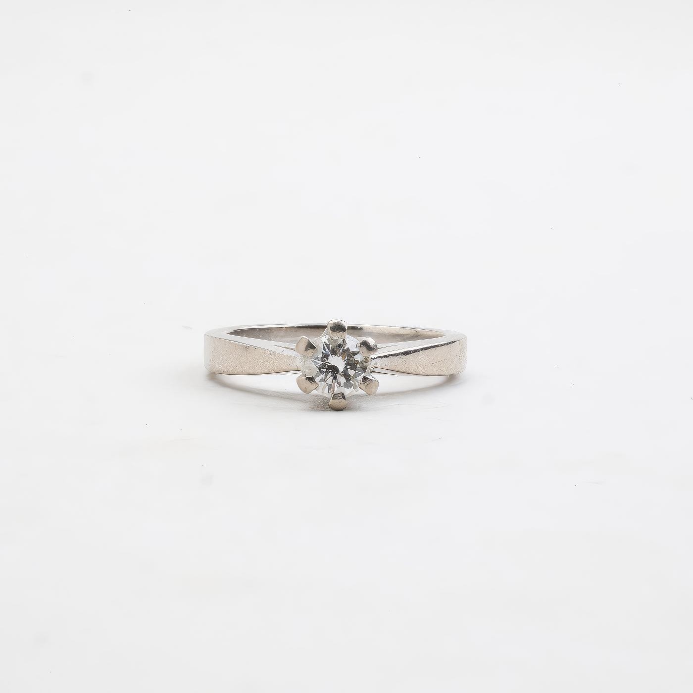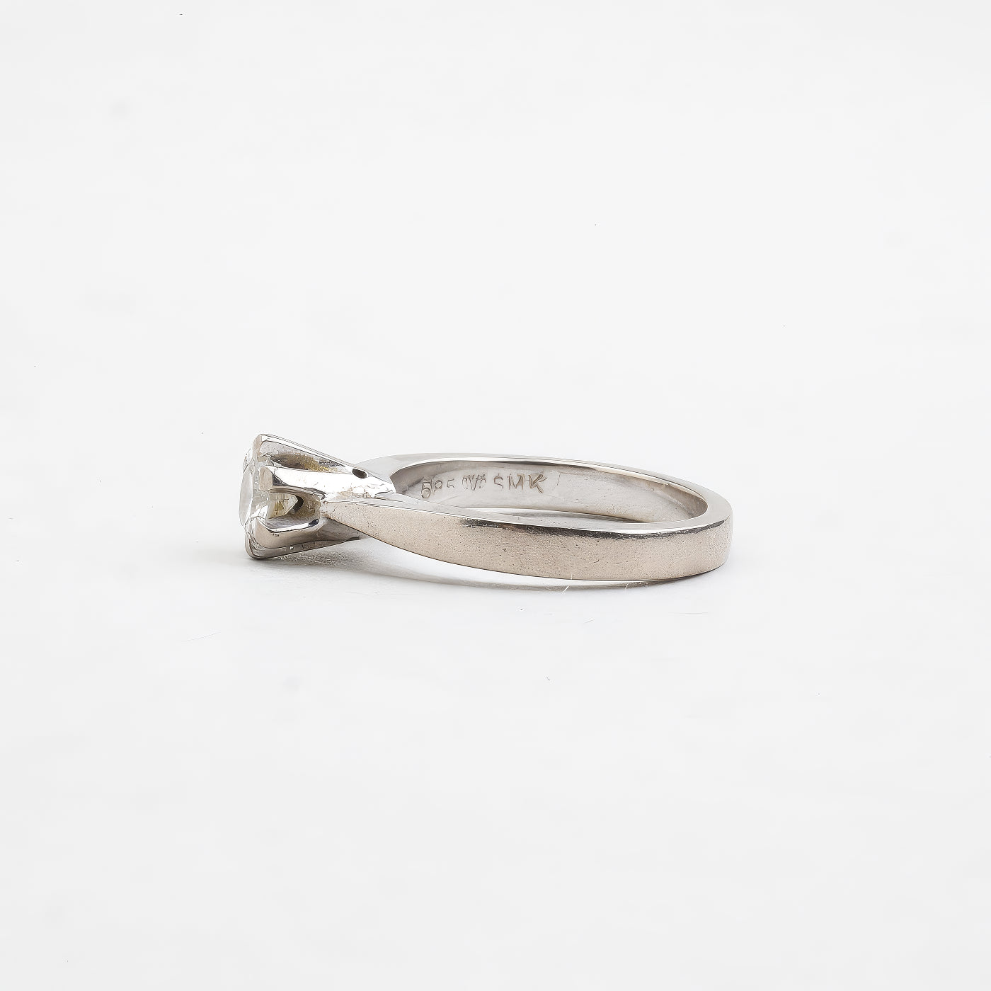 Solitairering med diamant (0.35 ct) i 14K hvidguld, str. 49