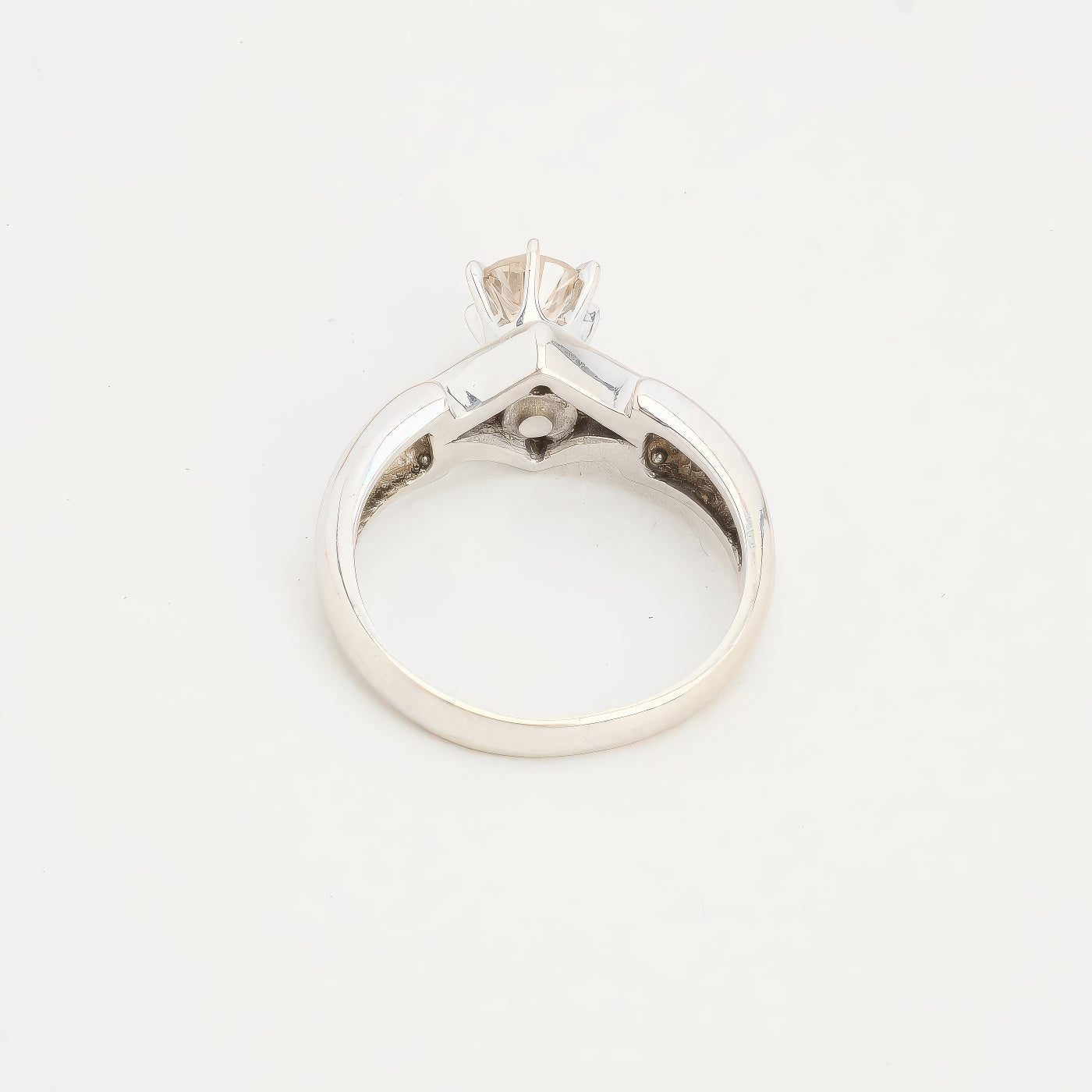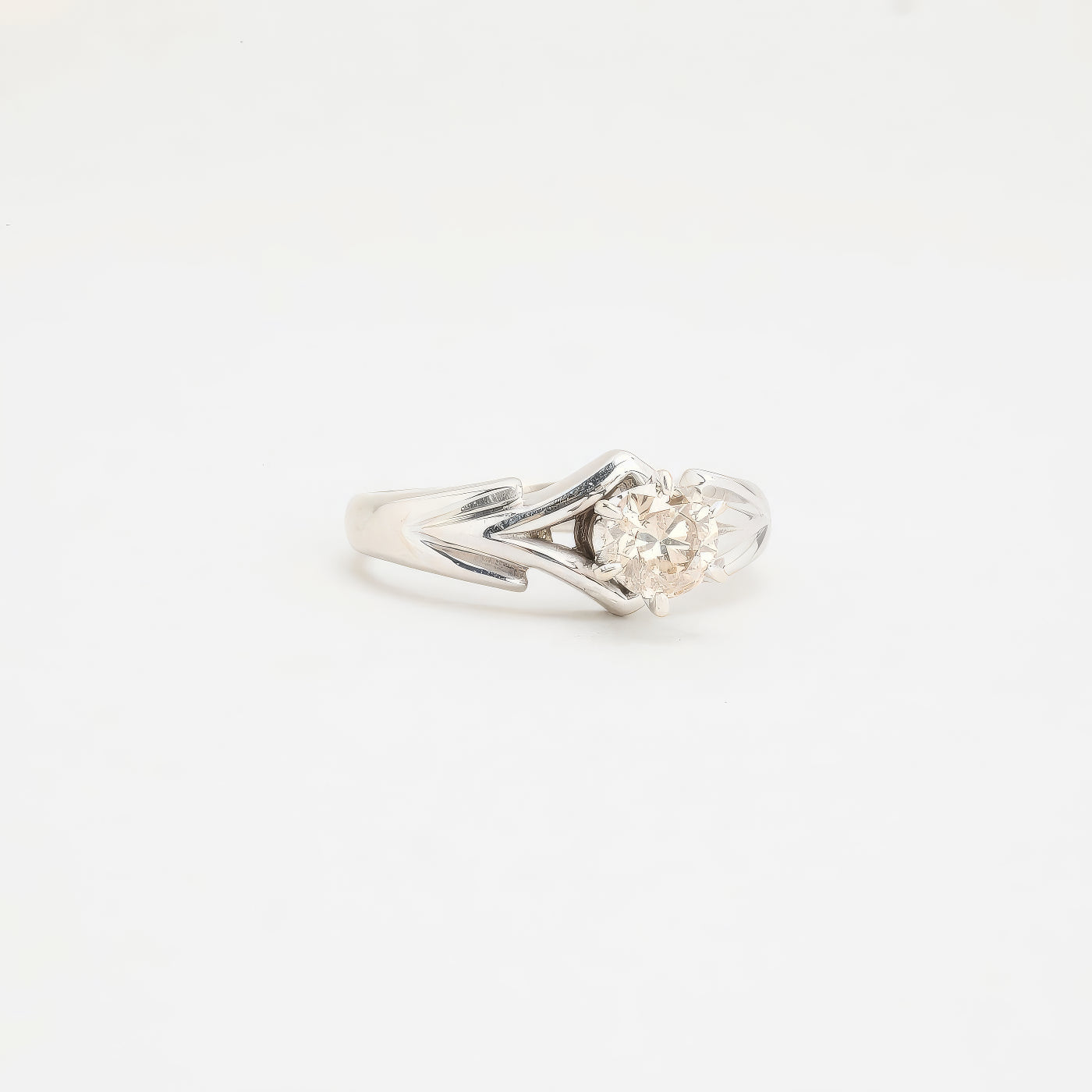 Solitairering i 14K hvidguld, med en diamant (0,67 ct), Str. 55